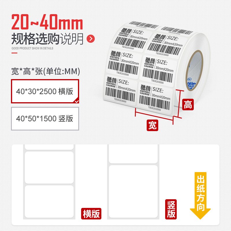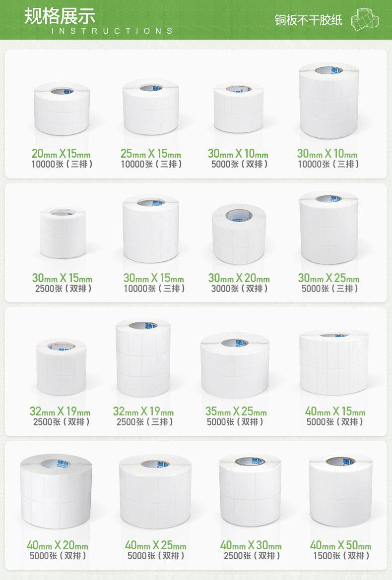 驰腾铜版纸 宽20-40多规格铜板空白标签纸商标打印印刷不干胶贴纸