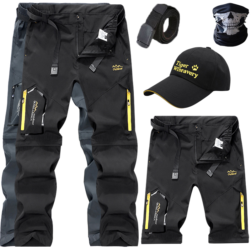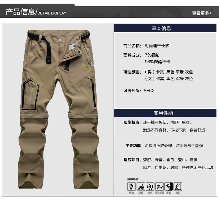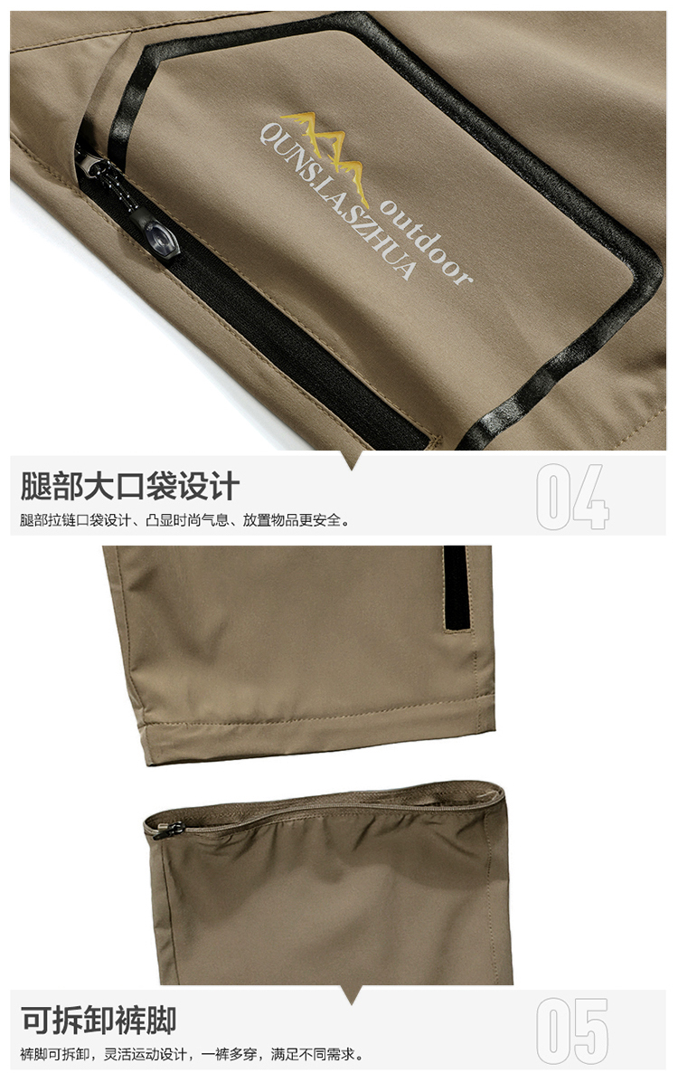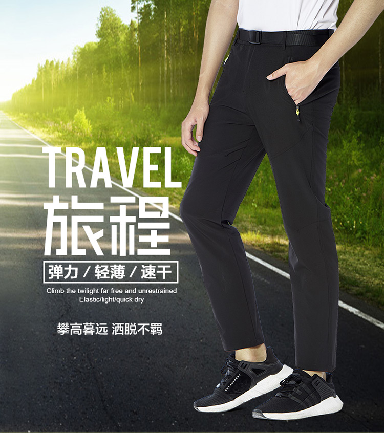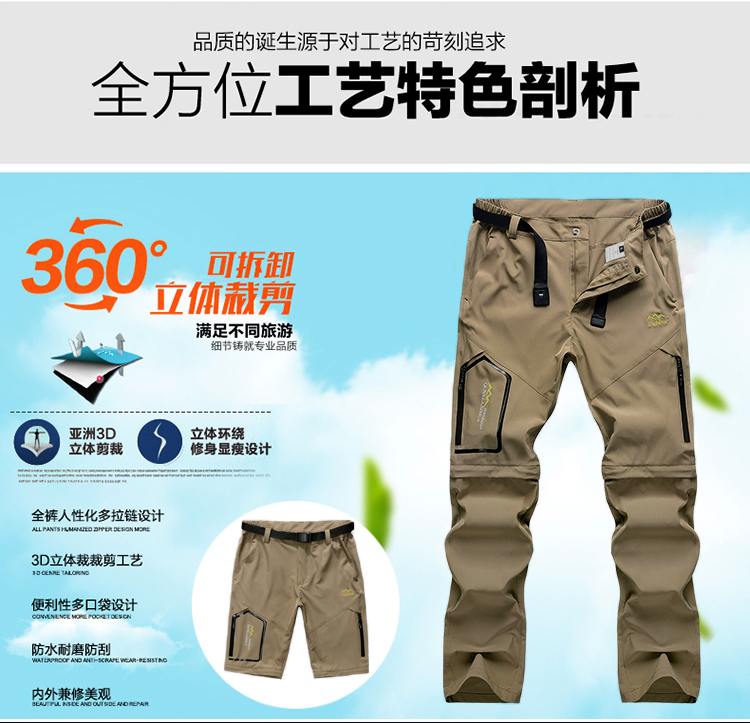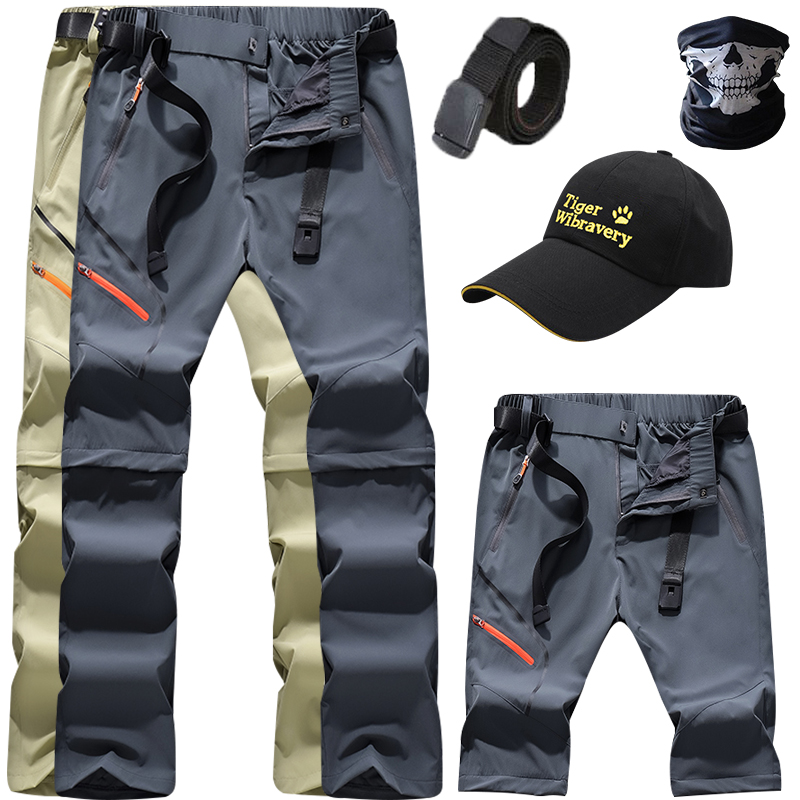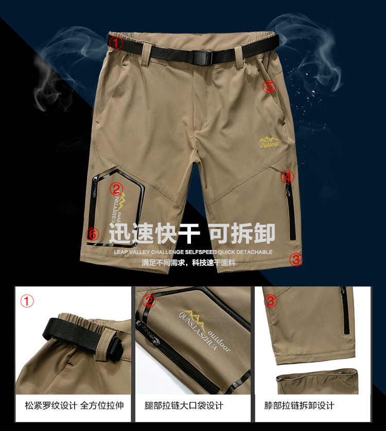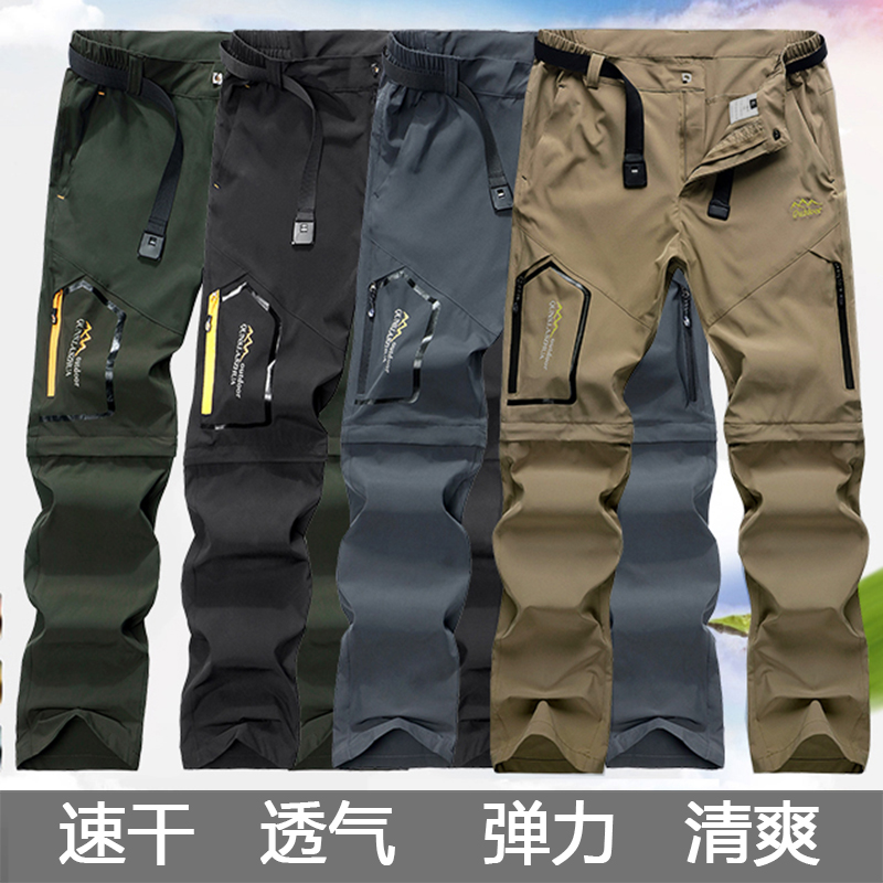 戶外速乾褲男夏季薄款可拆卸彈力防曬行山衝鋒褲寬鬆徒步登山褲子