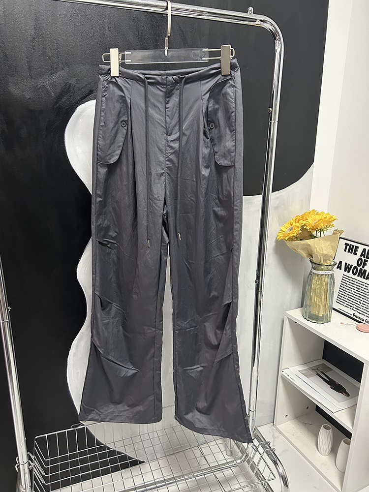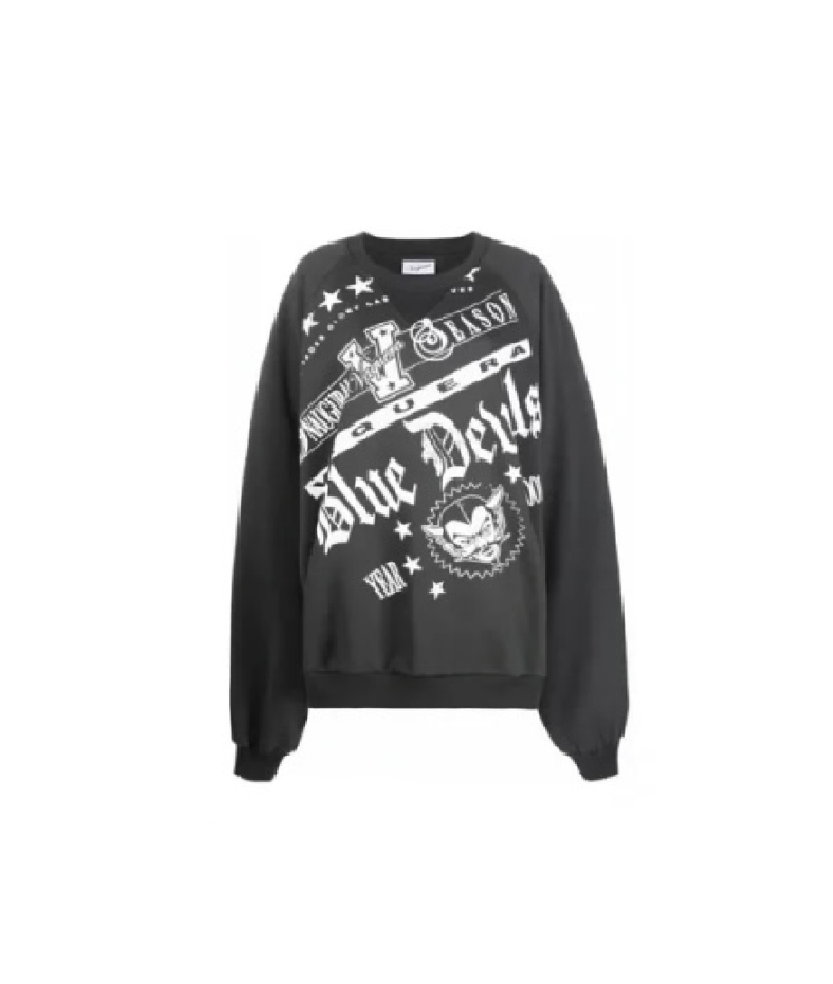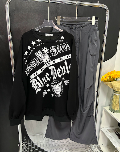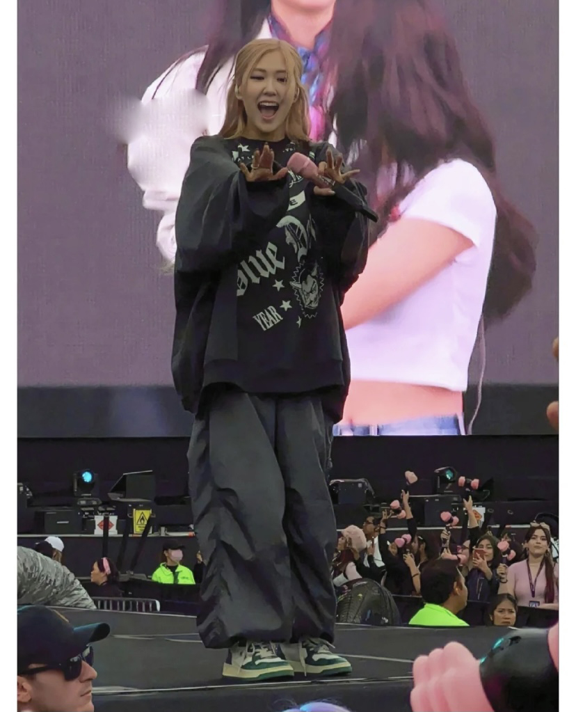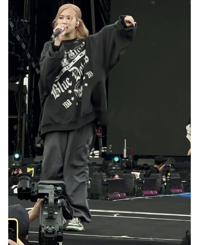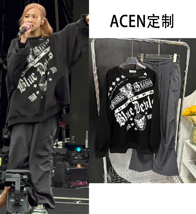 樸彩英Rose同款演唱會字母印花圖案寬鬆長袖厚棉T灰色工裝闊腿褲潮
