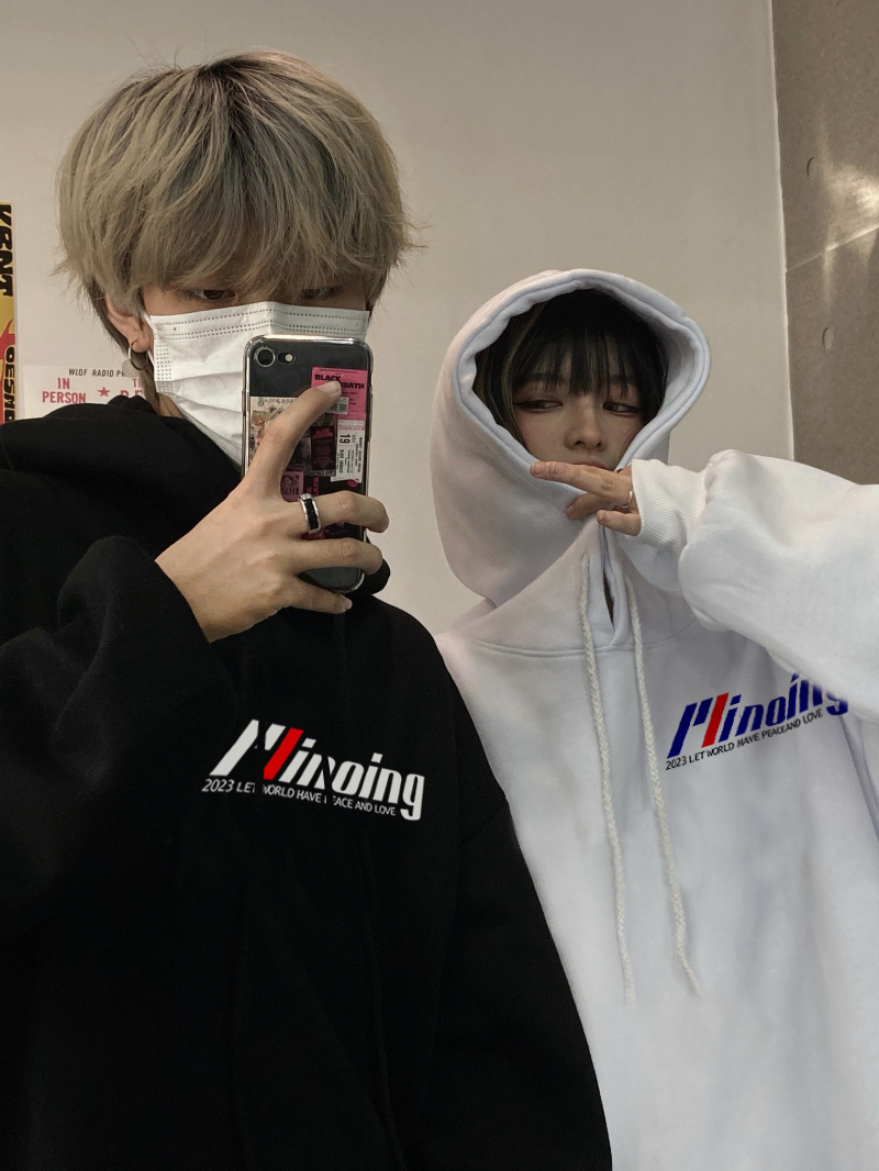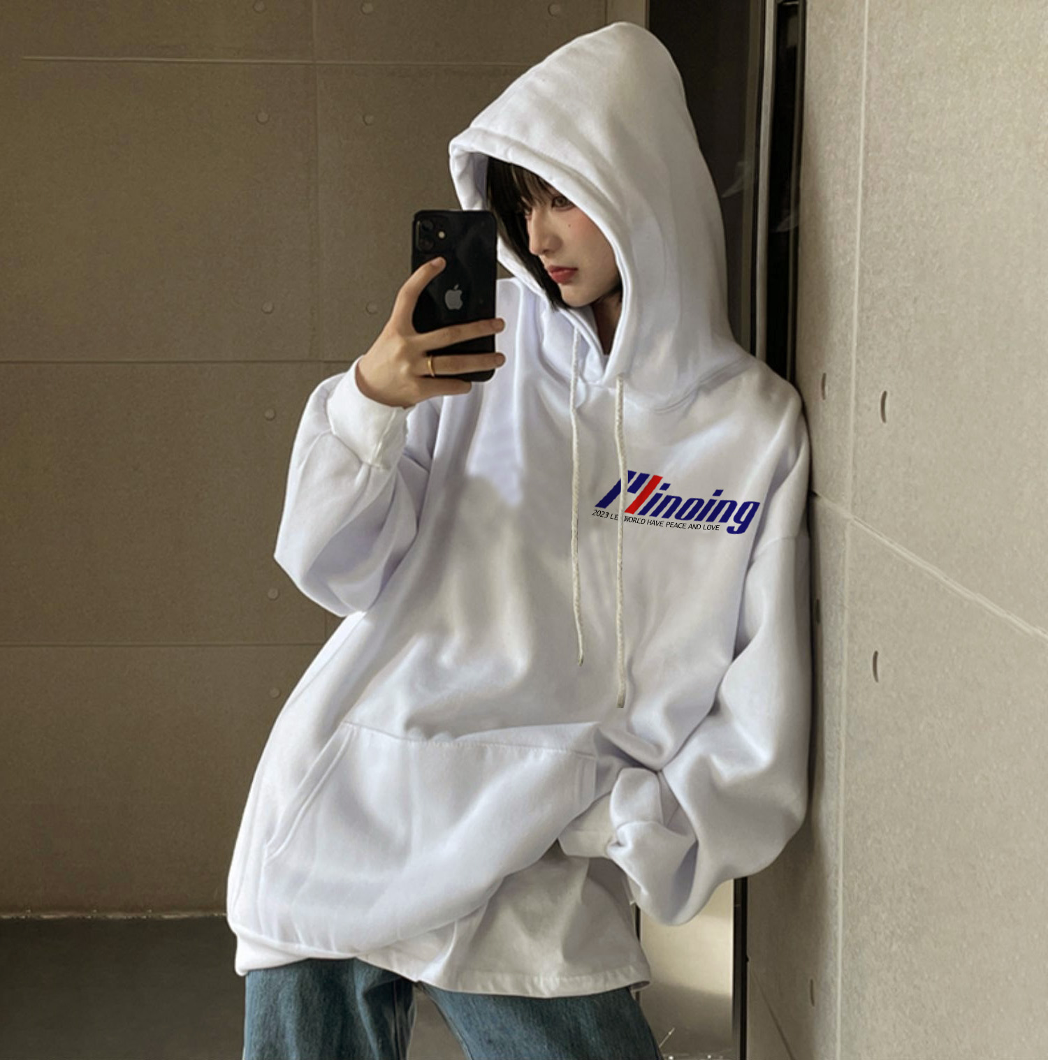 不起球純棉休閒上衣女2023新款連帽春秋款oversize原創小眾潮牌白色