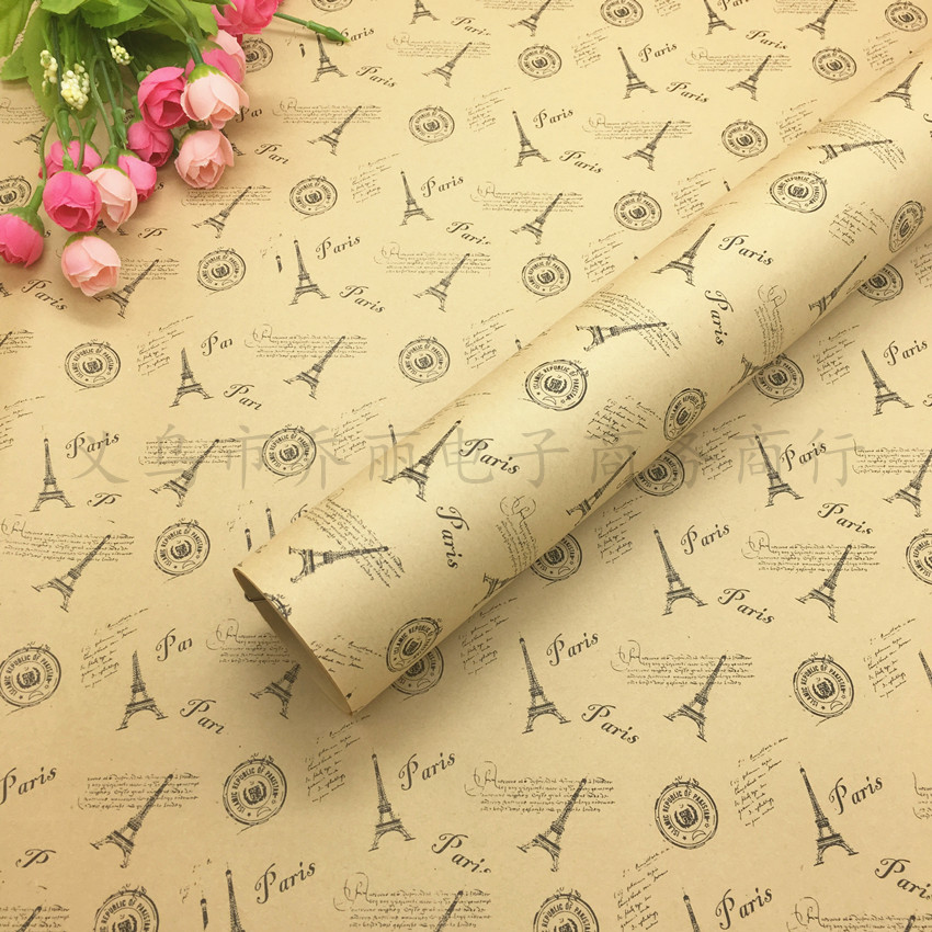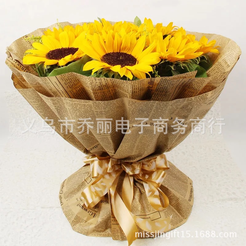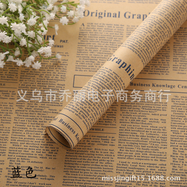 厂家批发鲜花包装纸怀旧英文报纸复古牛皮纸鲜花花束包装材料