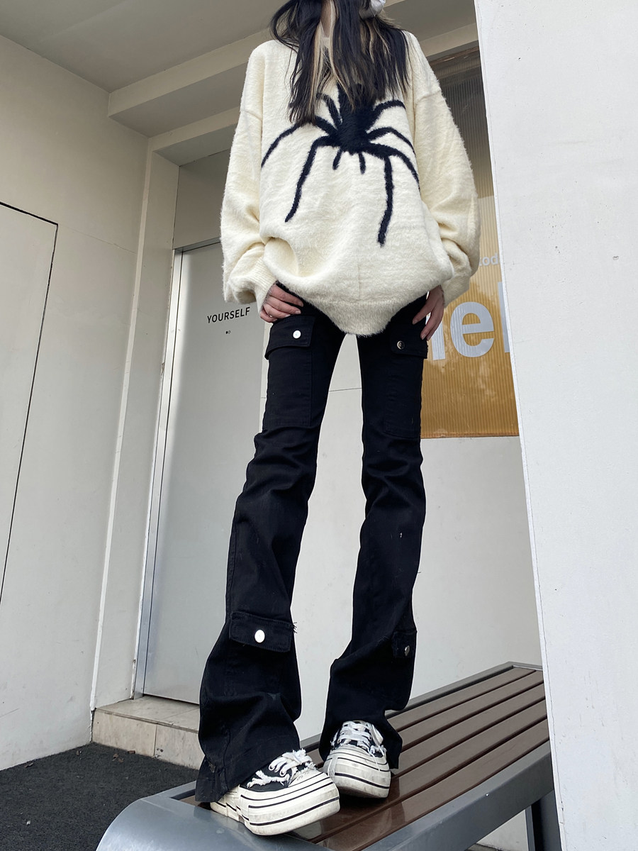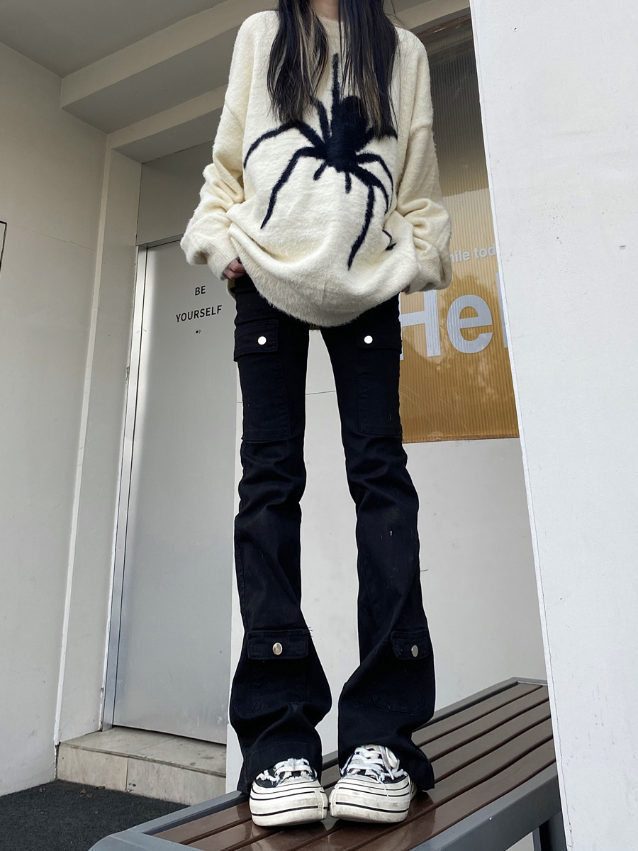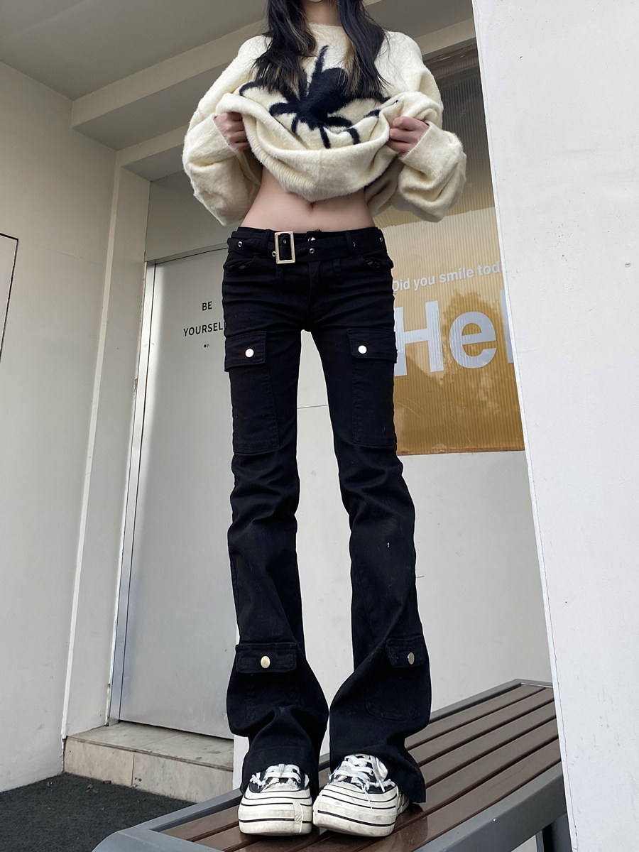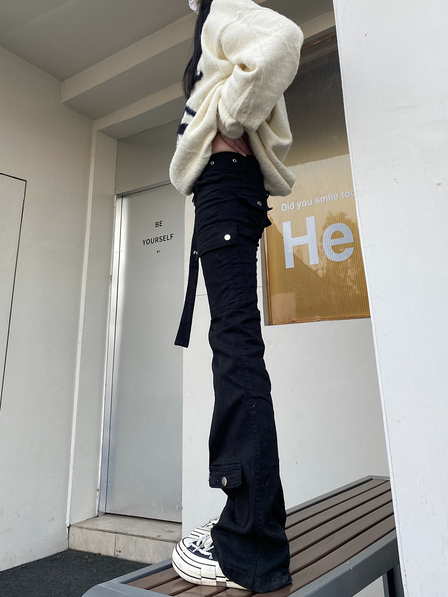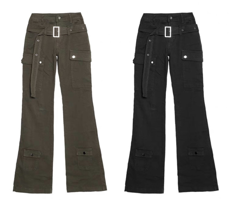 咖哩人美式辣妹修身多口袋工裝喇叭休閒褲顯瘦女2022新款帶腰帶