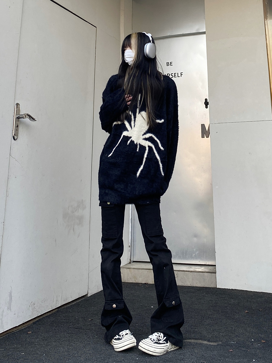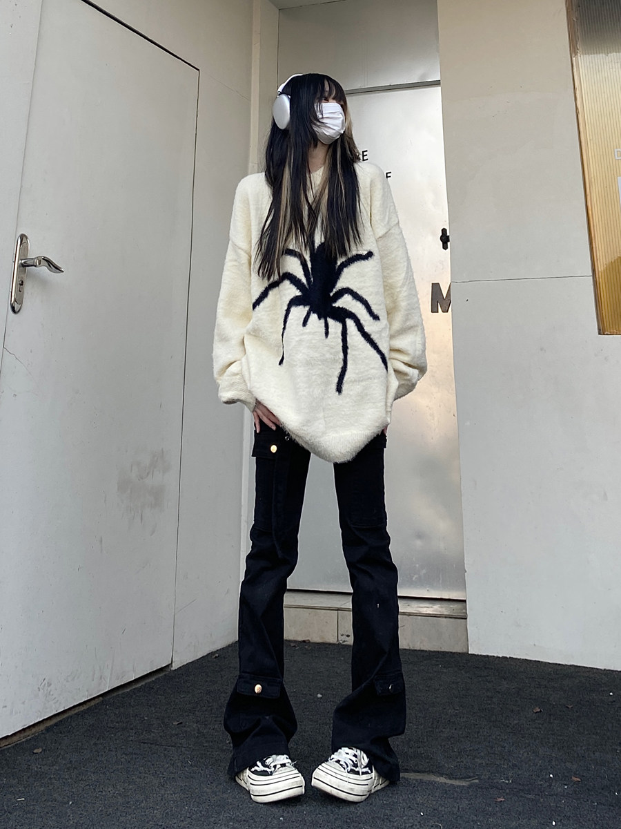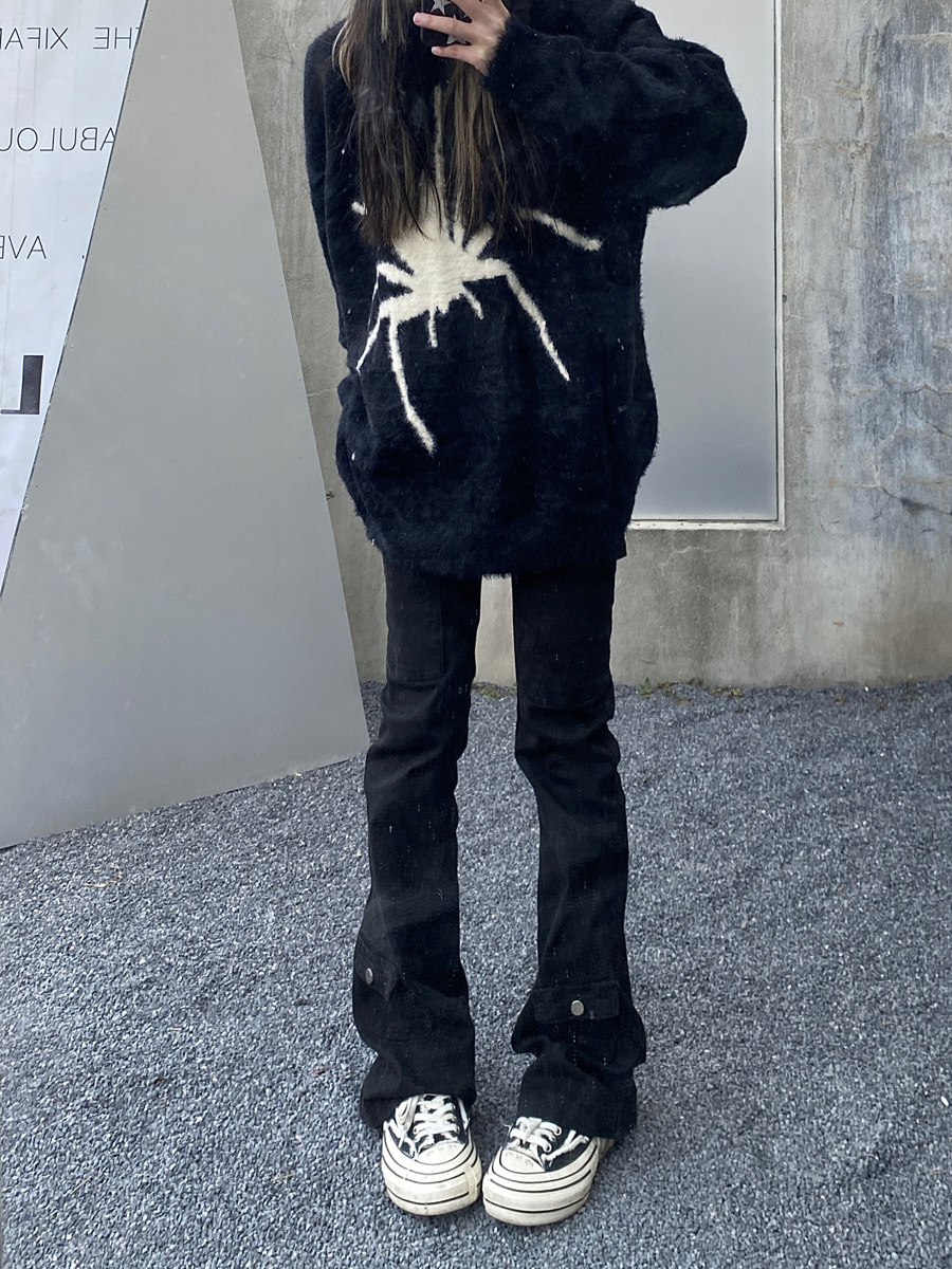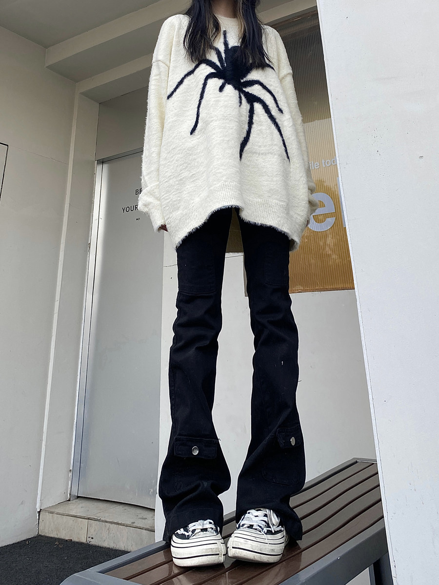 咖哩人美式辣妹修身多口袋工裝喇叭休閒褲顯瘦女2022新款帶腰帶
