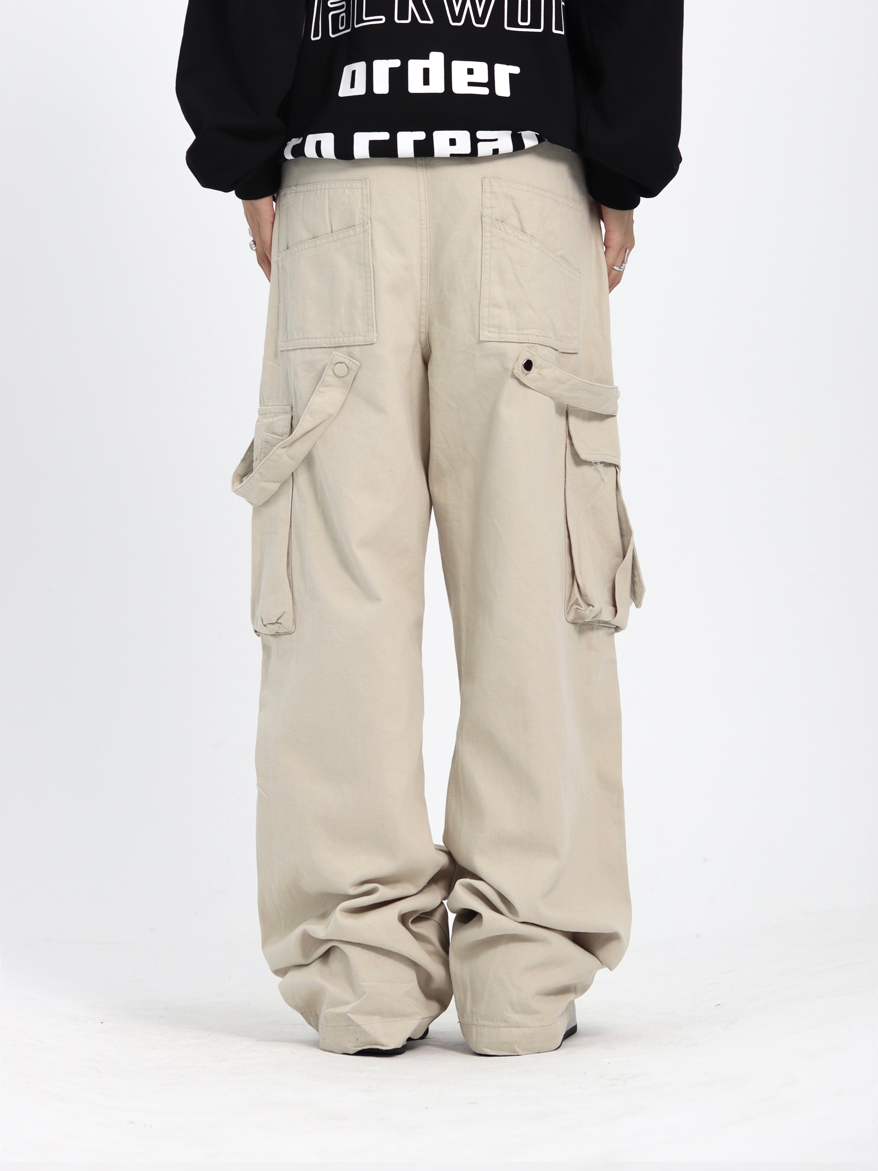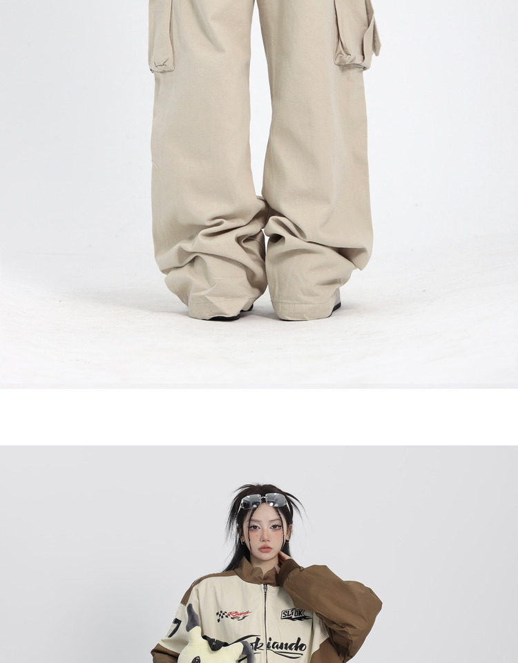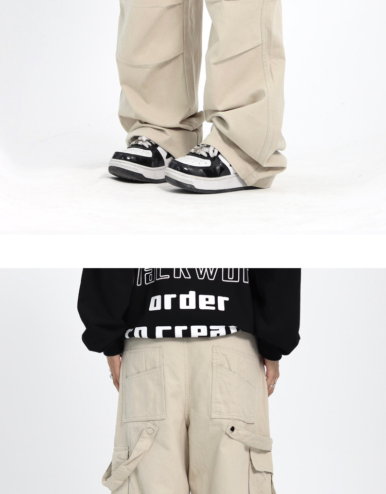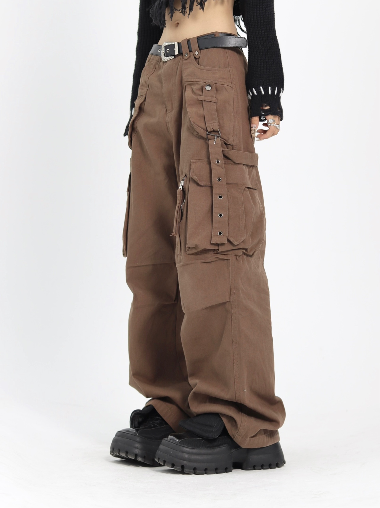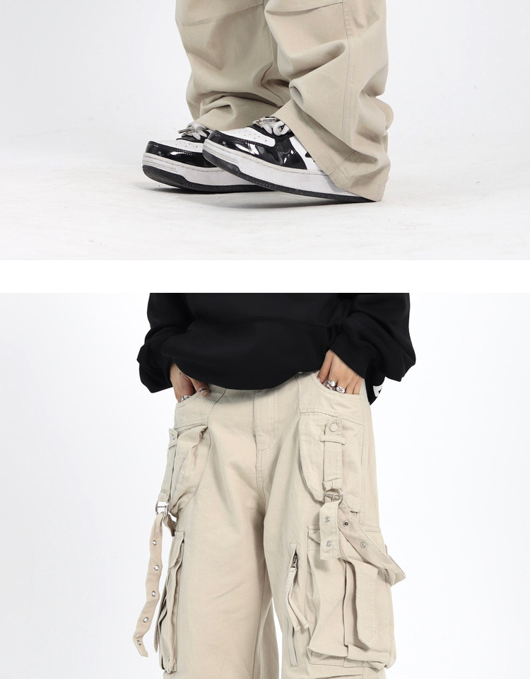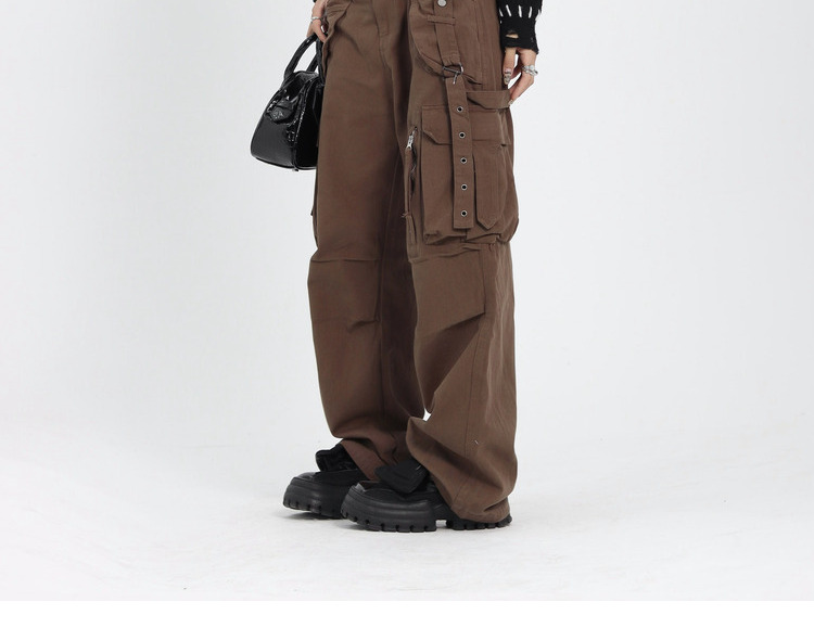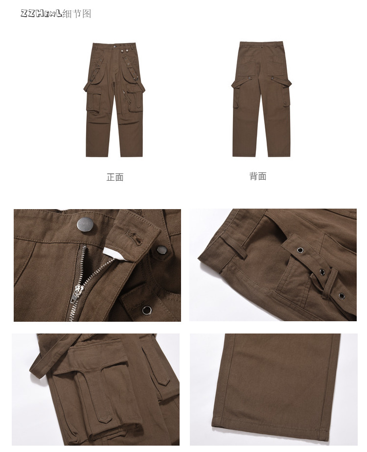 ZZHenL 美式辣妹復古工裝多口袋機能2023新款闊腿褲寬鬆休閒長褲