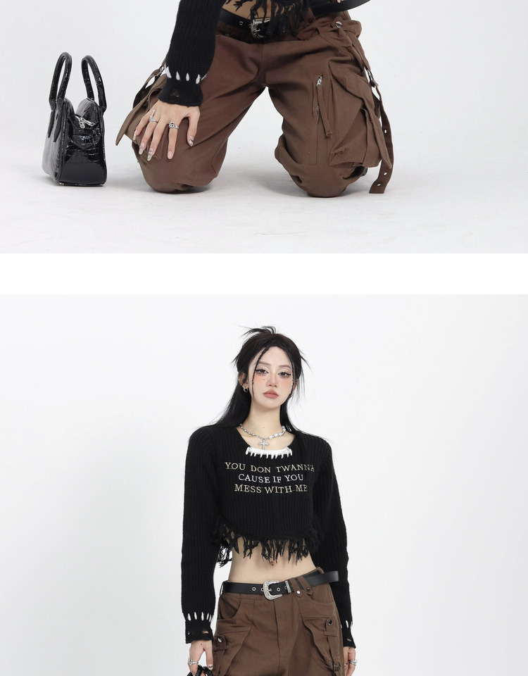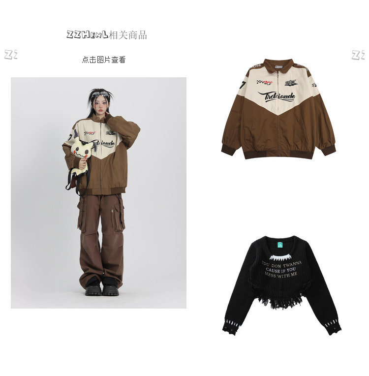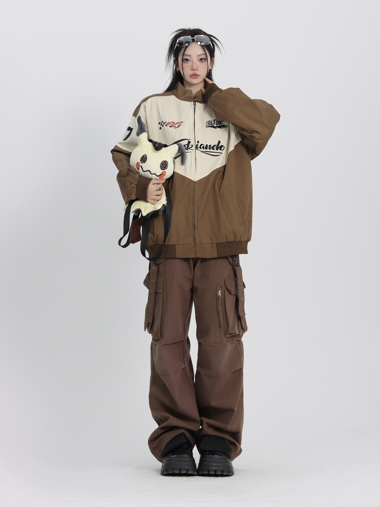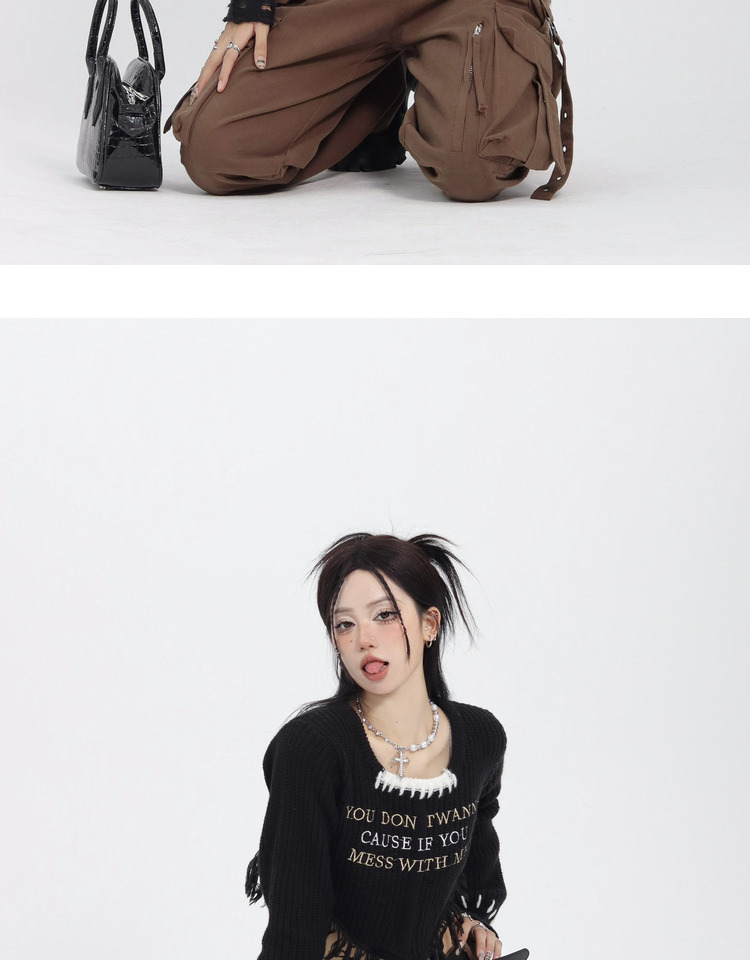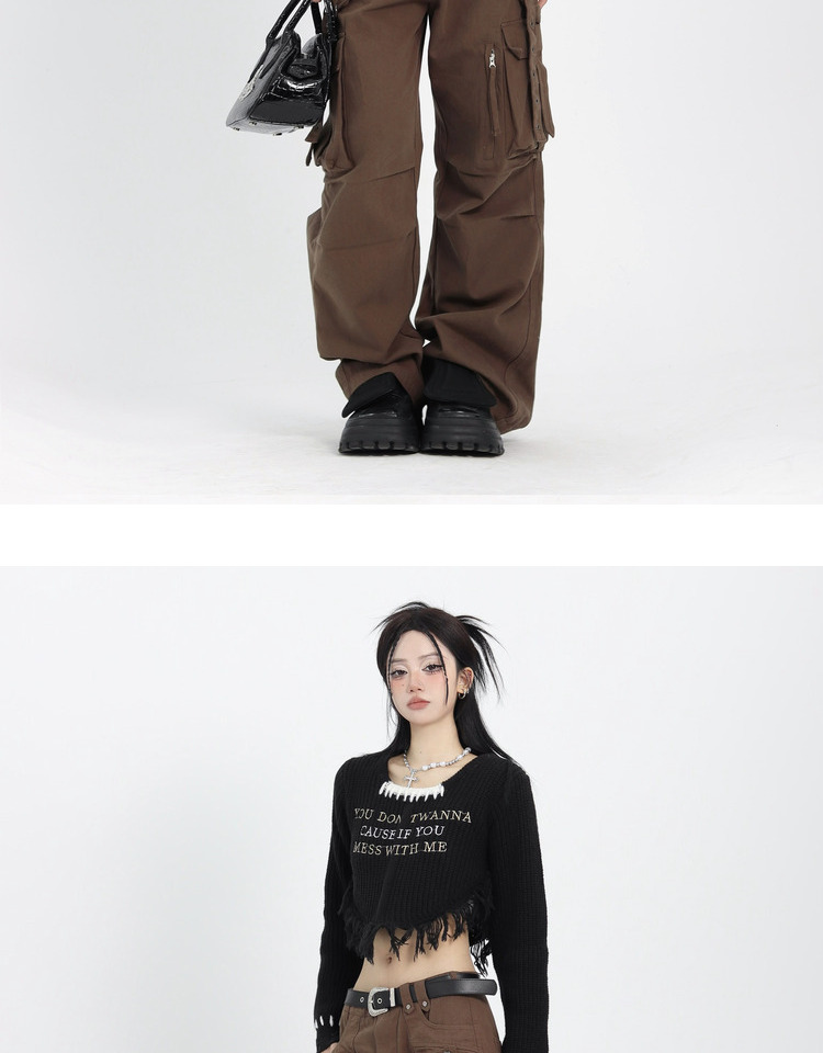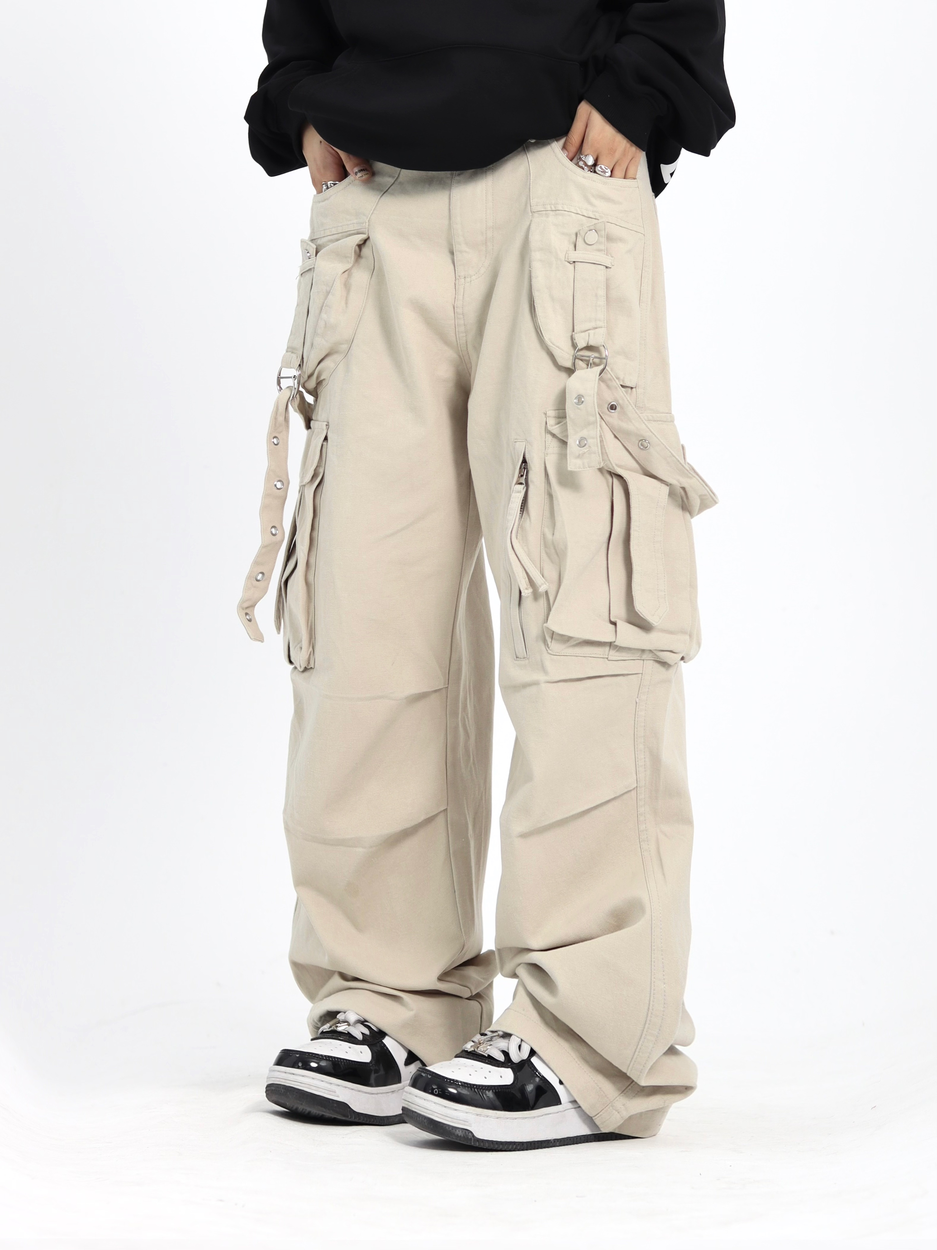 ZZHenL 美式辣妹復古工裝多口袋機能2023新款闊腿褲寬鬆休閒長褲