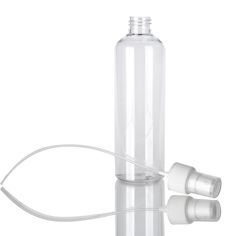 配盖高:201mm  直径:50MM   周长:160mm 口径:24MM 配套:透明瓶身+喷头      可按要求定做各种颜色      PET塑料瓶性质表面平滑而有光泽。尺寸稳定性好,磨耗小而硬度高,具有热塑性塑料中最大的韧性;无毒、耐气候性、抗化学药品稳定性好,吸水率低,耐弱酸和有机溶剂。
