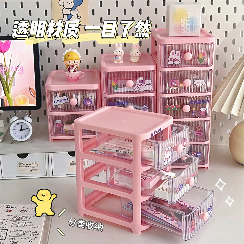 桌面收纳盒多功能多层抽屉式收纳柜化妆品学生文具杂物整理储物盒