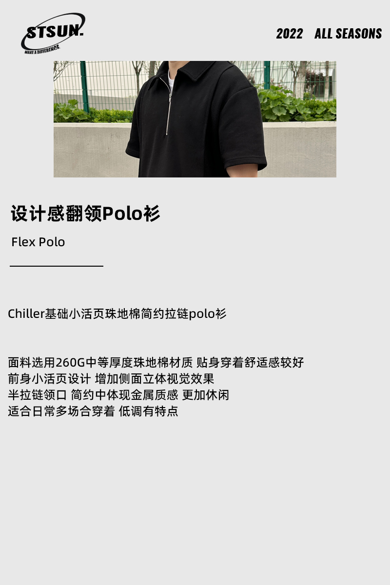 【STS】Chiller Polo基礎小活頁珠地棉簡約百搭拉鍊polo衫男