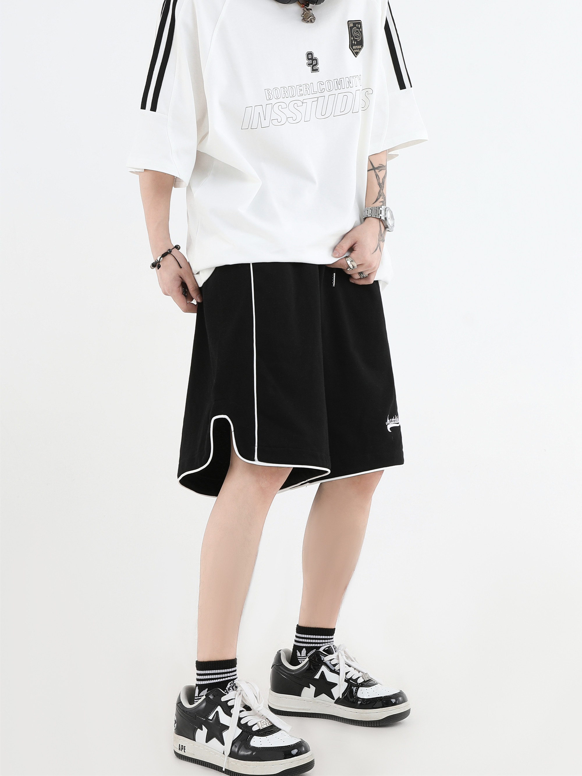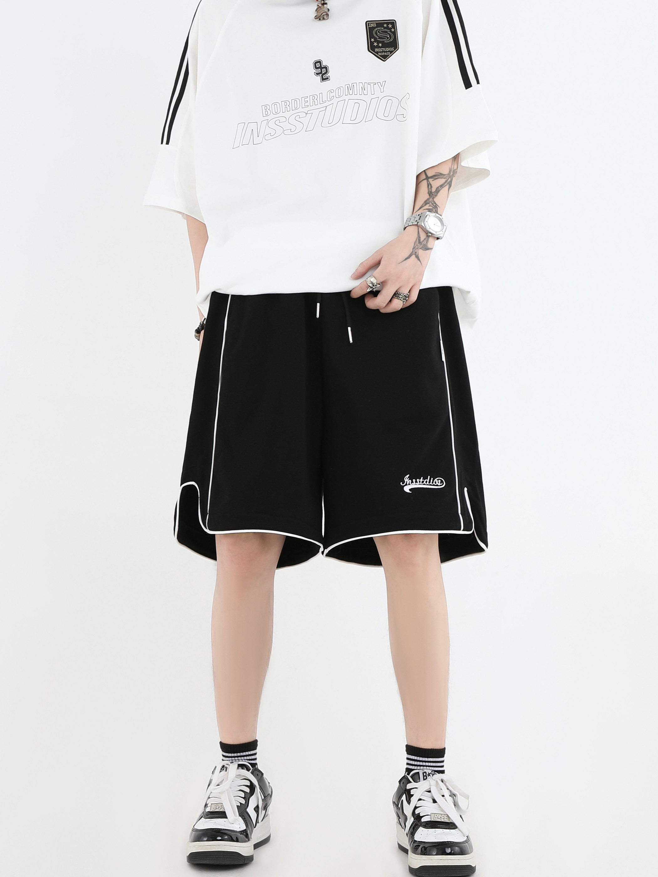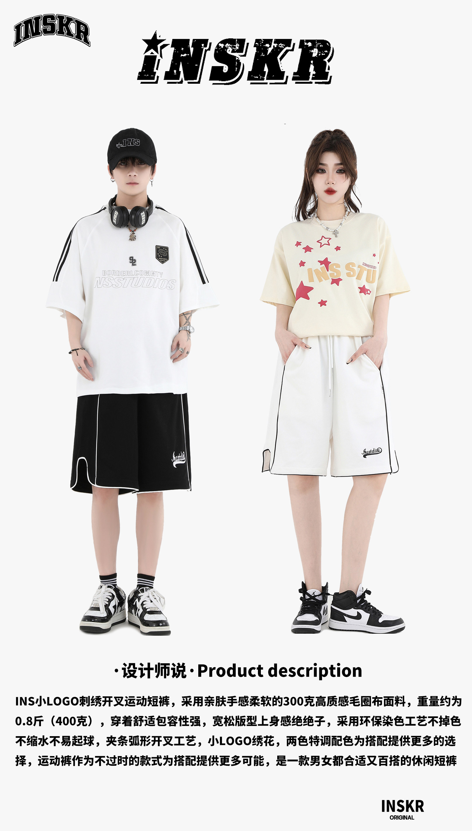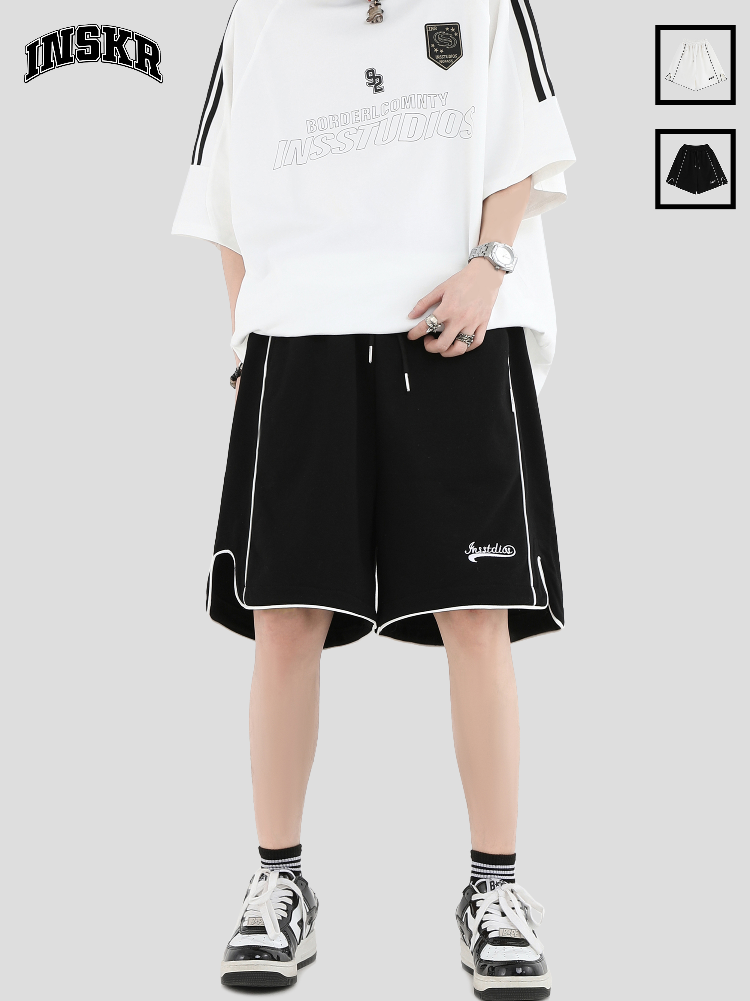 【INSKR】國潮牌情侶美式小LOGO刺繡開叉運動短褲寬鬆五分褲子男