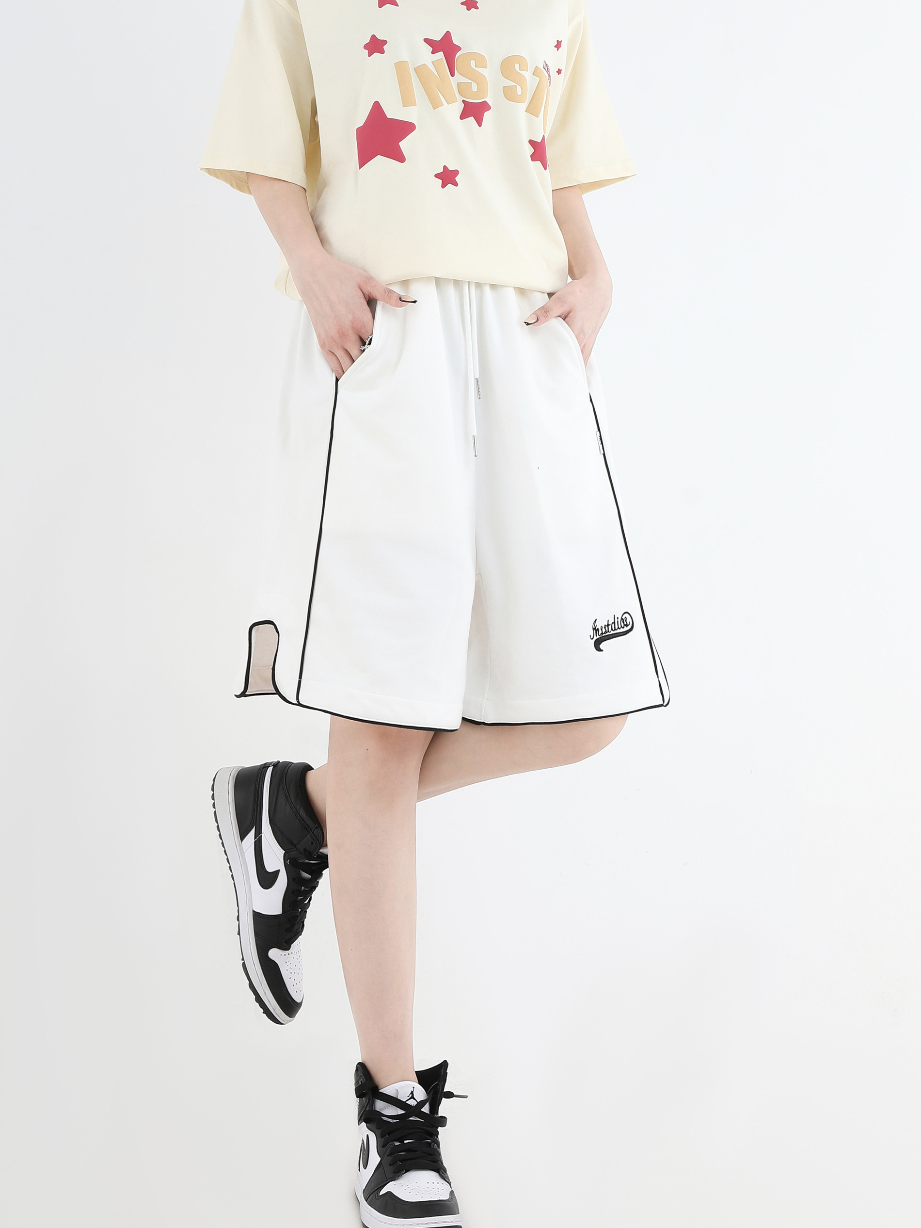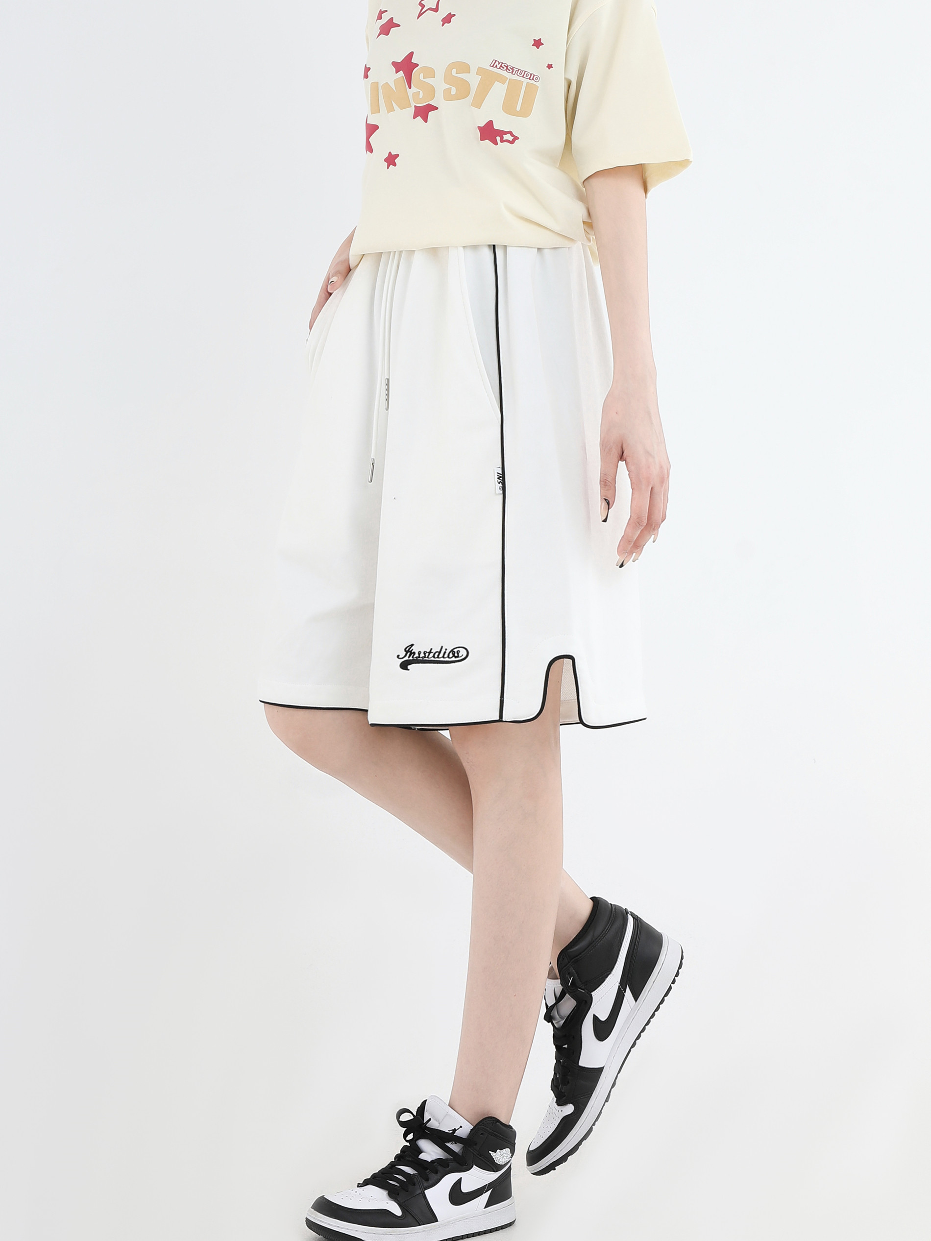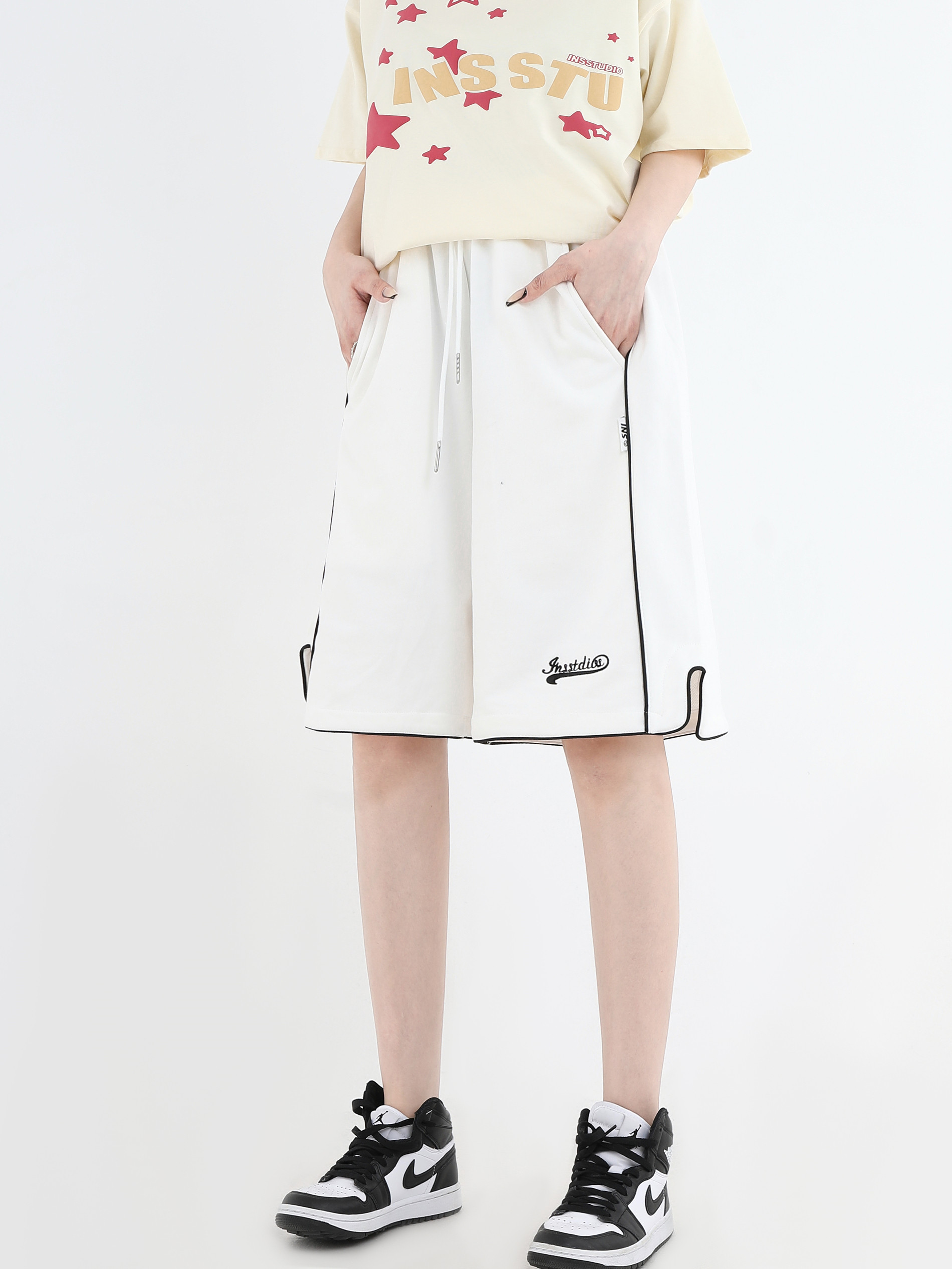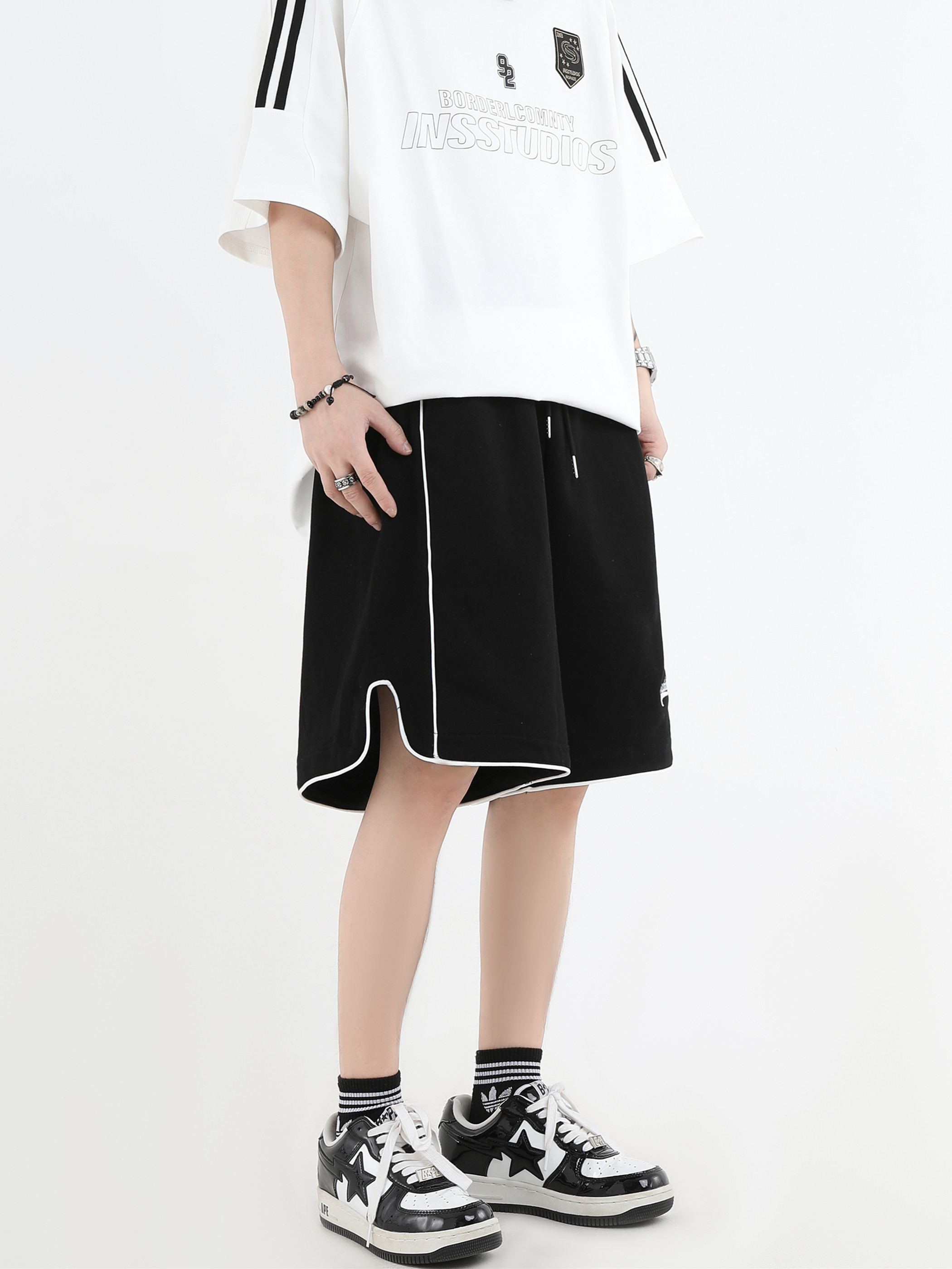 【INSKR】國潮牌情侶美式小LOGO刺繡開叉運動短褲寬鬆五分褲子男
