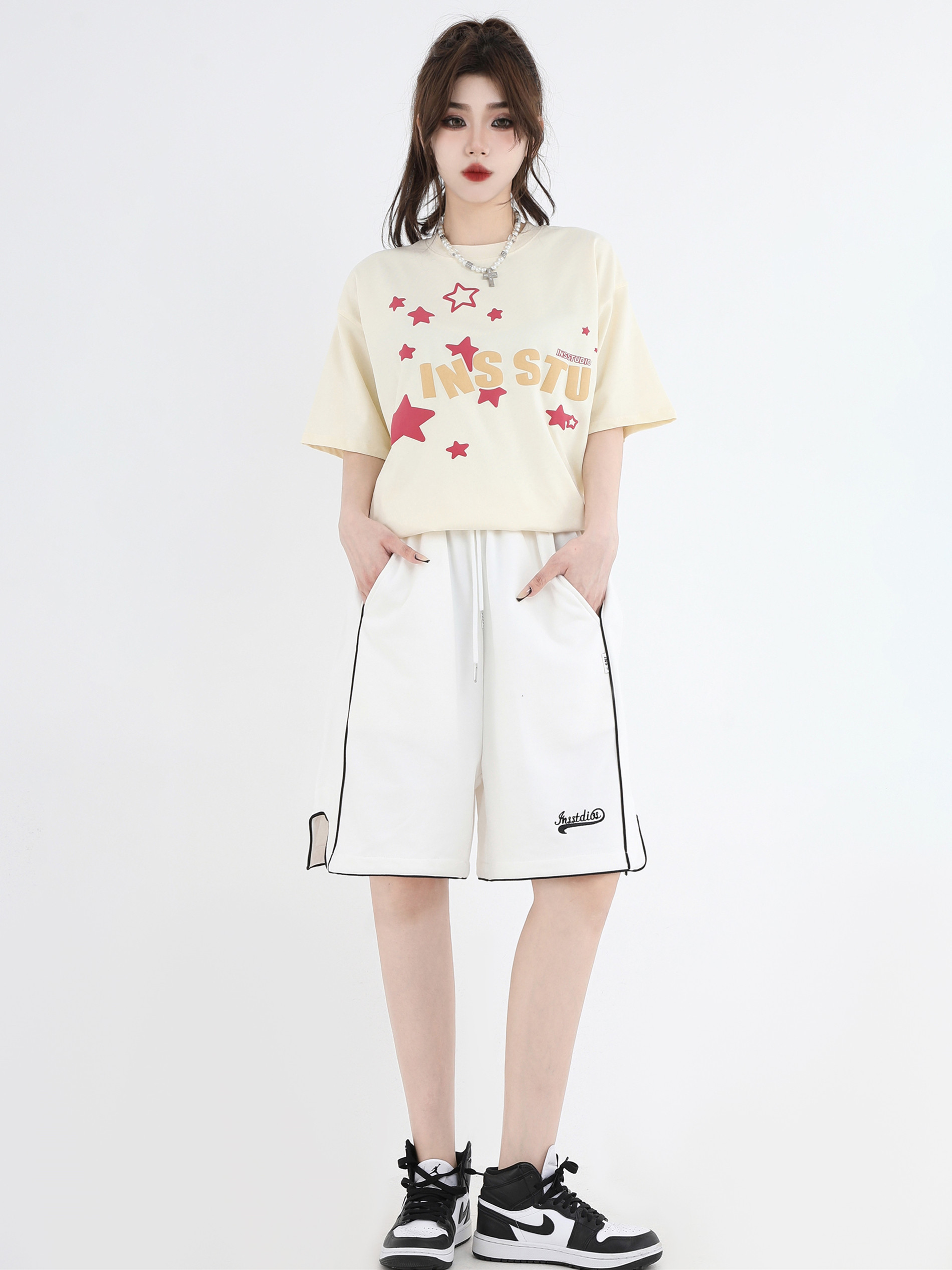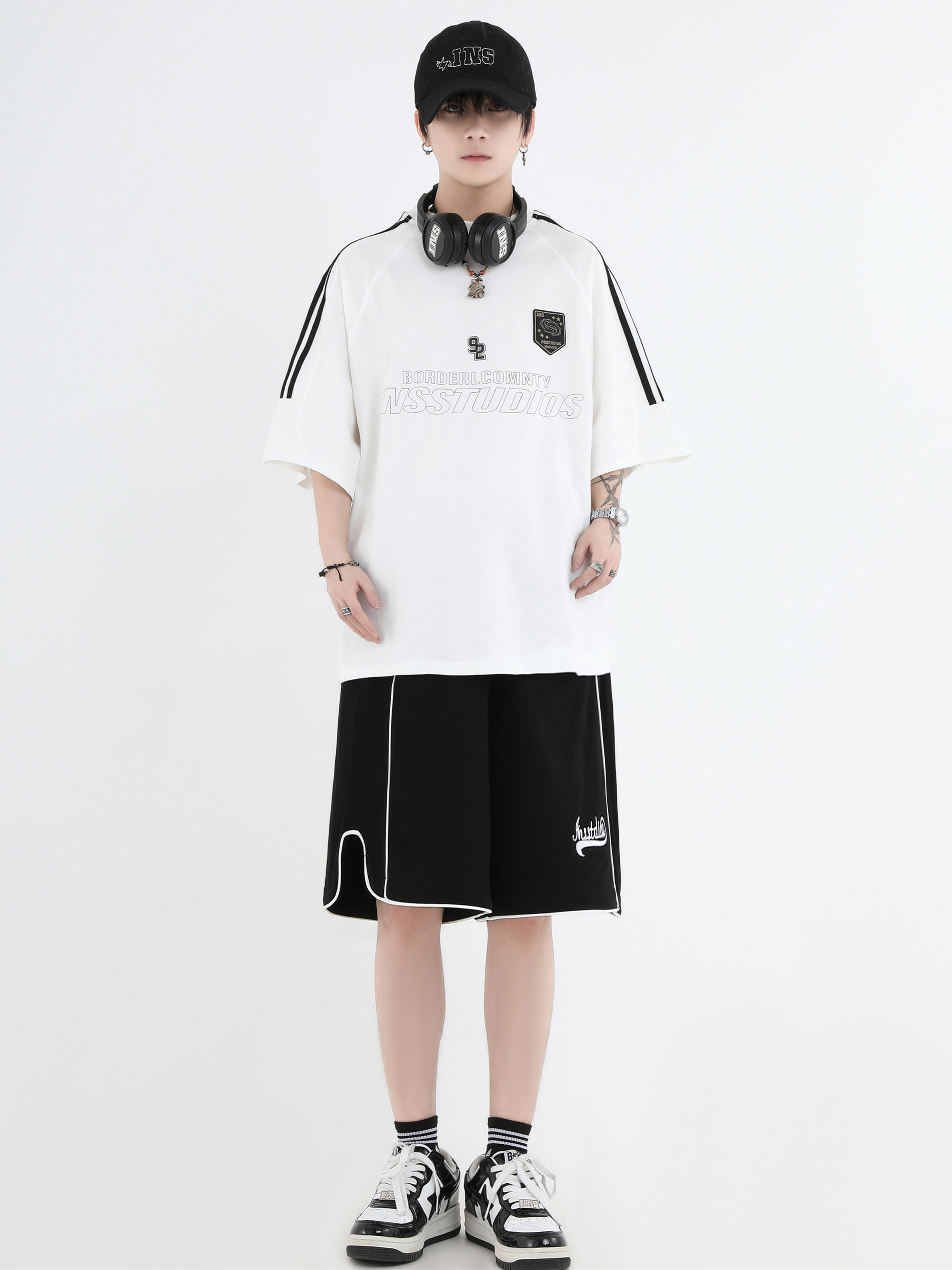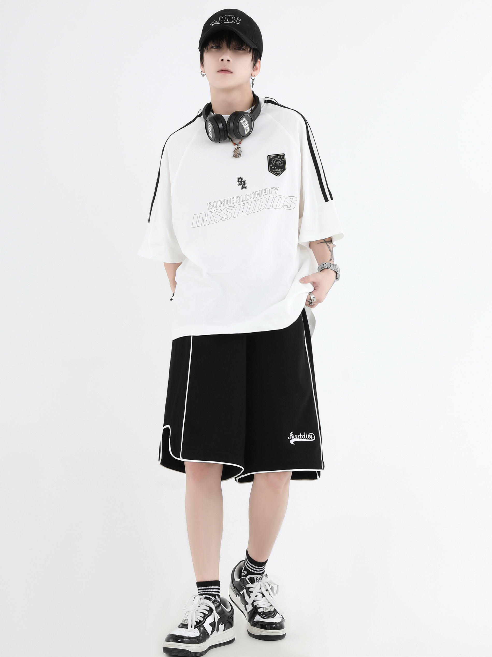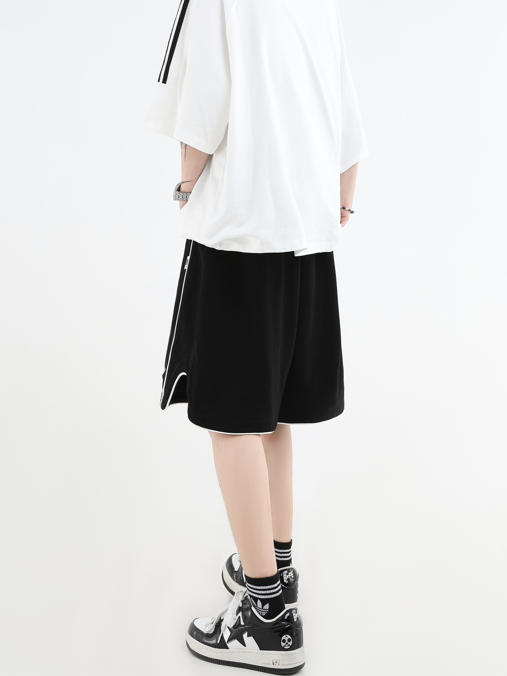 【INSKR】國潮牌情侶美式小LOGO刺繡開叉運動短褲寬鬆五分褲子男