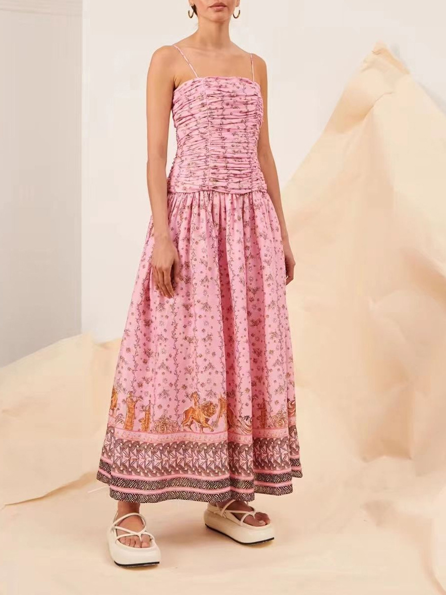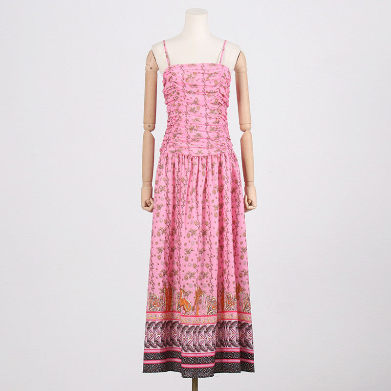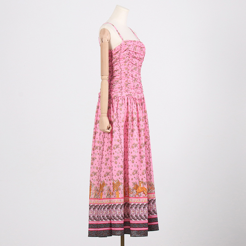 2023夏新款碎花吊带连衣裙法式温柔风方领收腰露背修身打底长裙