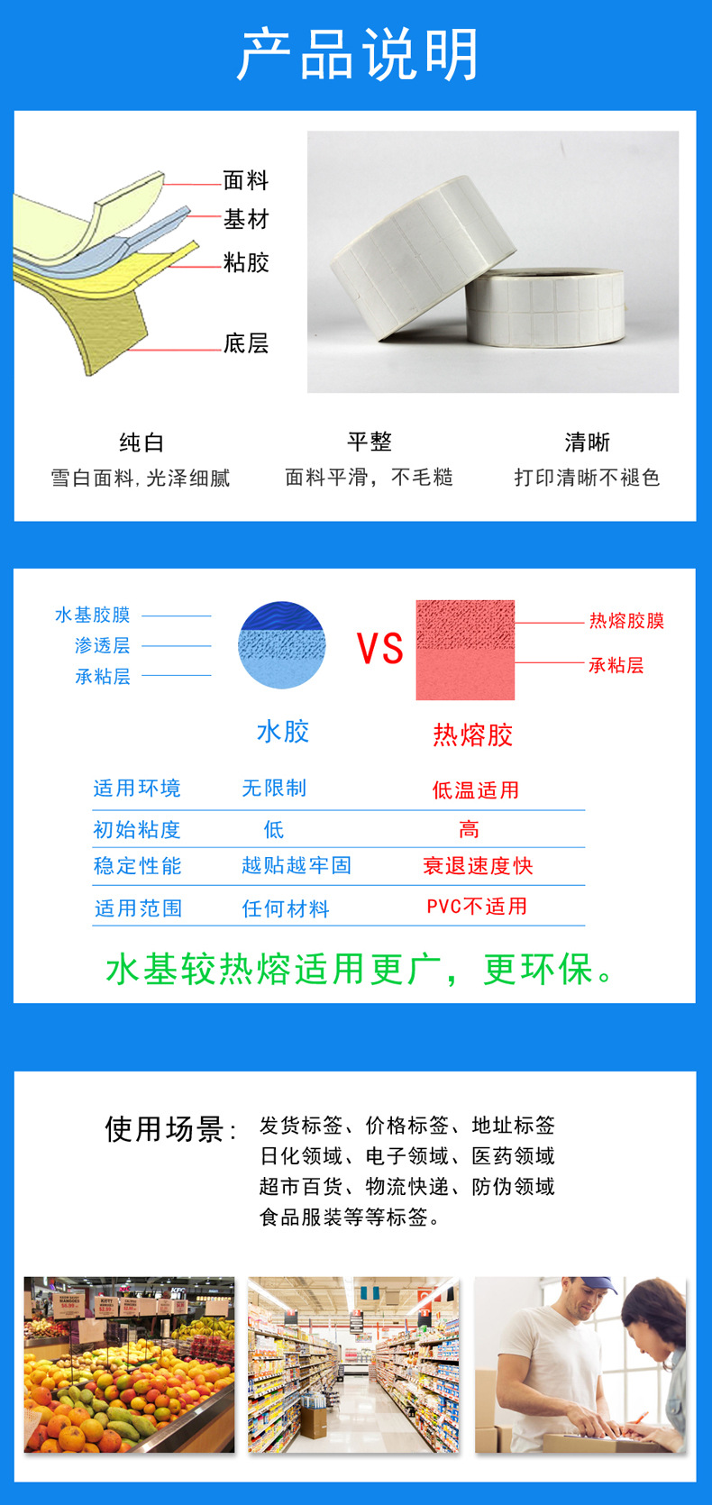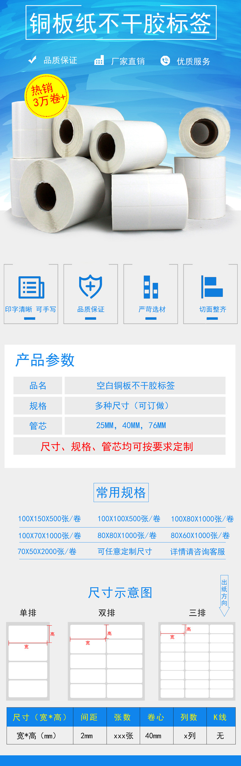 批发快递物流空白打印标签纸超市外箱贴纸条码纸铜版纸不干胶标签
