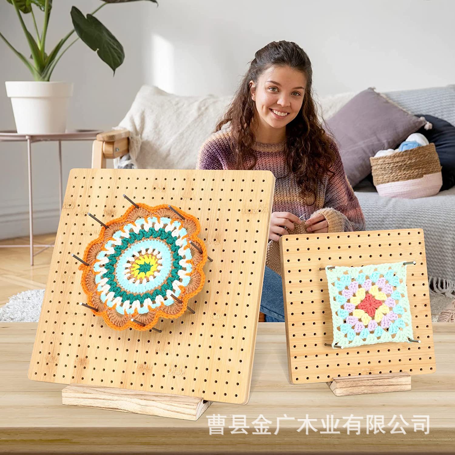 木制编织板DIY竹木钩针织板实木网格洞洞板毛线钩针工具定型