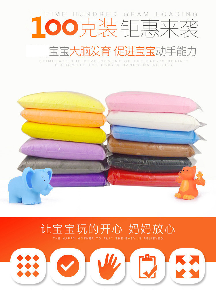 超轻粘土100克 太空彩泥24色橡皮泥黏土儿童玩具diy制作手足印泥