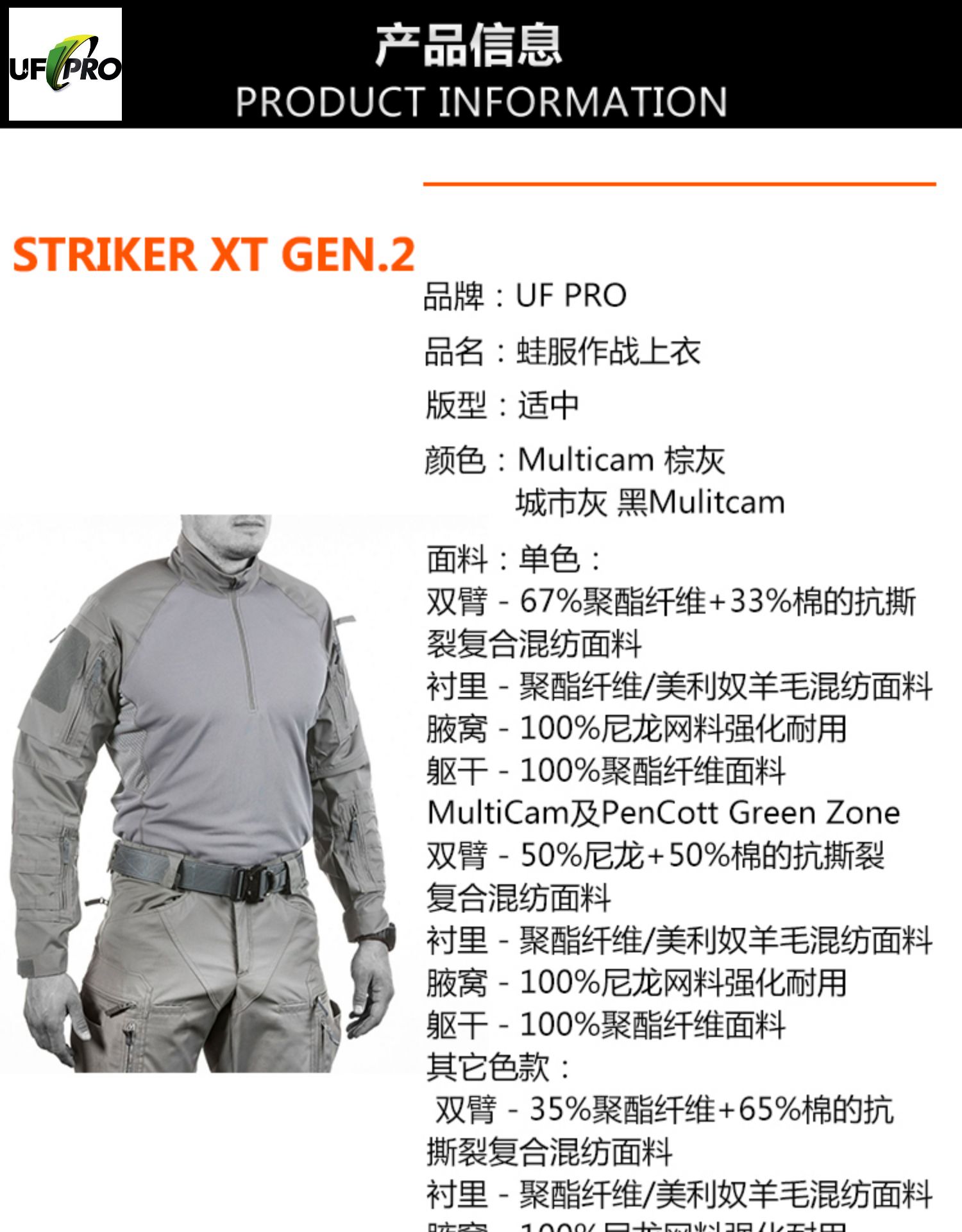 UF PRO尤艾弗STRIKER XT GEN.2 COMBAT SHIRT先鋒XT二代ufpro蛙服