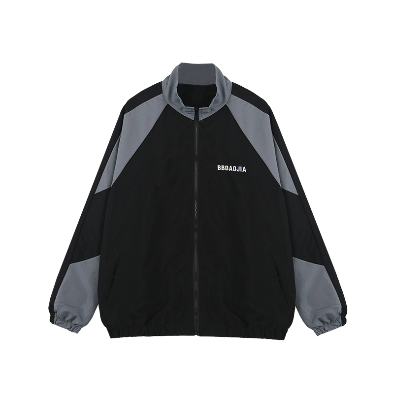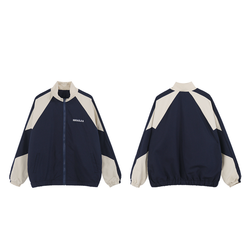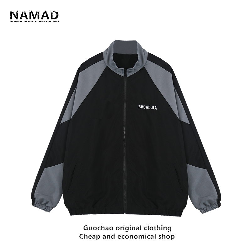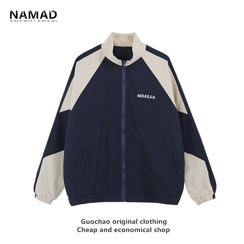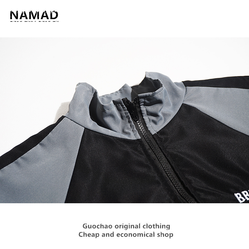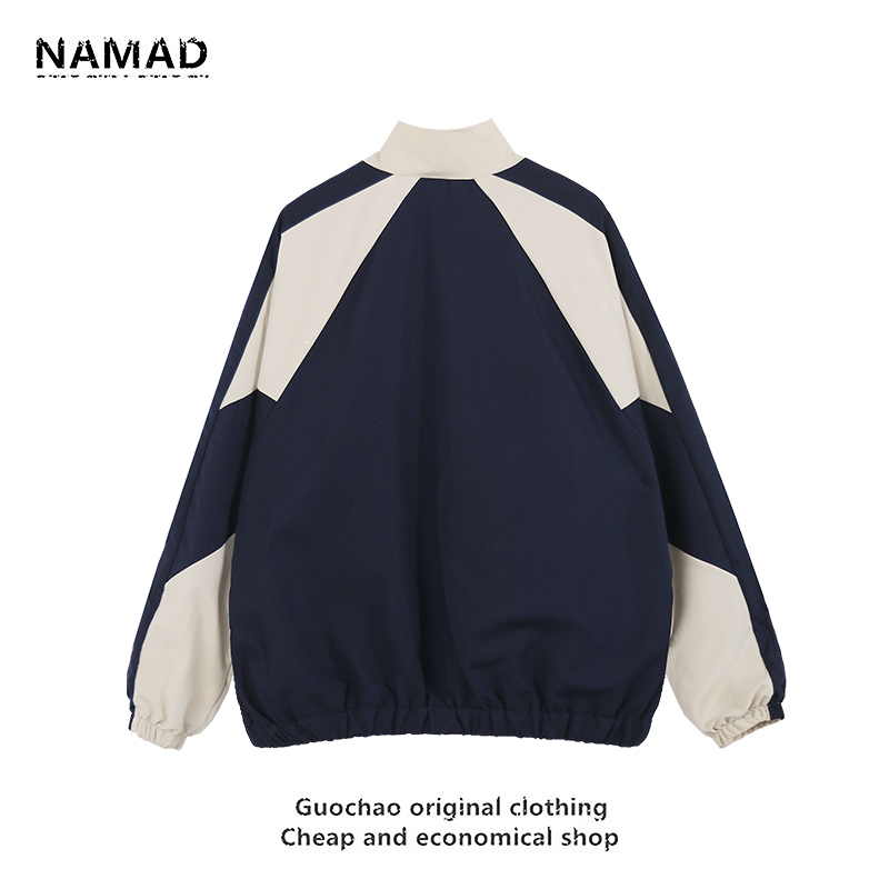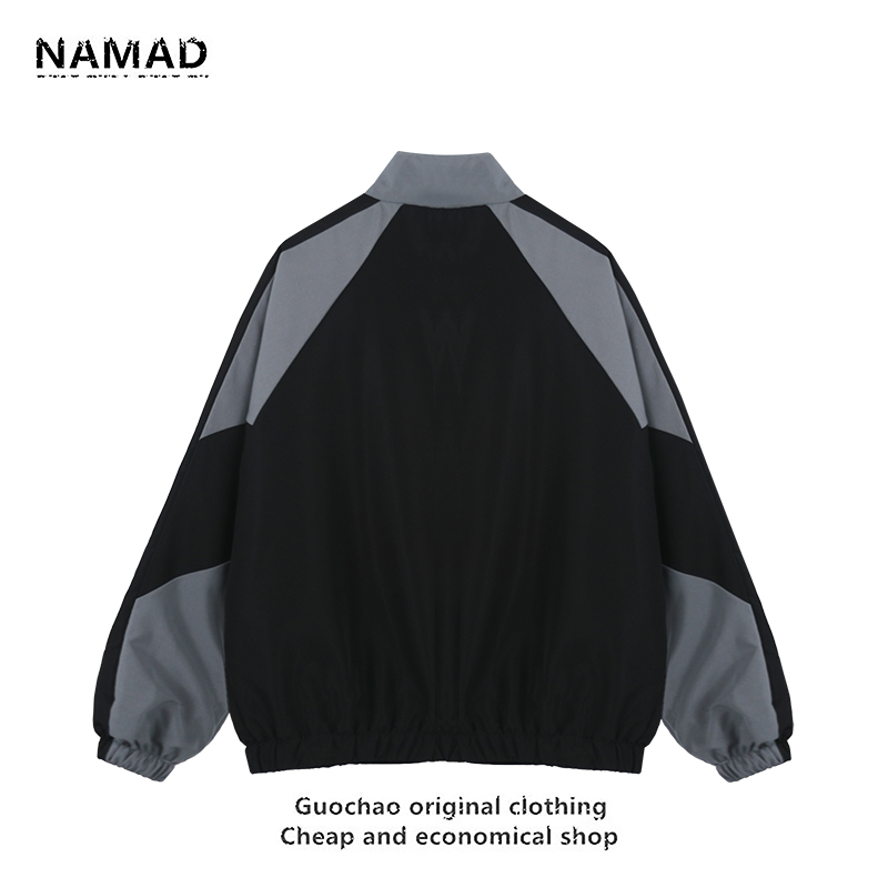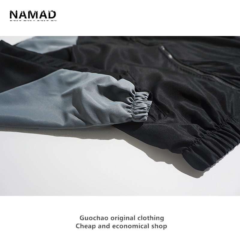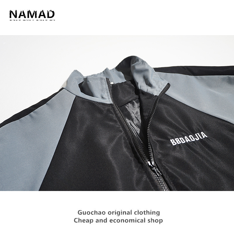 NAMAD日系潮牌插肩袖拼色風衣男女bf風秋冬薄款運動夾克立領外套