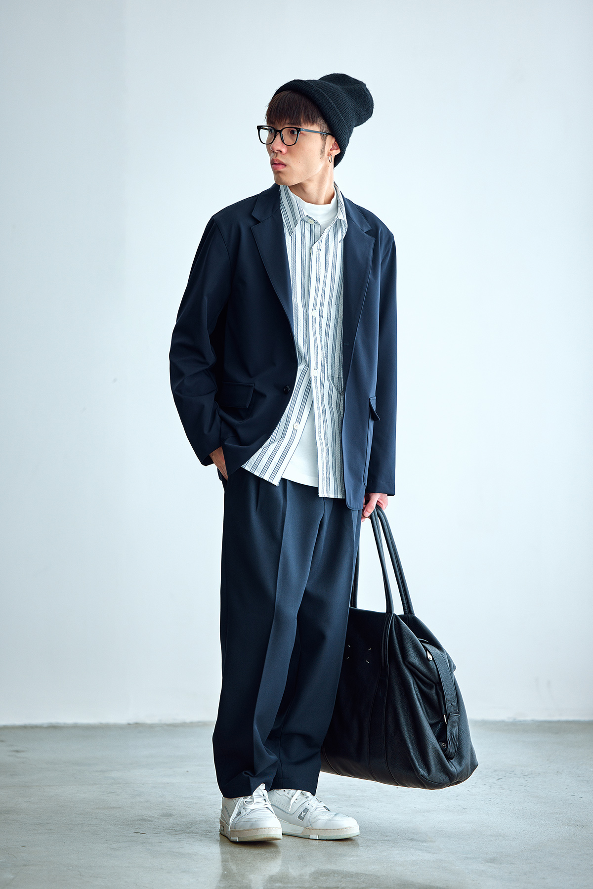面料采用全新的「雾感」日本易打理质感面料,采用中空纤维织制而成的高密度斜纹的纹路清,肌理感十足。具有特殊的「雾感」素材,使得面料的色彩格外的匀称踏实,加上更细腻的斜纹肌理使得色彩在面料表面的错落坑纹上有着细腻的光暗变化,也只有在如此高色彩表现力的面料上才能把这几种颜色表现得淋漓尽致。同时拥有羊毛般强垂坠属性,使廓形保持性亟佳。同时还具备了良好的透气性、不易起皱、适度的拉伸延展性和速干等优秀易打理功能。即便每日着用,也不必额外的打理,也能保持如新一般的整洁感。再与日本进口的丝滑铜氨丝内衬配合使得裤子做到适用四季着用。