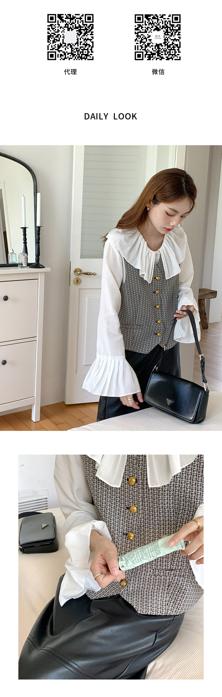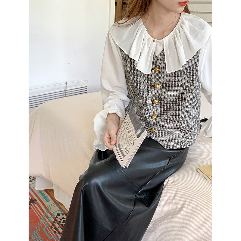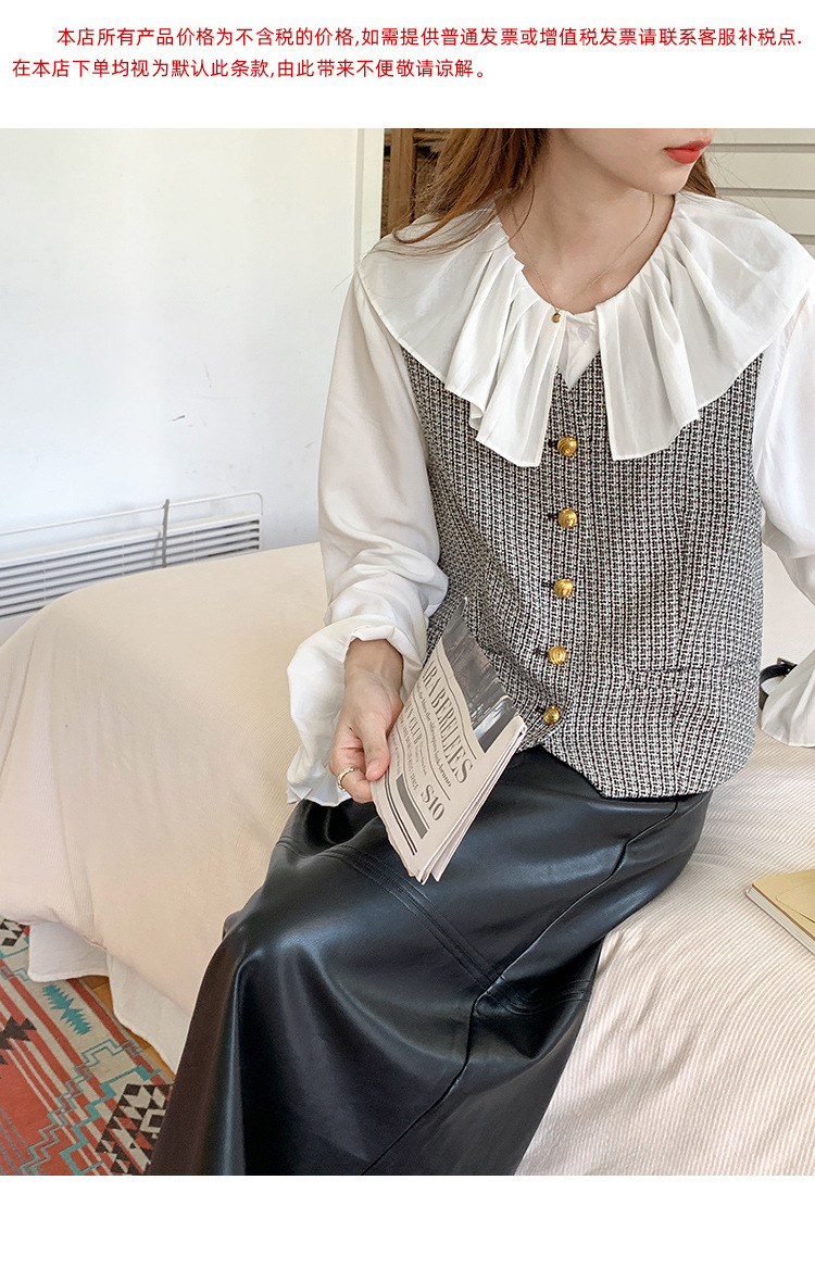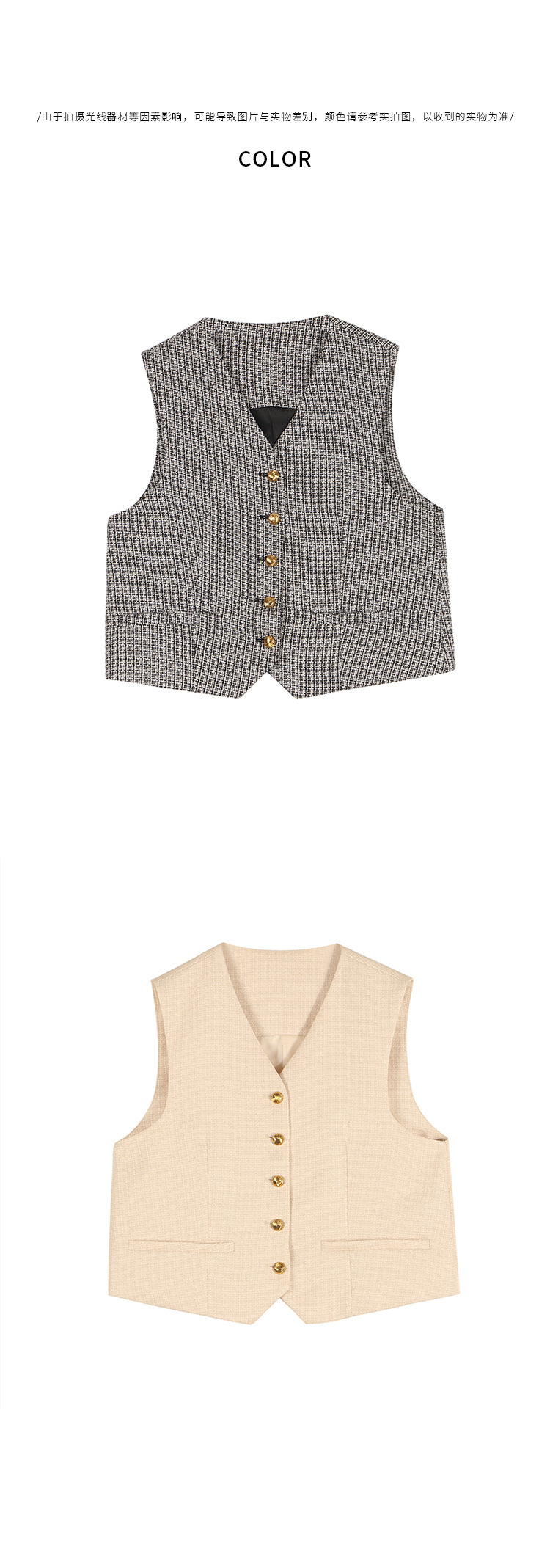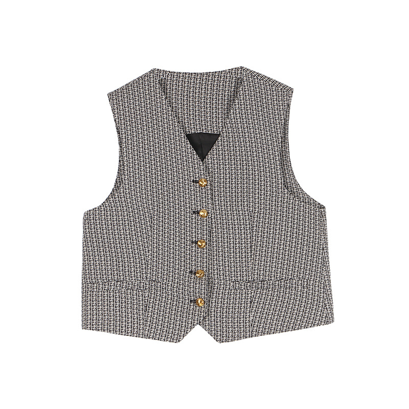 薇颂 粗花呢小香风马甲女2023秋季新款时尚外搭V领无袖气质外套