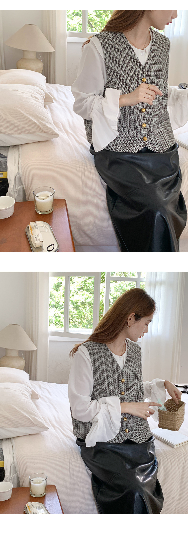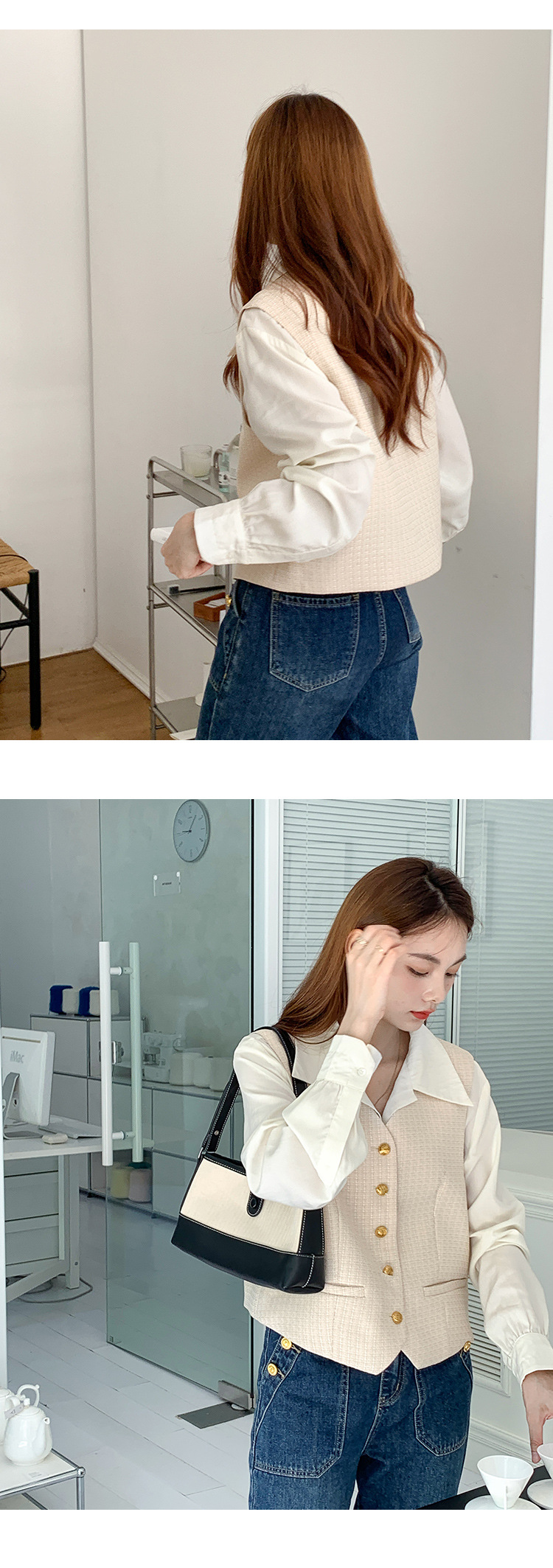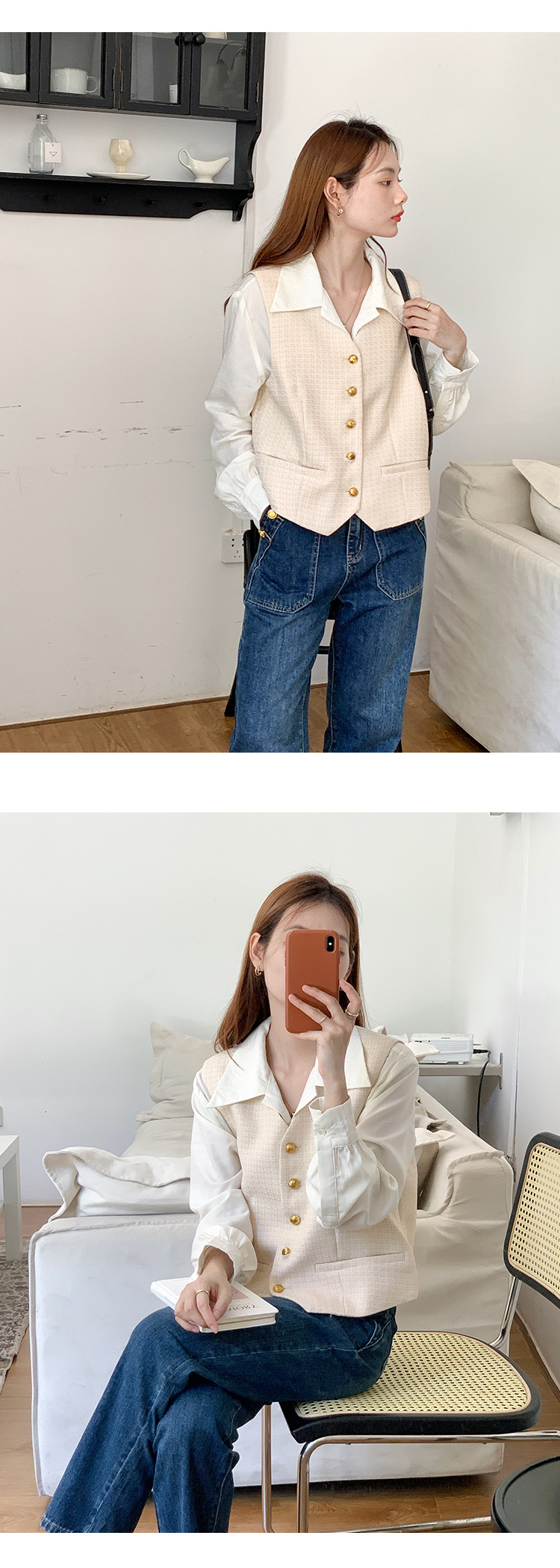 薇颂 粗花呢小香风马甲女2023秋季新款时尚外搭V领无袖气质外套