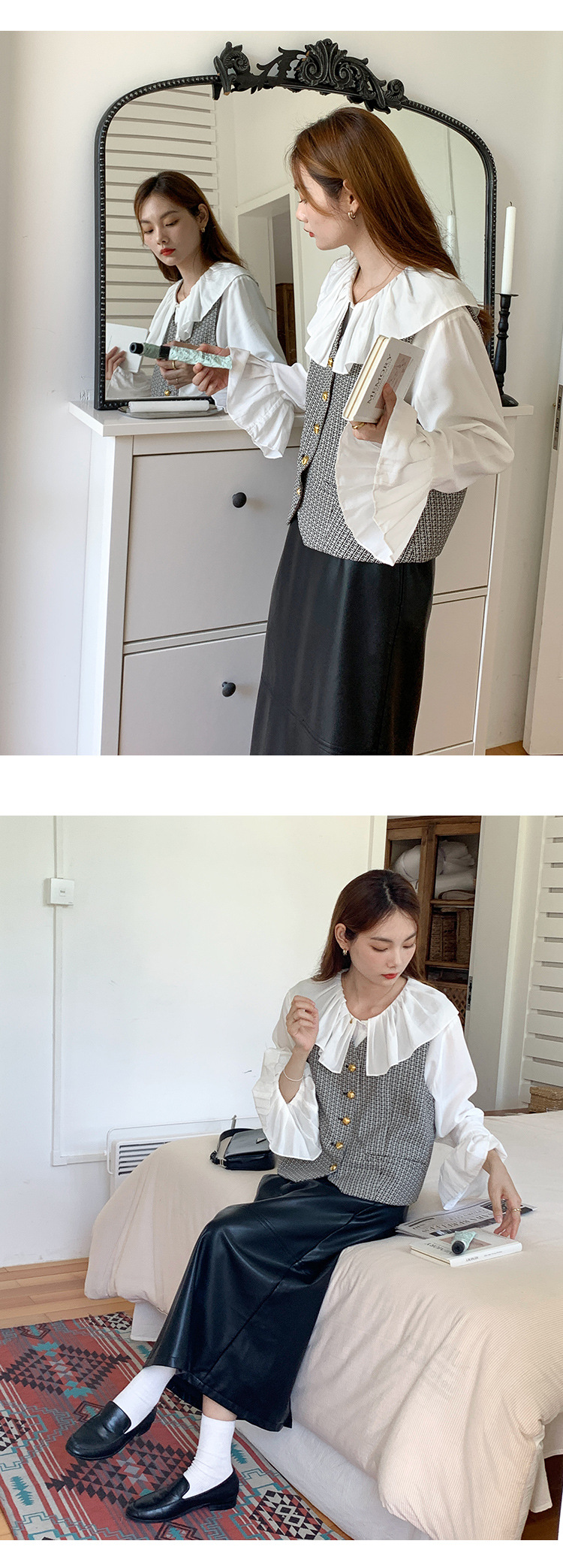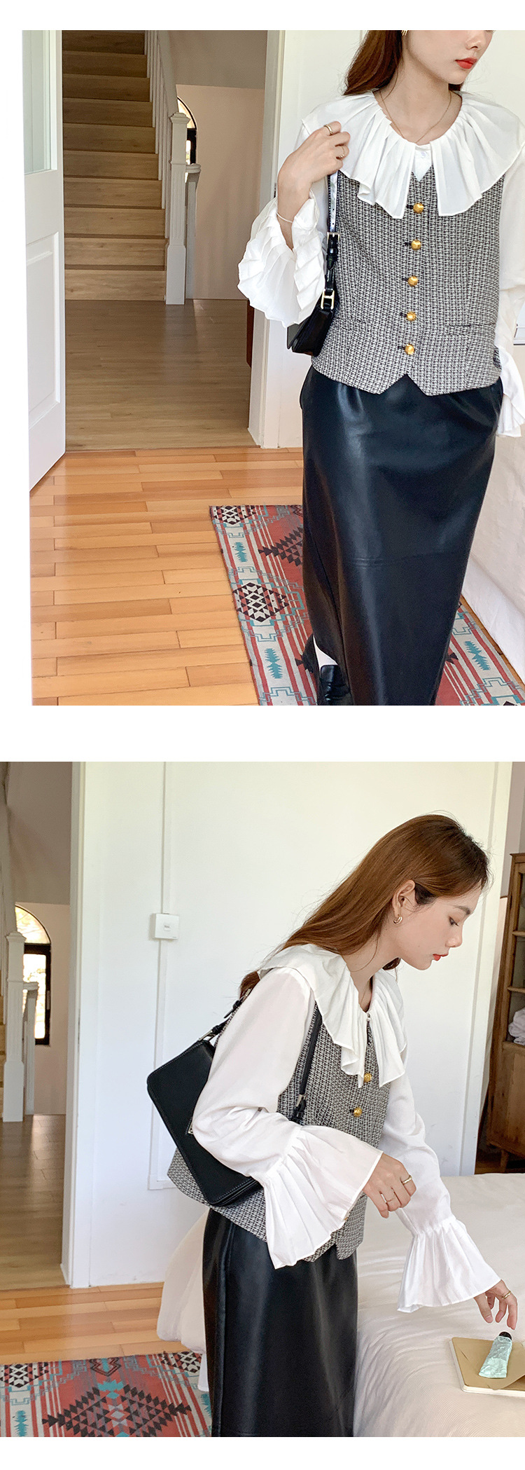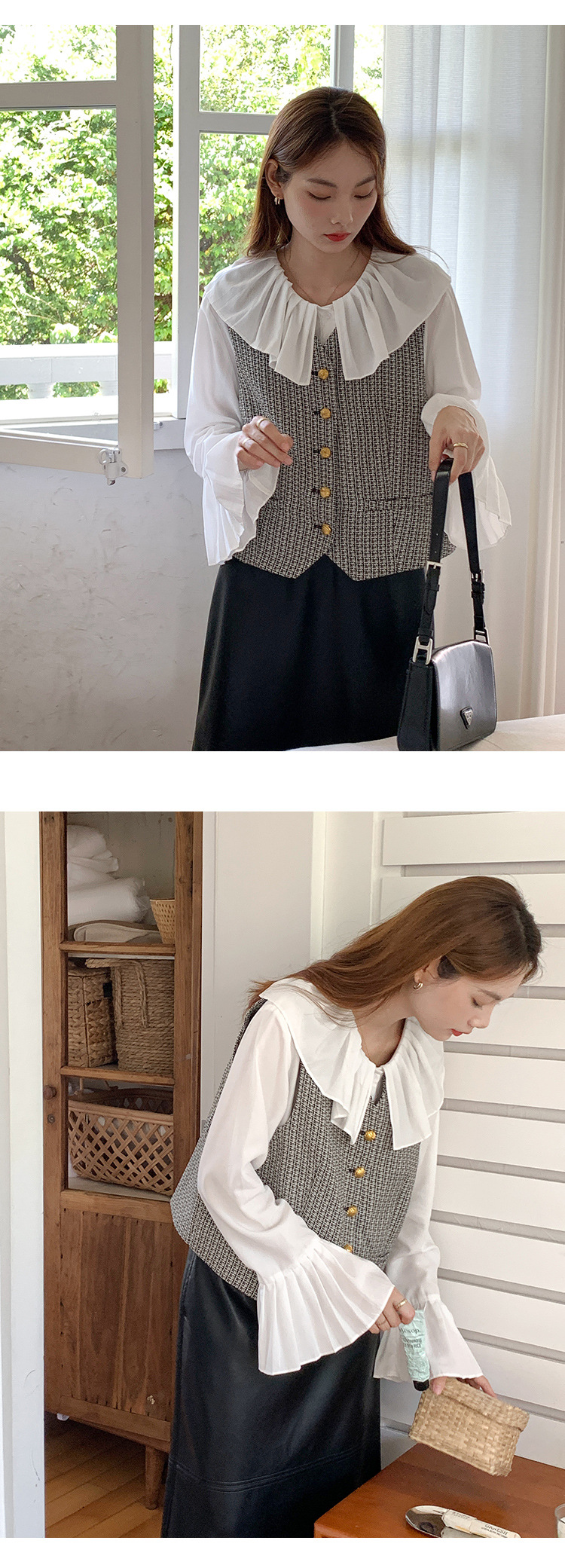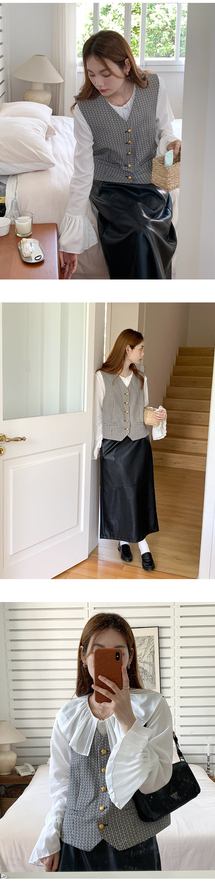 薇颂 粗花呢小香风马甲女2023秋季新款时尚外搭V领无袖气质外套
