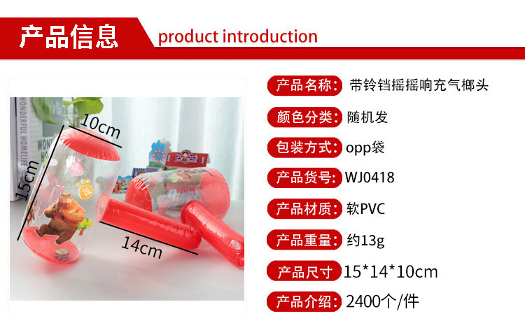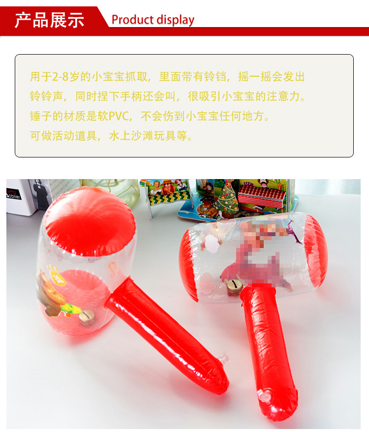 卡通充气锤子 带铃铛摇摇响小号充气榔头敲击棒儿童地摊货源批发