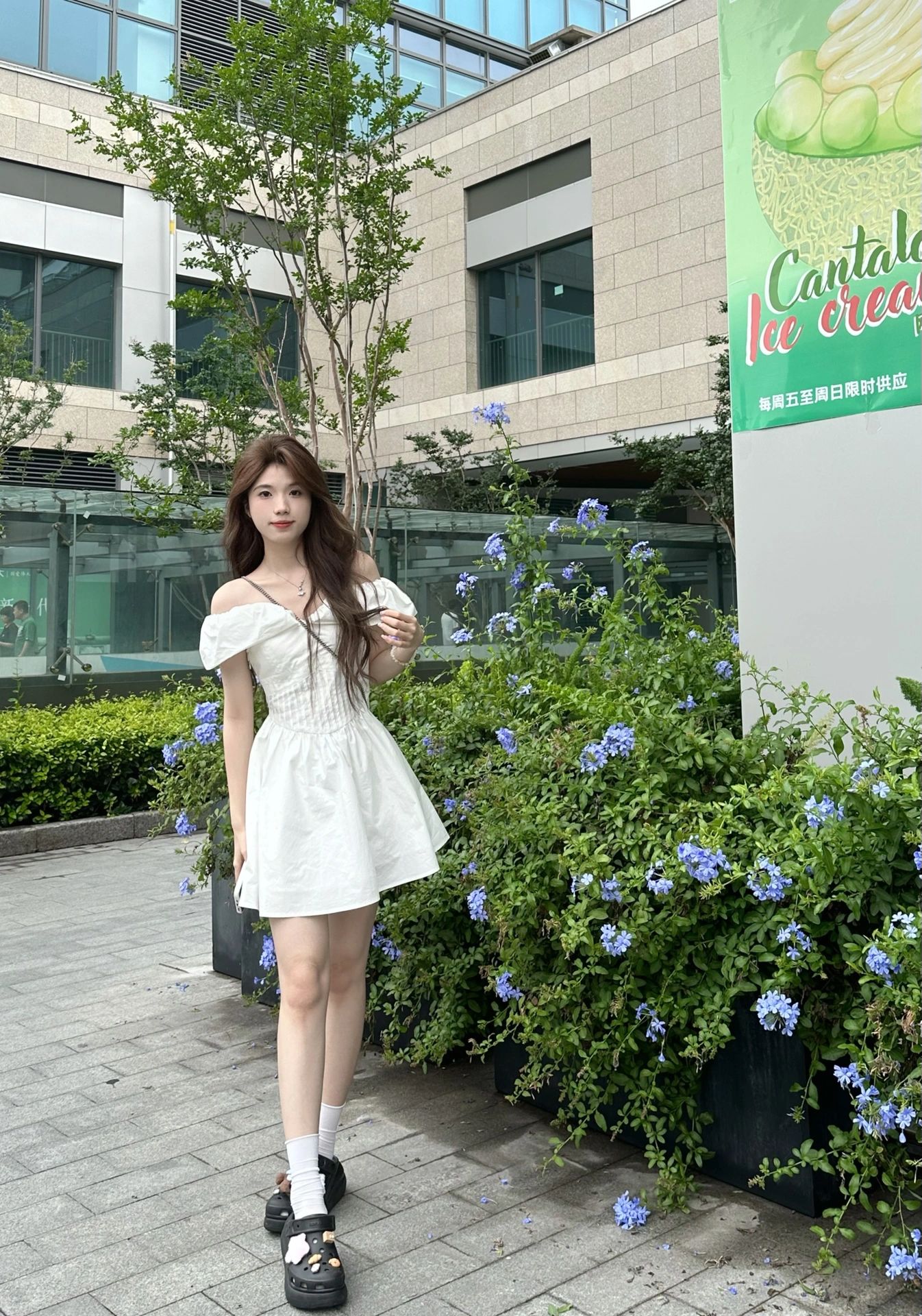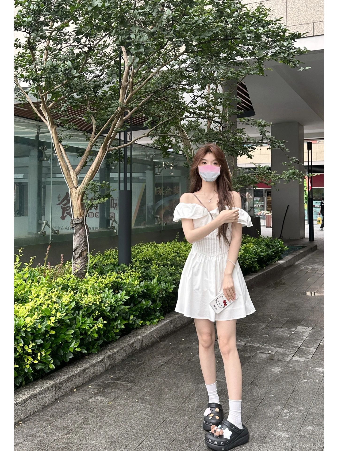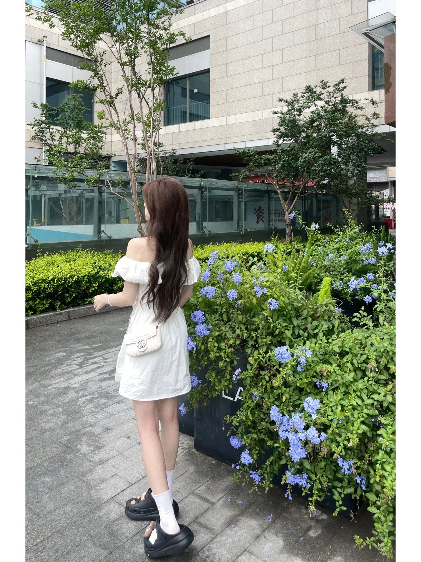 巴黎羅曼史 法式洋裝2023夏季新款一字肩白色氣質初戀裙小個子
