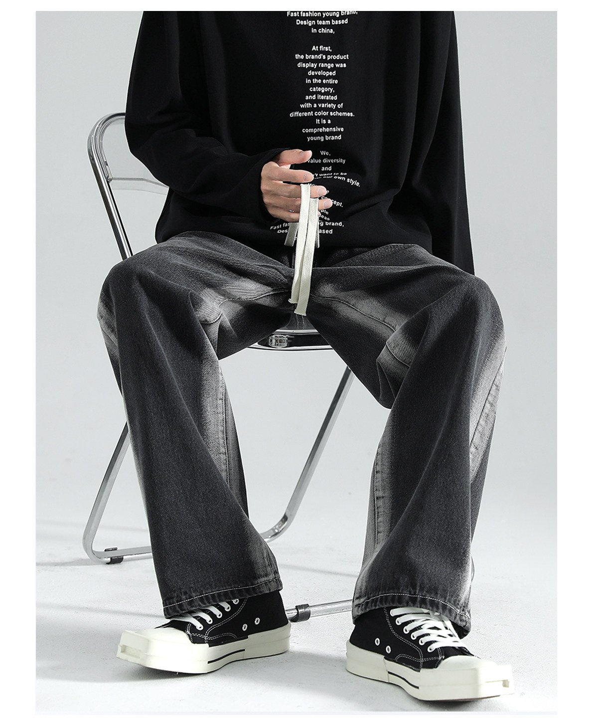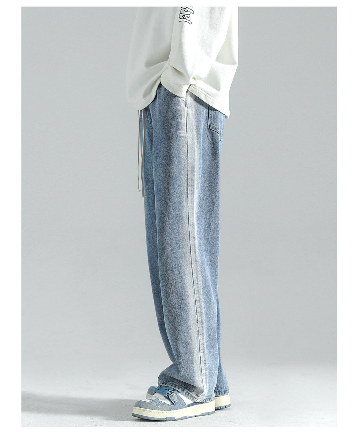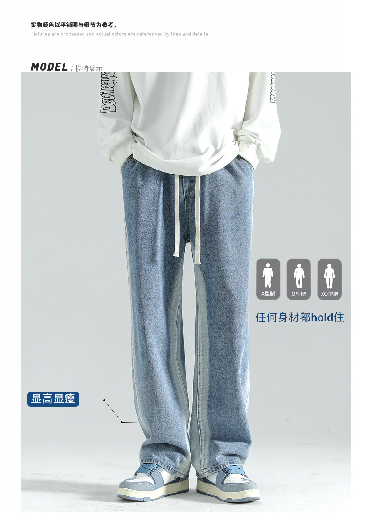 HuiTouLv潮牌牛仔褲男生夏季薄款直筒褲寬鬆顯瘦美式闊腿休閒長褲