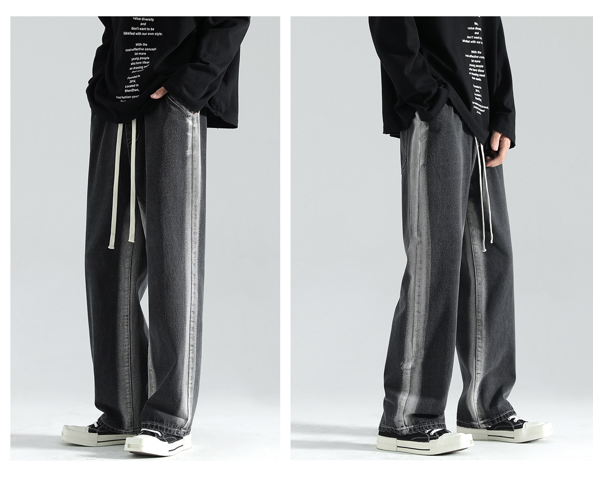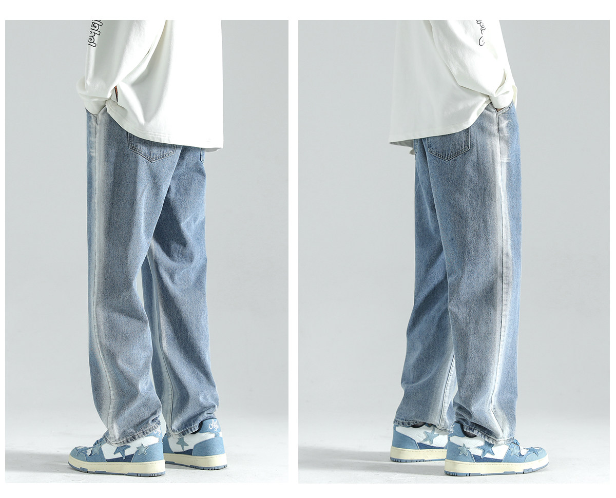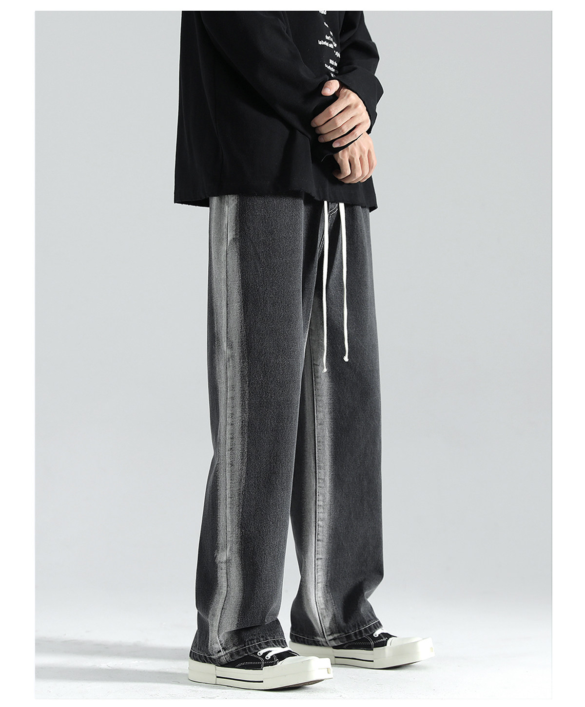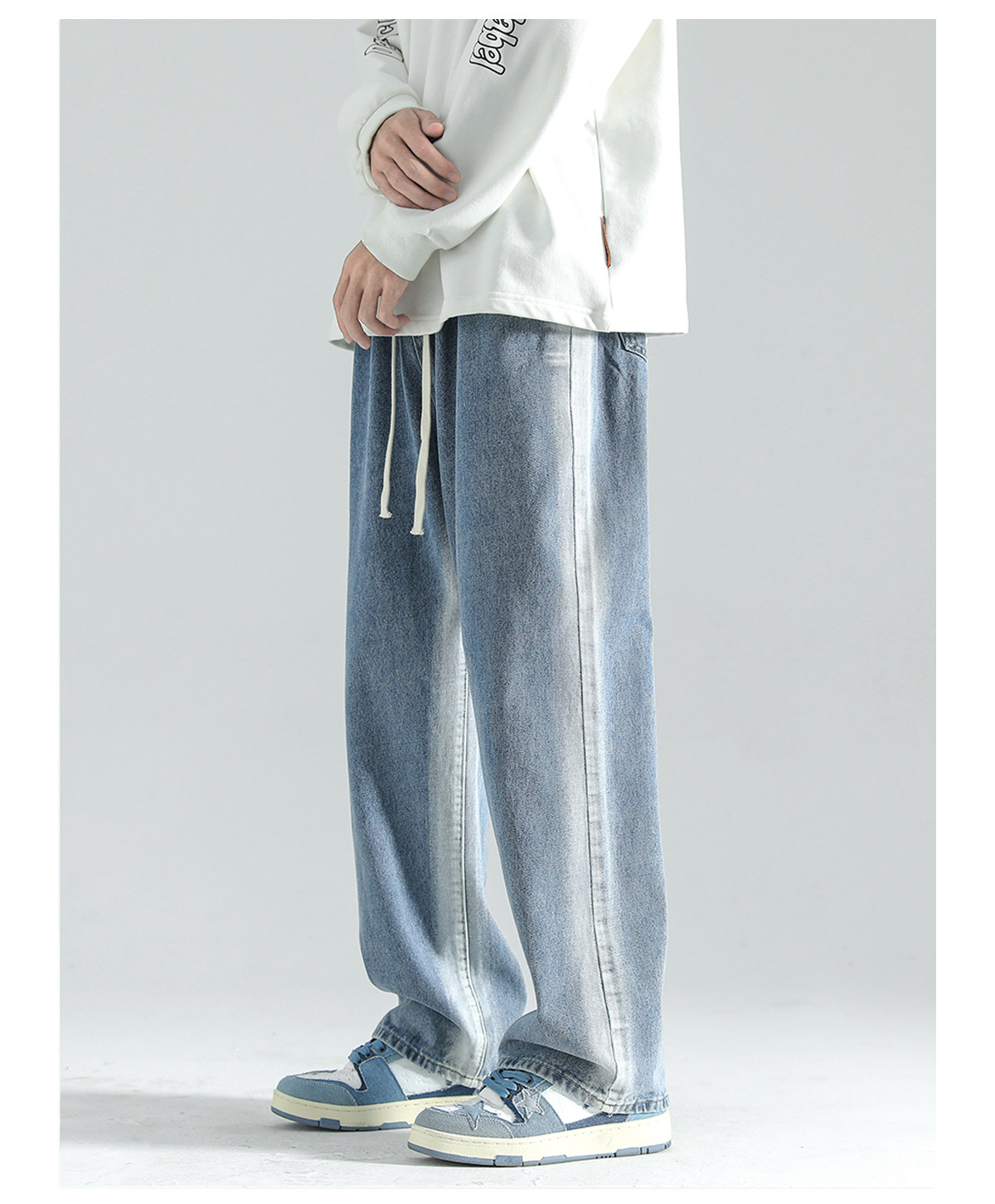 HuiTouLv潮牌牛仔褲男生夏季薄款直筒褲寬鬆顯瘦美式闊腿休閒長褲