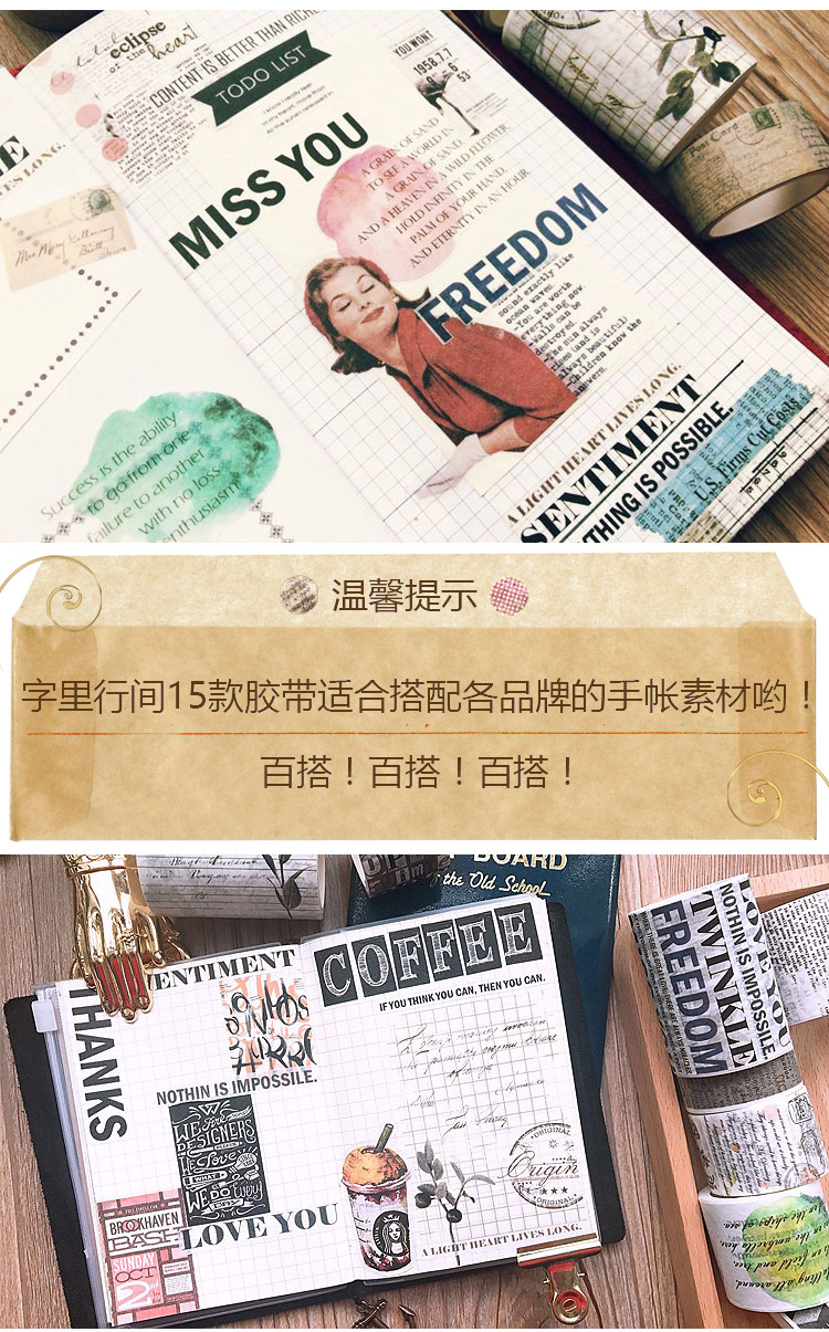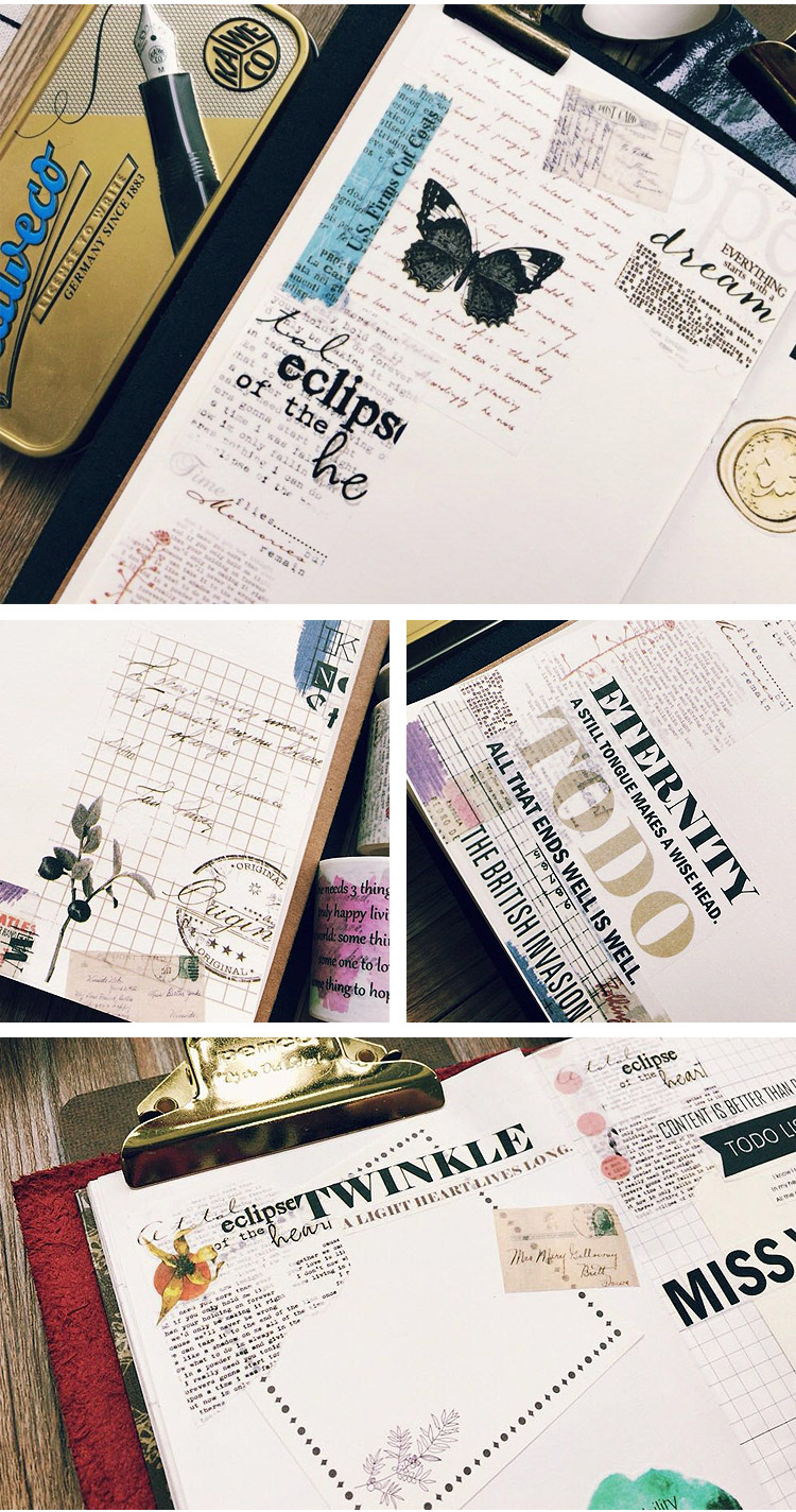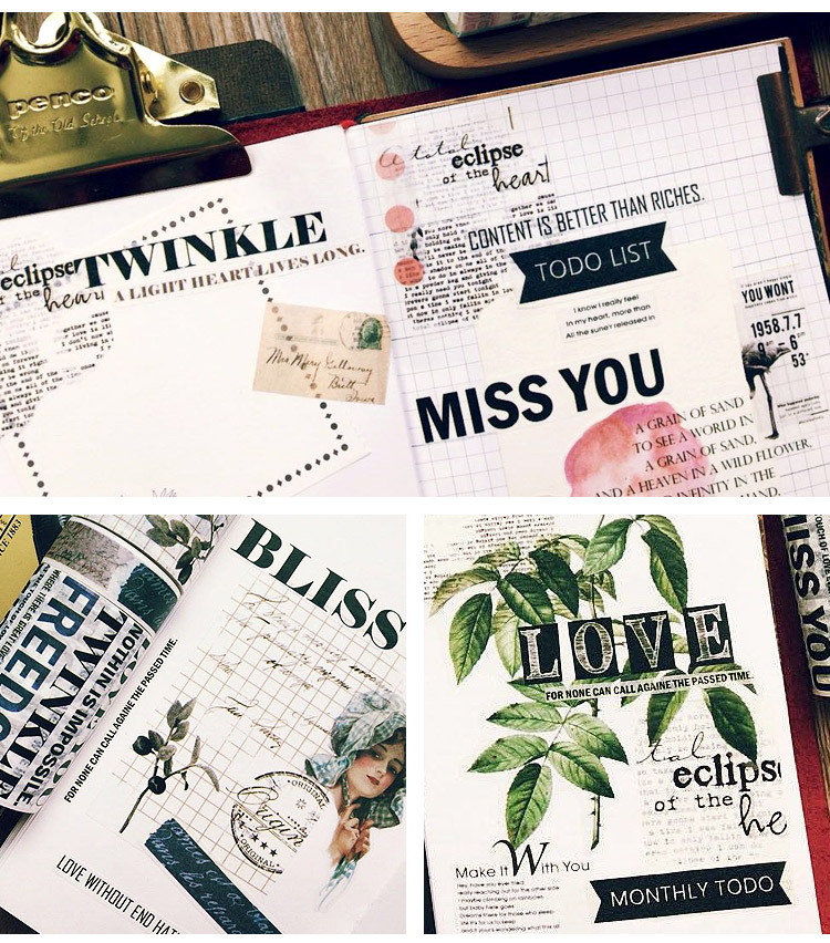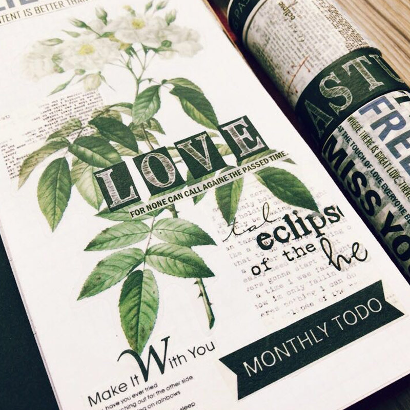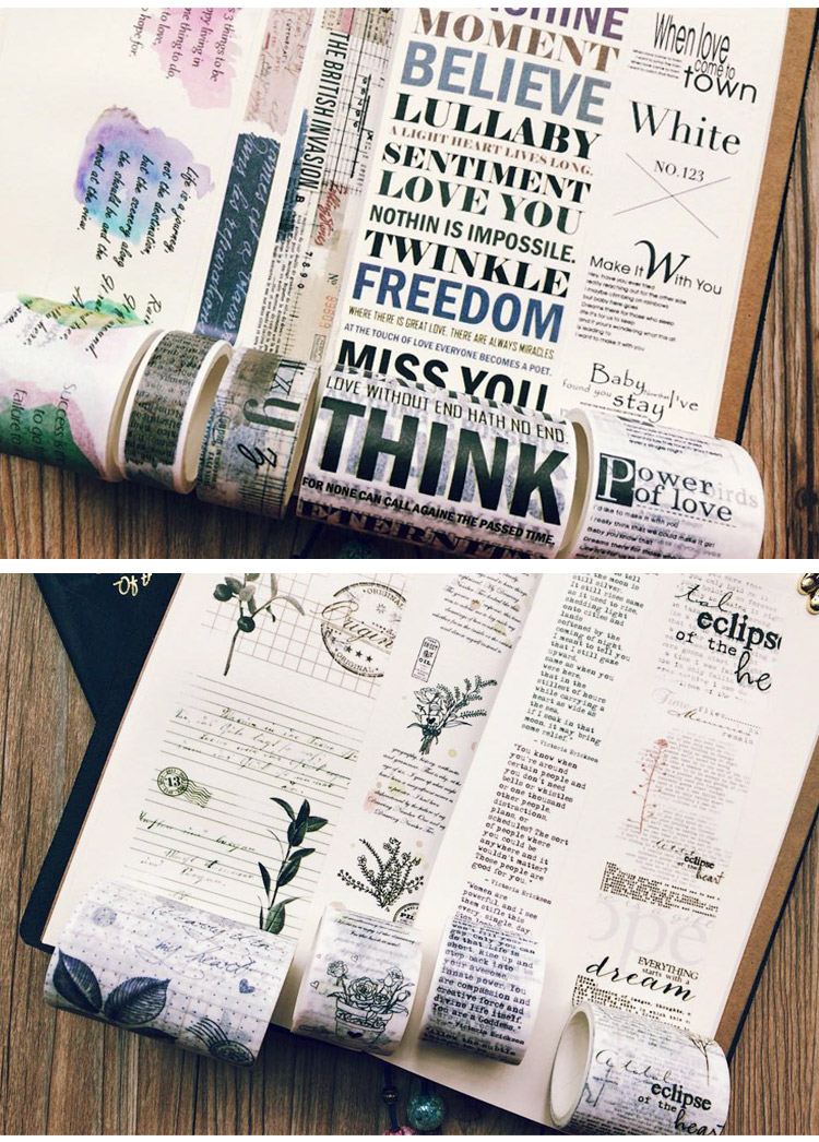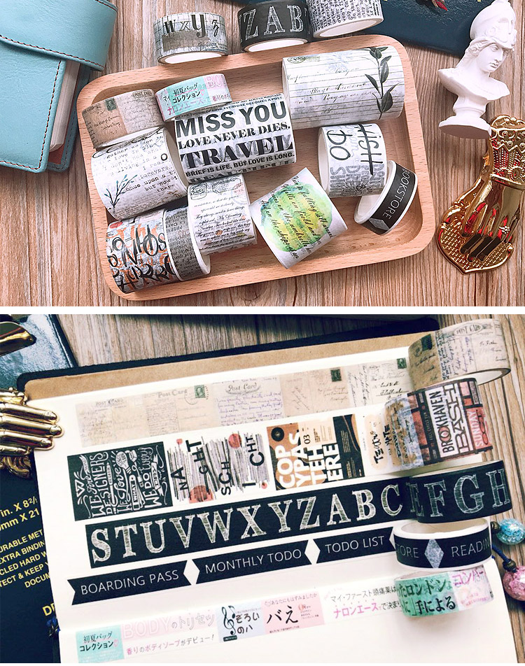 青釉 字里行间英文杂志字母 日本手撕和纸胶带整卷手帐日记DIY相