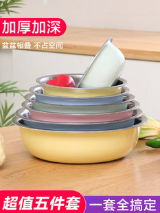 不锈钢盆圆形厨房家用加深加厚盆套装汤盆打蛋和面洗菜盆五件套