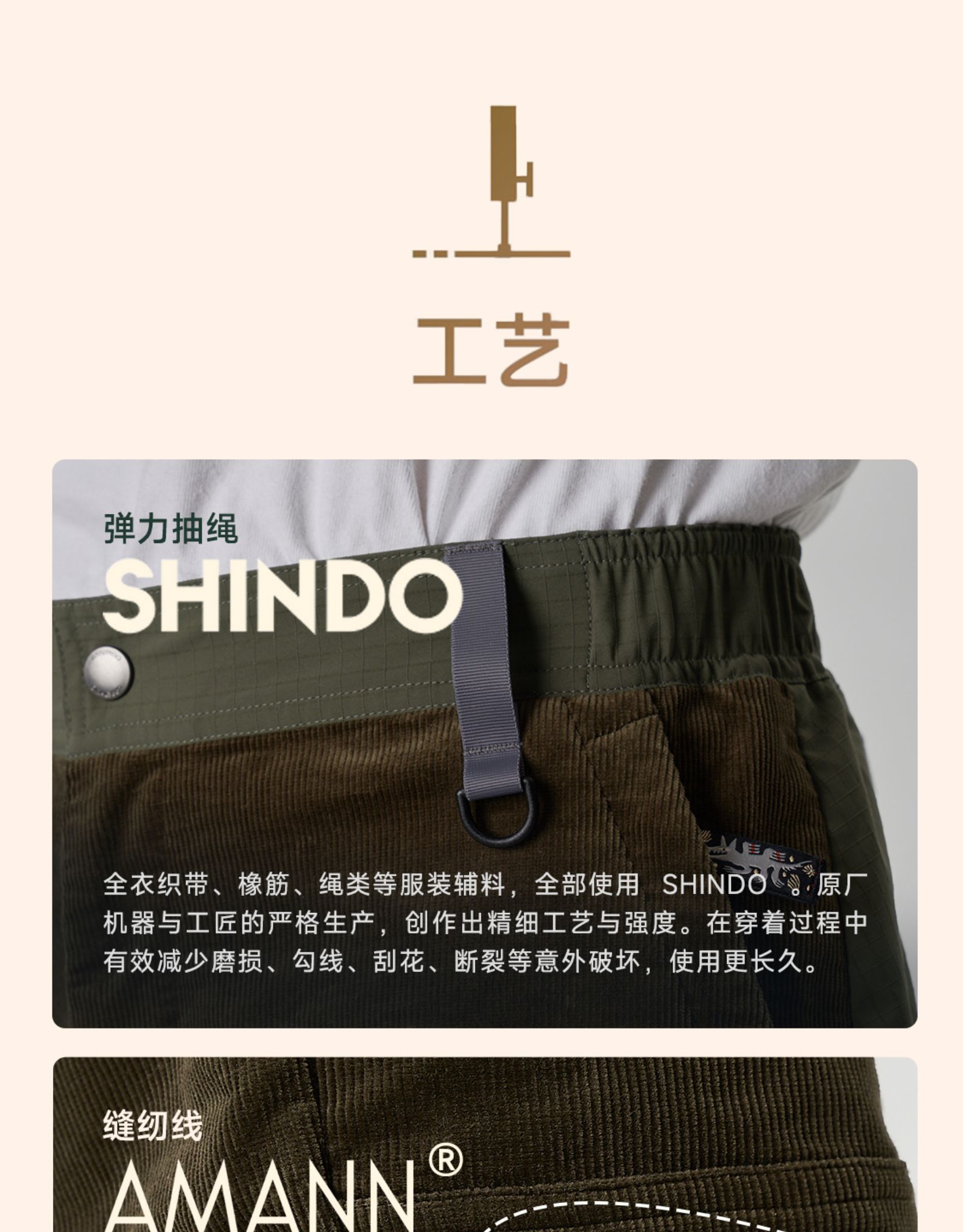 UPPERVOID二普緯度錐型燈芯絨褲戶外休閒長褲男秋季寬鬆運動