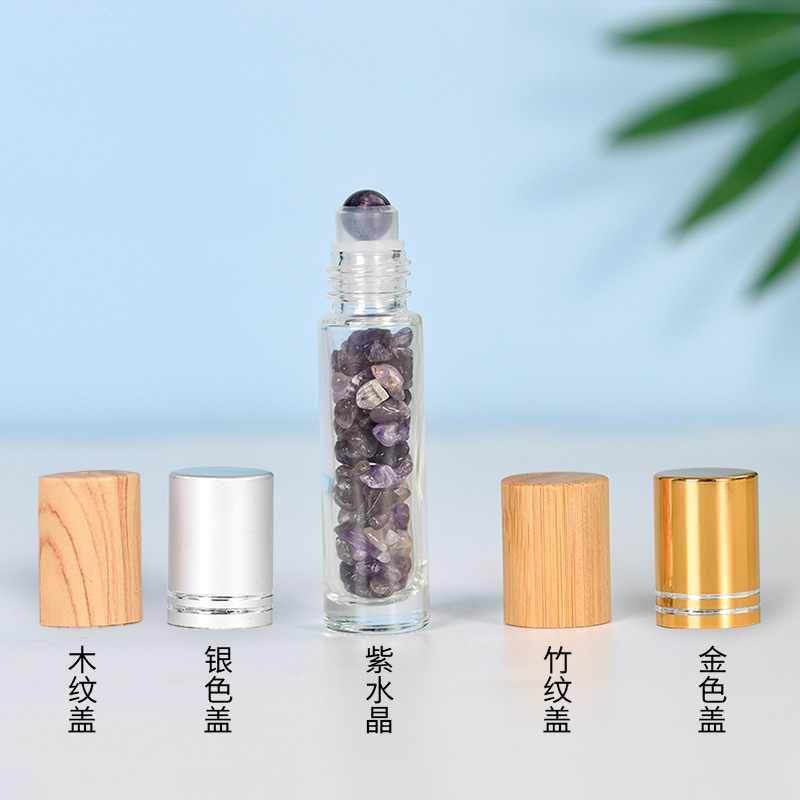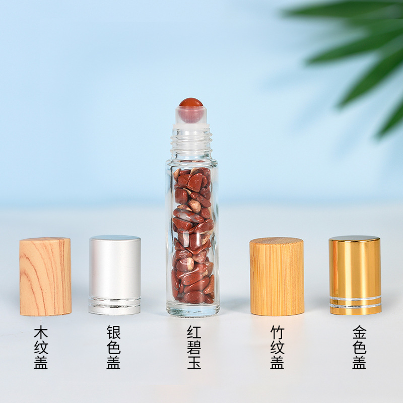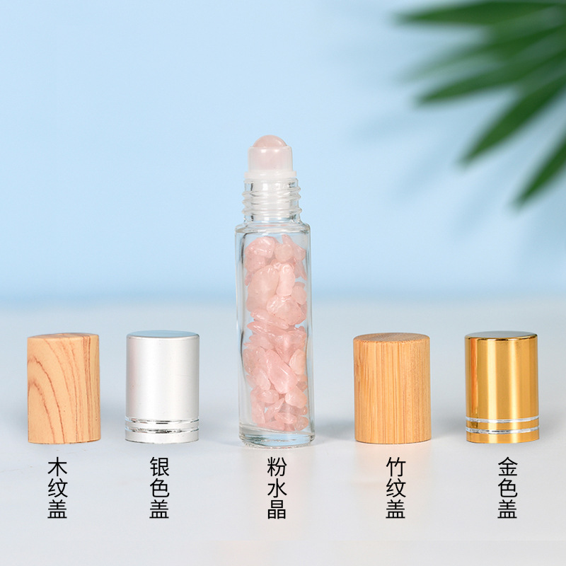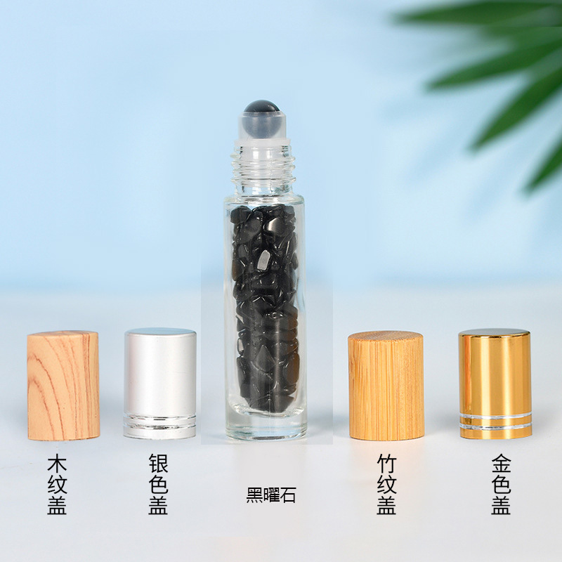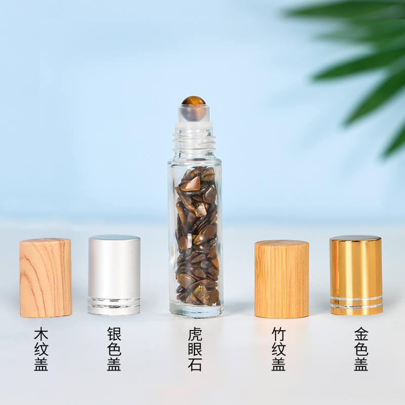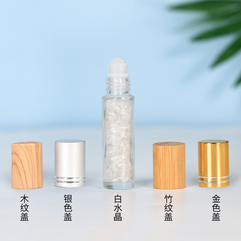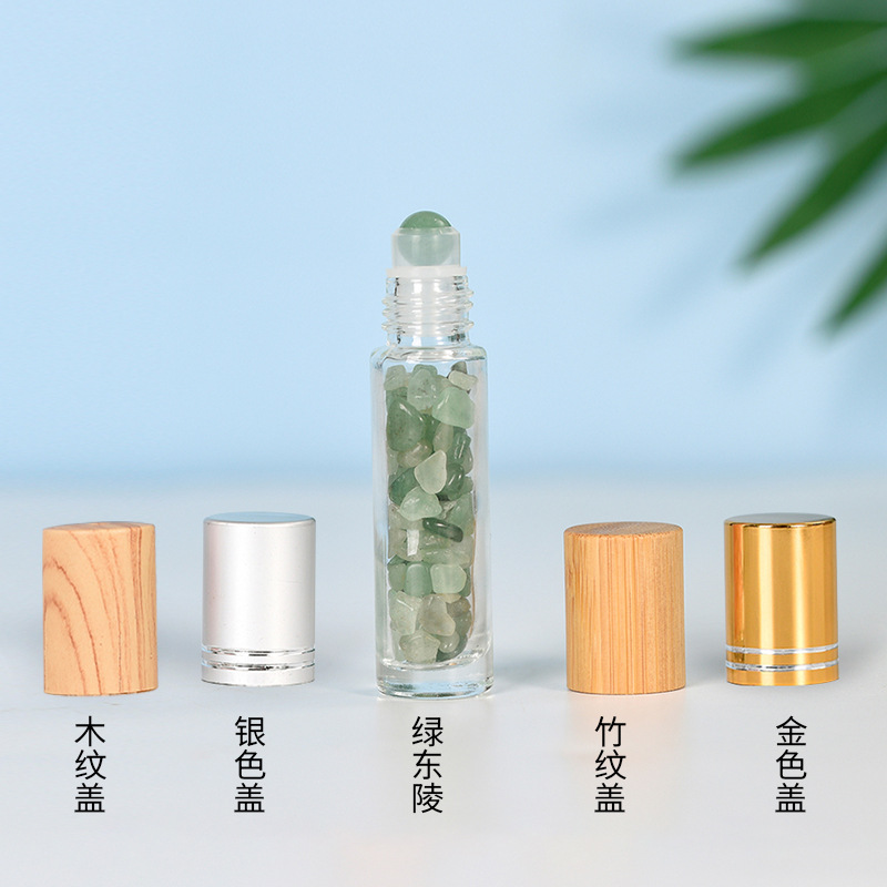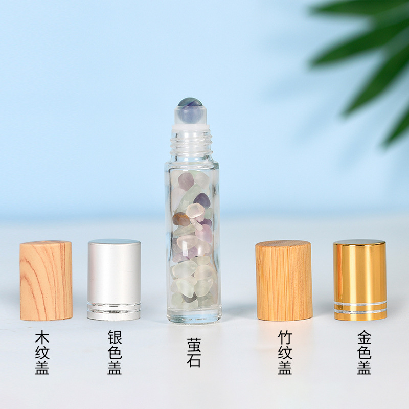 厂家热销现货10ml木纹盖精油走珠瓶香水分装瓶水晶碎石玉石滚珠瓶