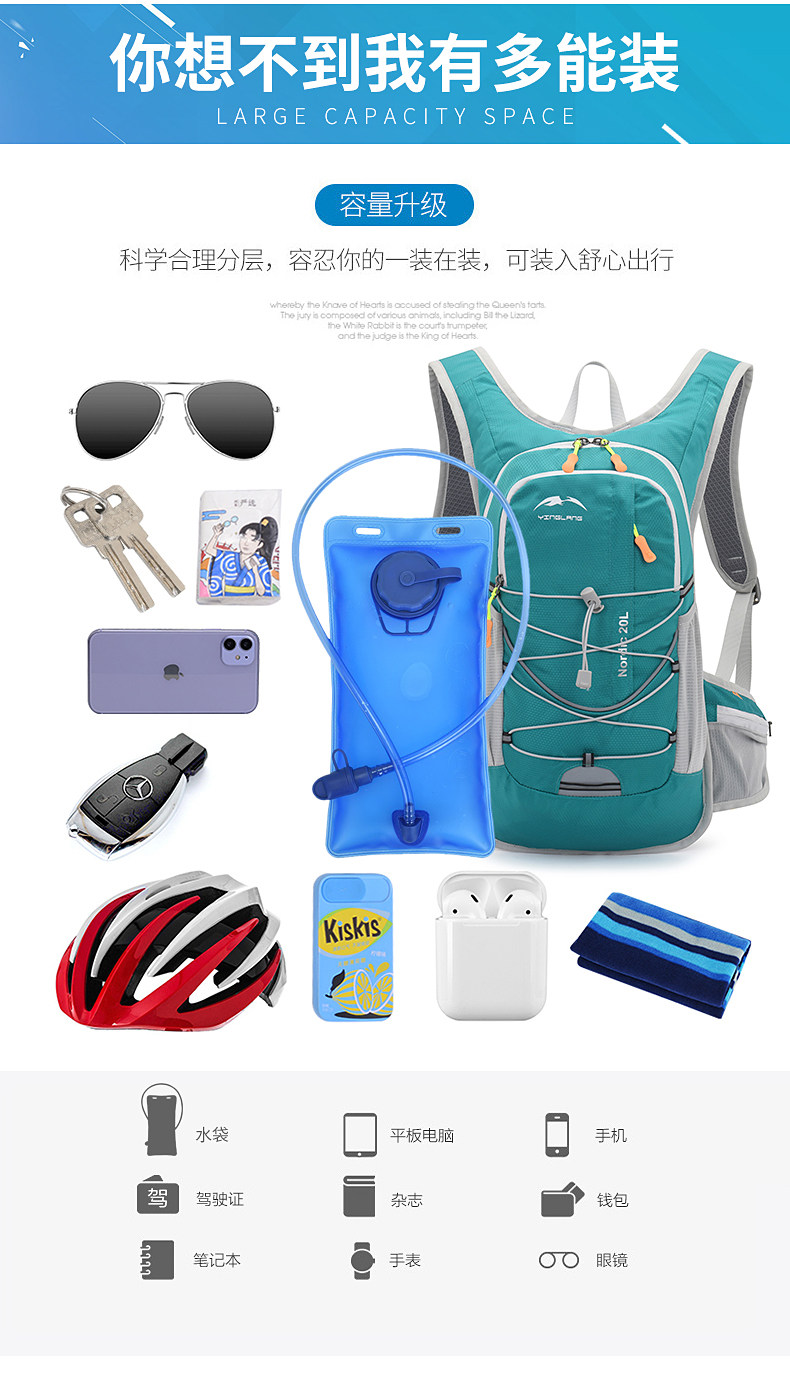 顏色分類 藍色,紅色,灰色,黑色,桔色,紫色,湖水綠,玫紅,果綠,藍色+2L水袋,紅色+2L水袋,湖水綠+2L水袋,玫紅+2L水袋,黑色+2L水袋,果綠+2L水袋,桔色+2L水袋,紫色+2L水袋,灰色+2L水袋