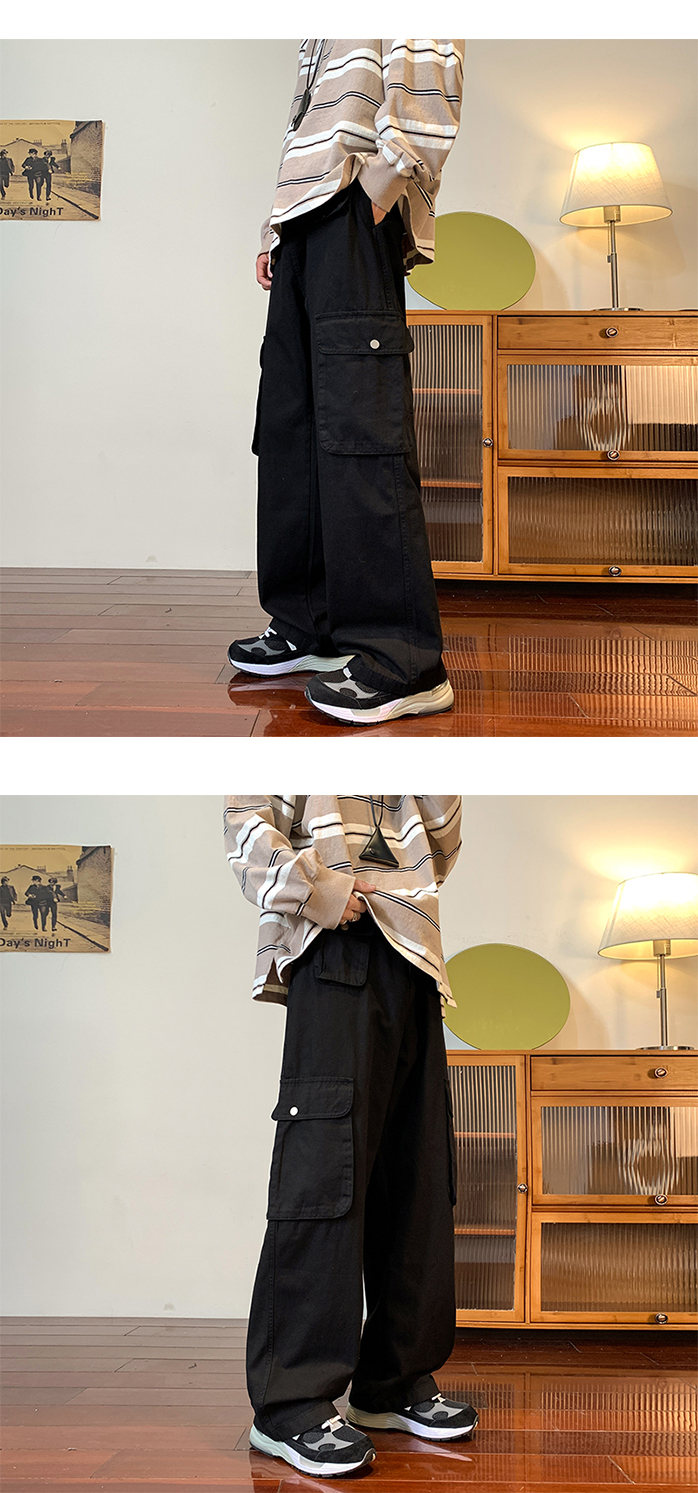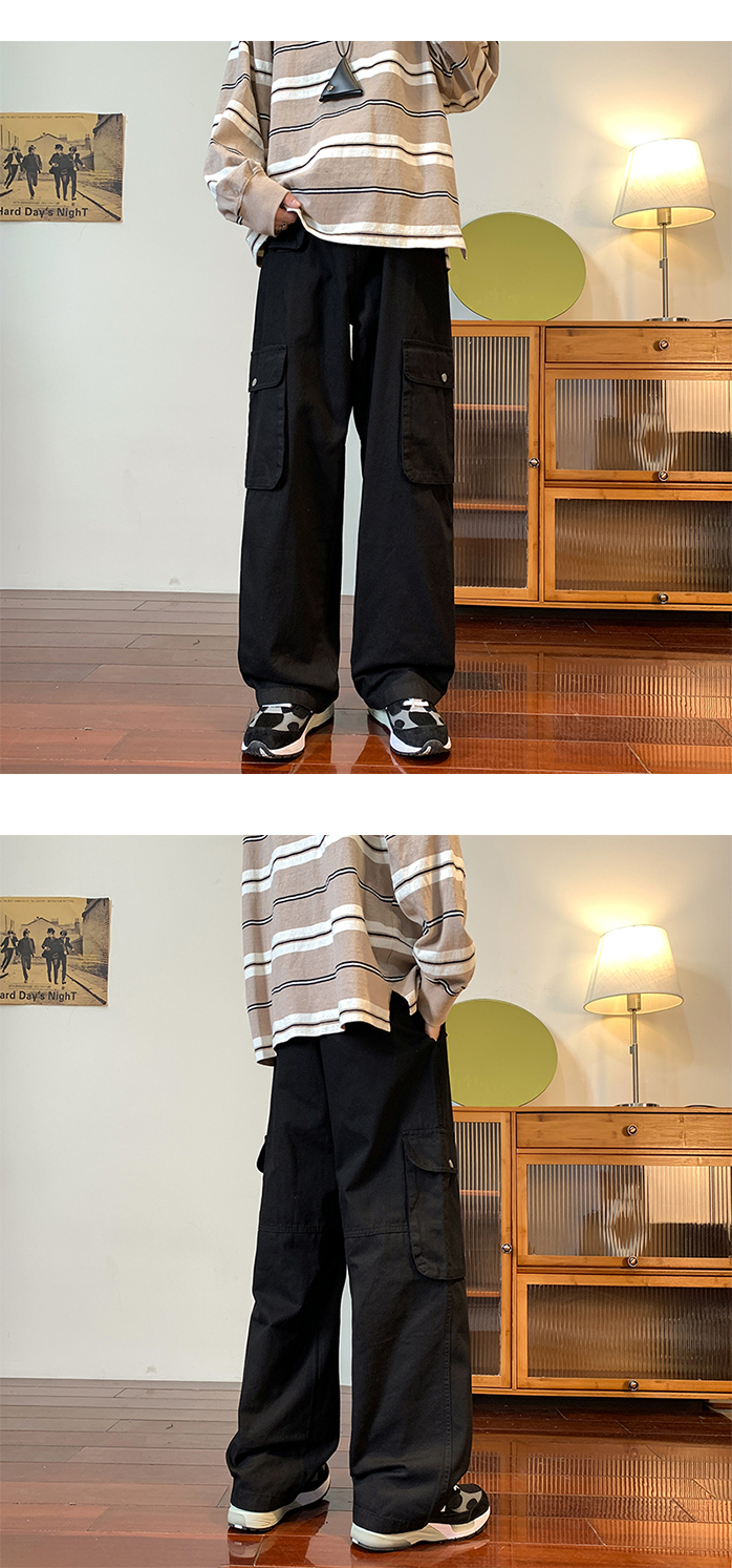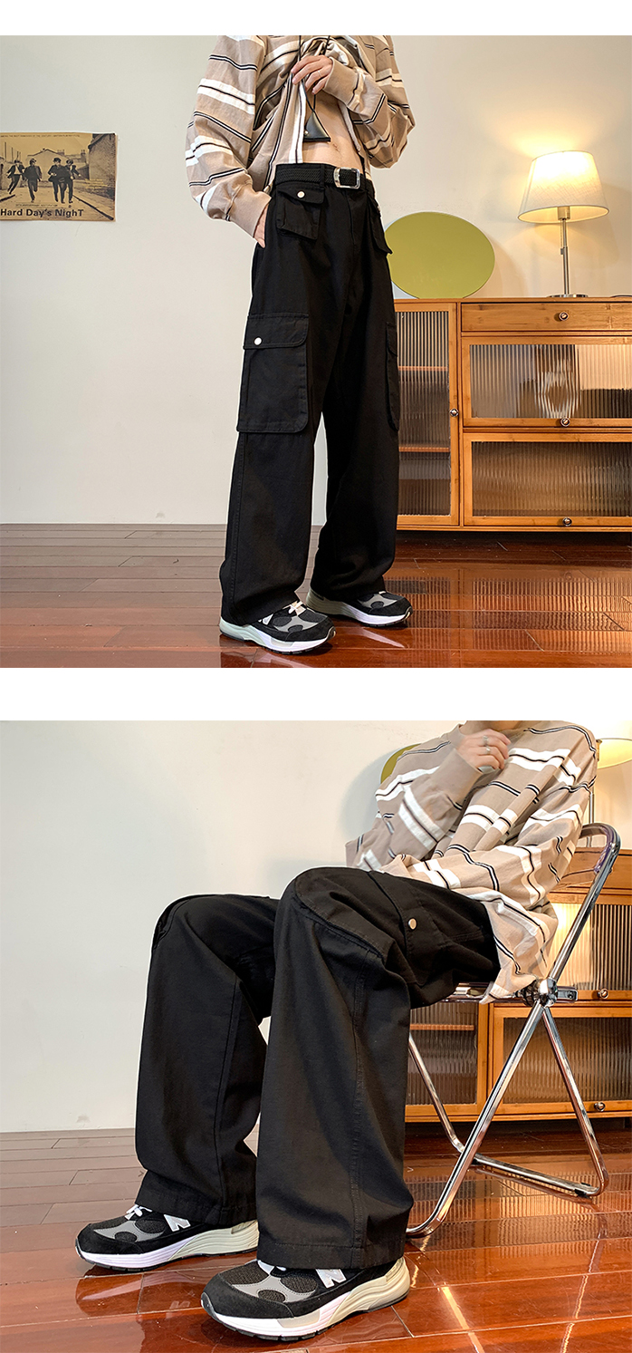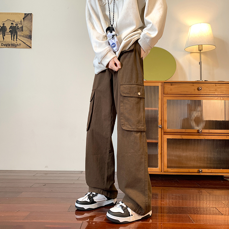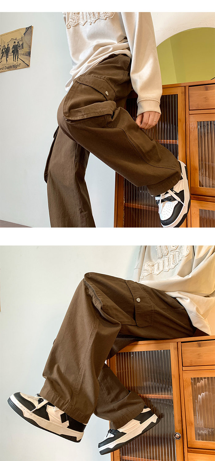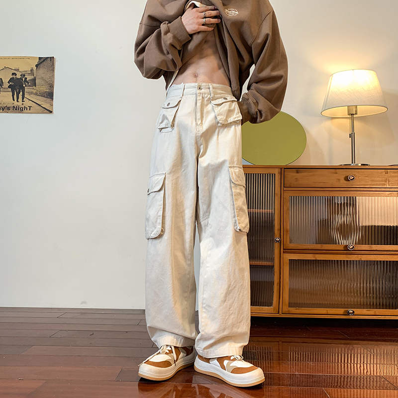 vibe美式垂感褲子ins高街潮大口袋機能風工裝褲高街男直筒休閒褲