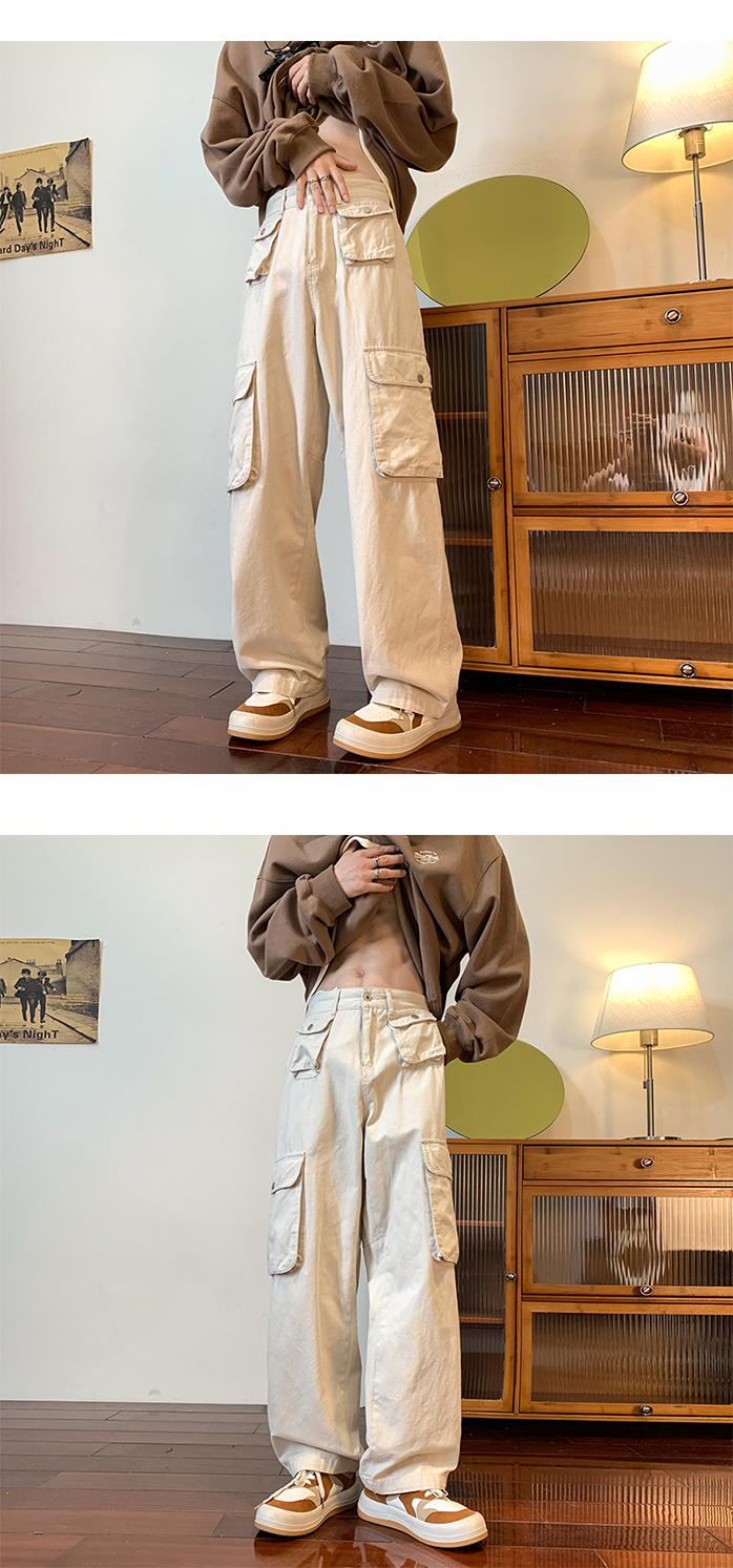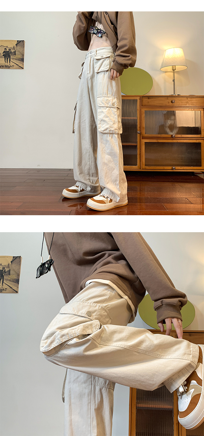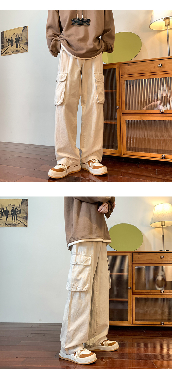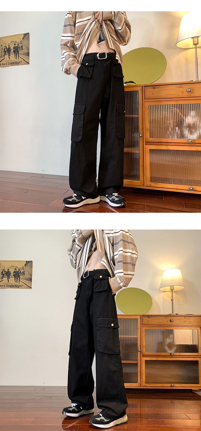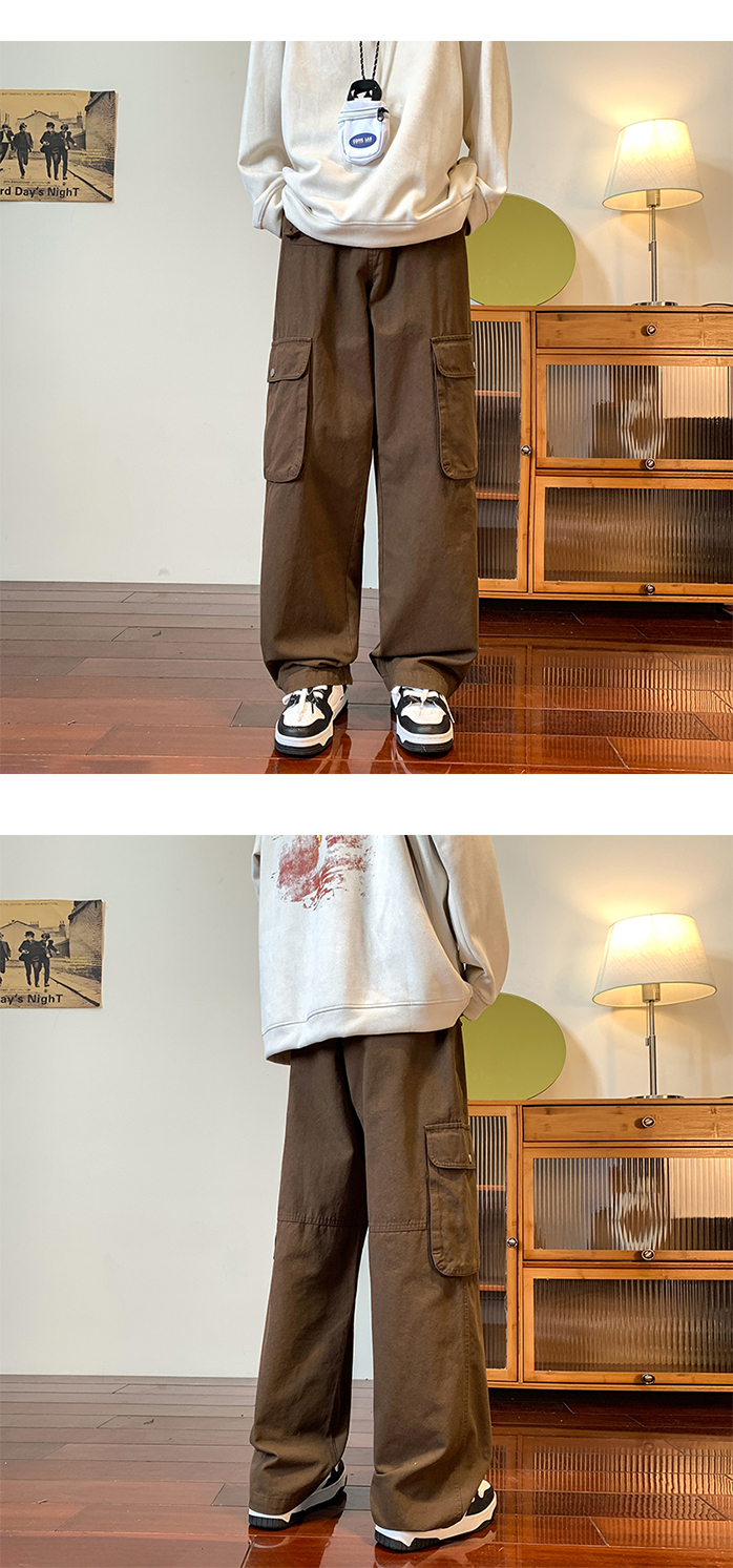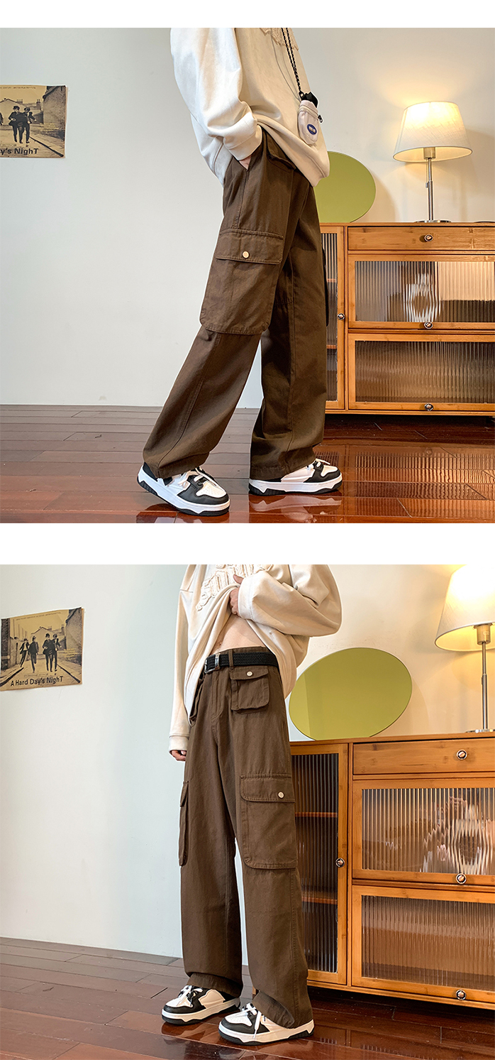 vibe美式垂感褲子ins高街潮大口袋機能風工裝褲高街男直筒休閒褲