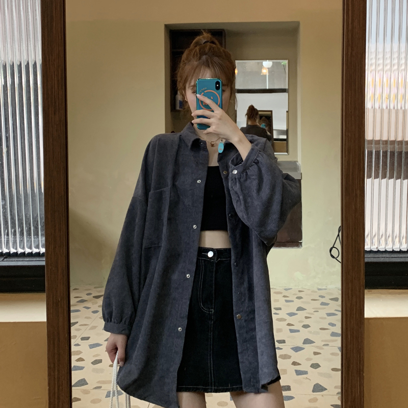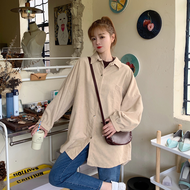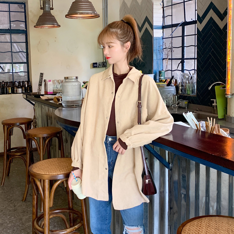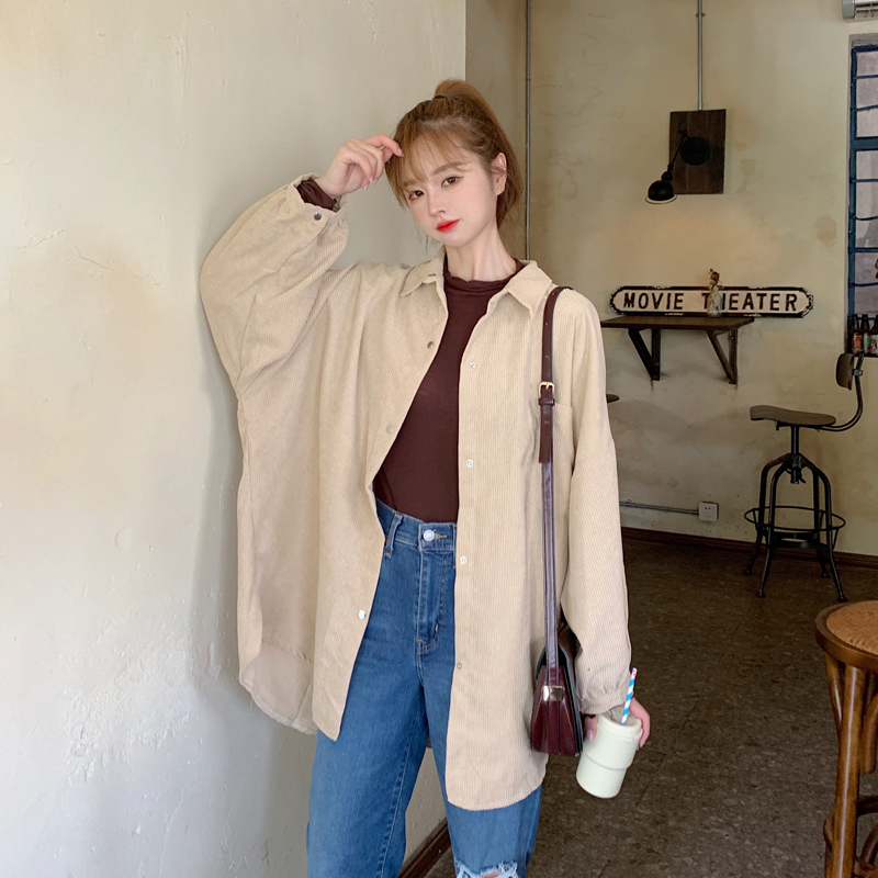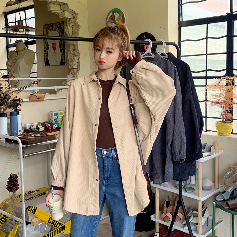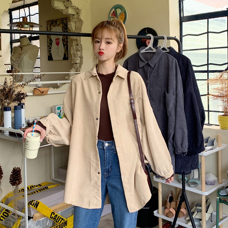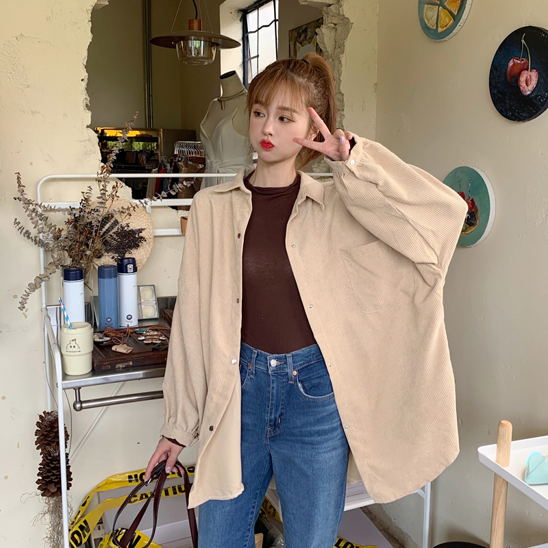 燈芯絨襯衫女春寬鬆韓版ins復古長袖襯衫設計感小眾港味chic外套