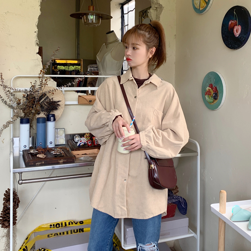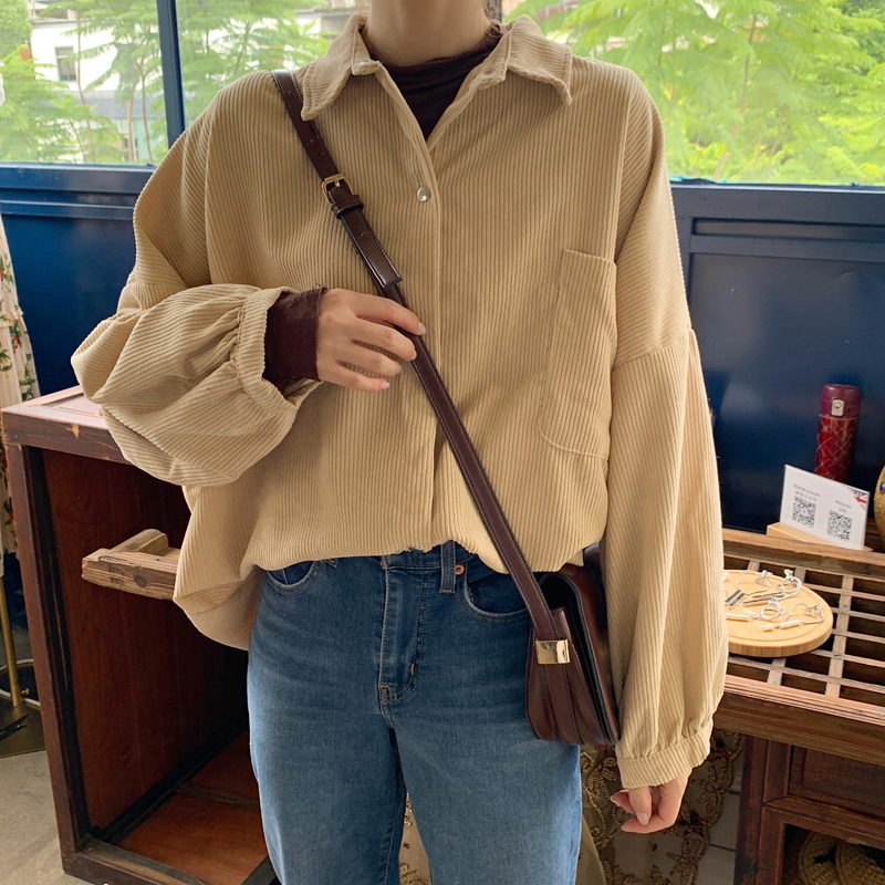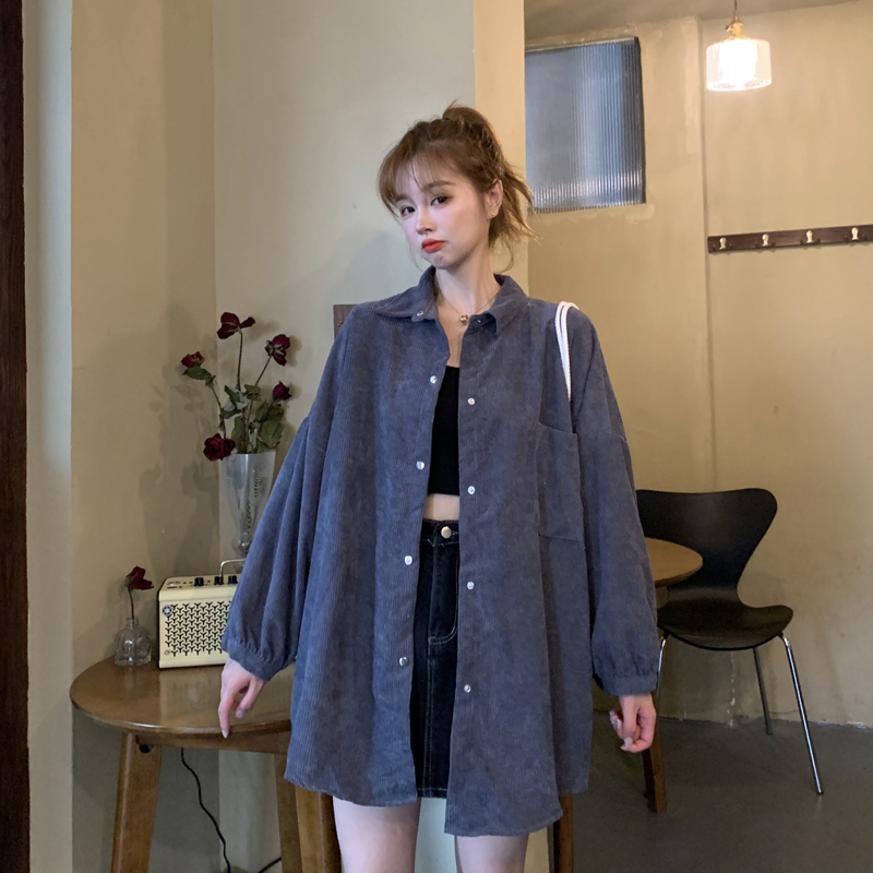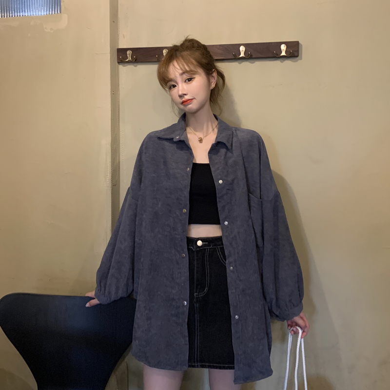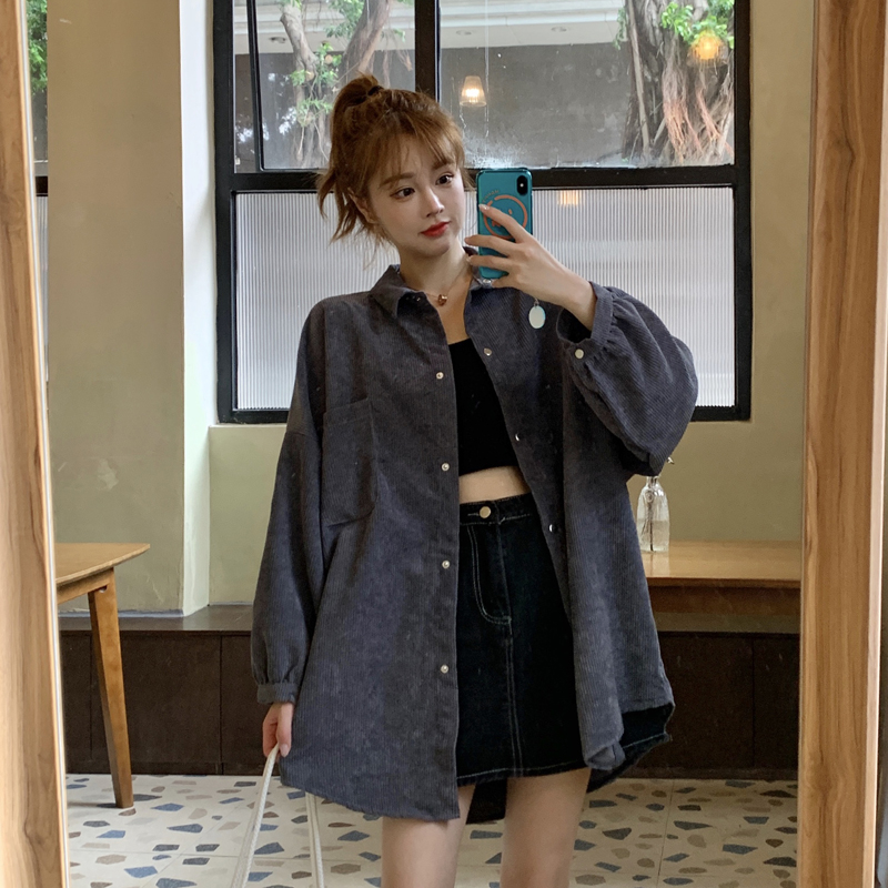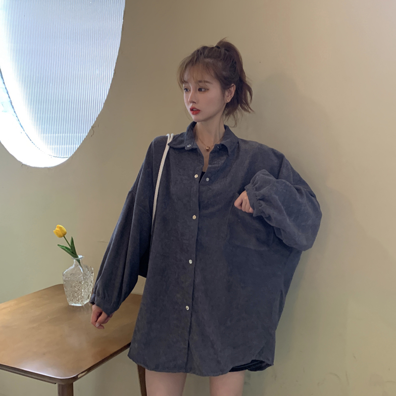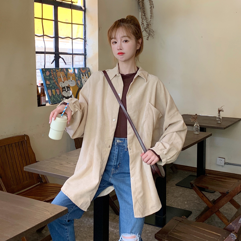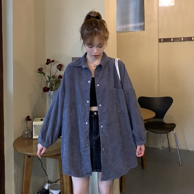 燈芯絨襯衫女春寬鬆韓版ins復古長袖襯衫設計感小眾港味chic外套