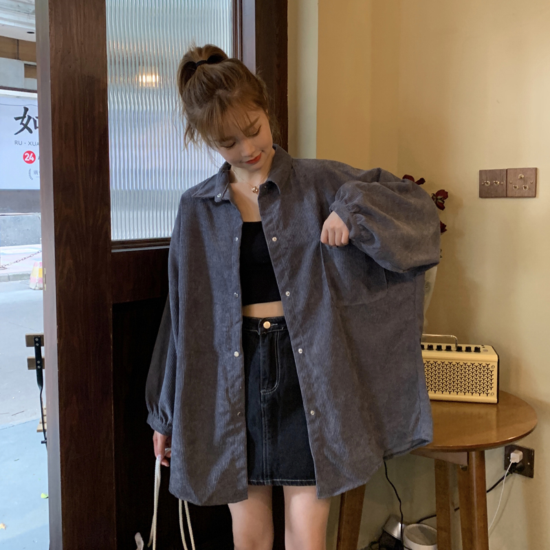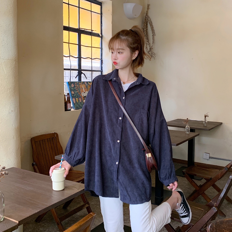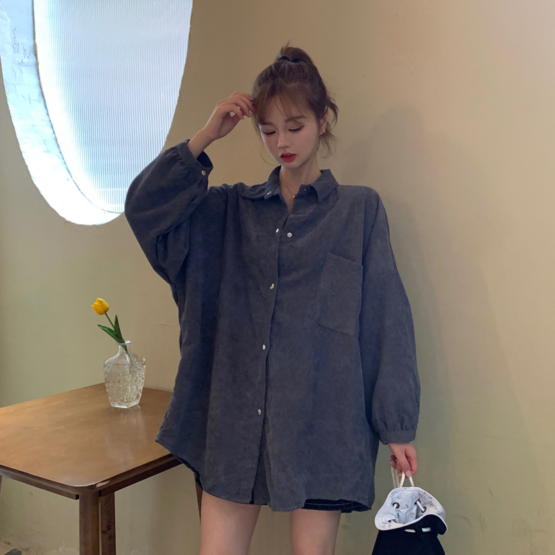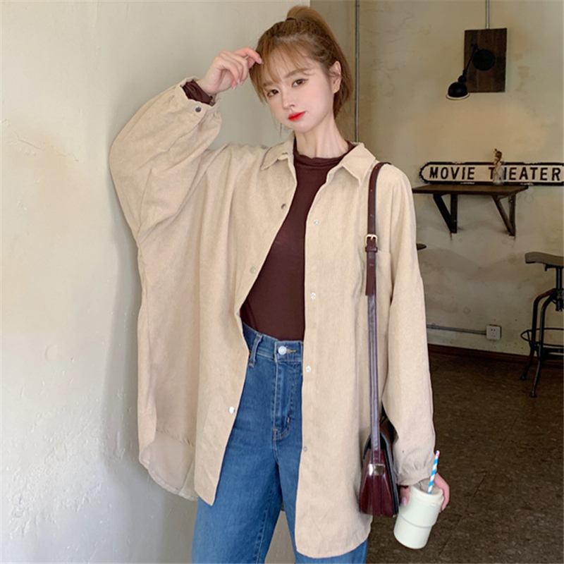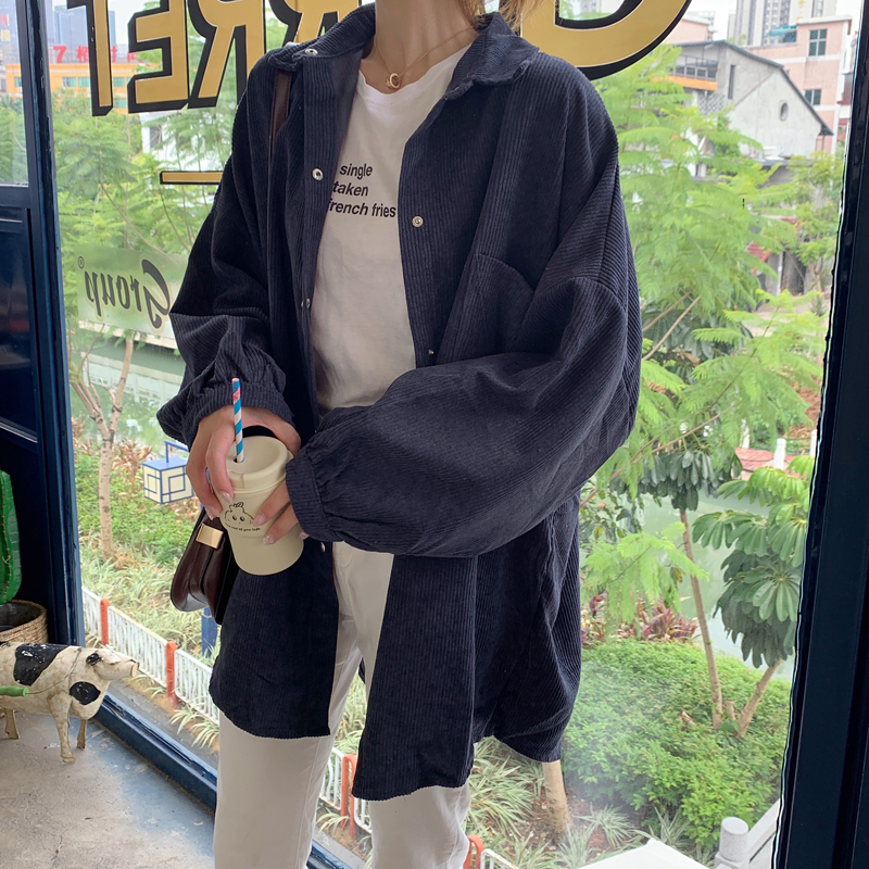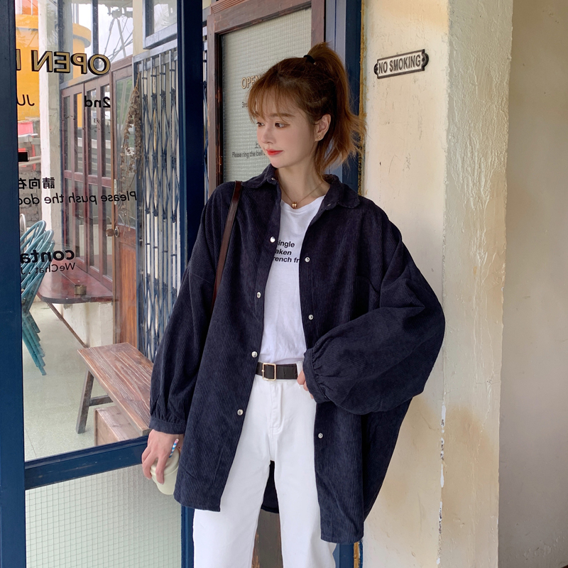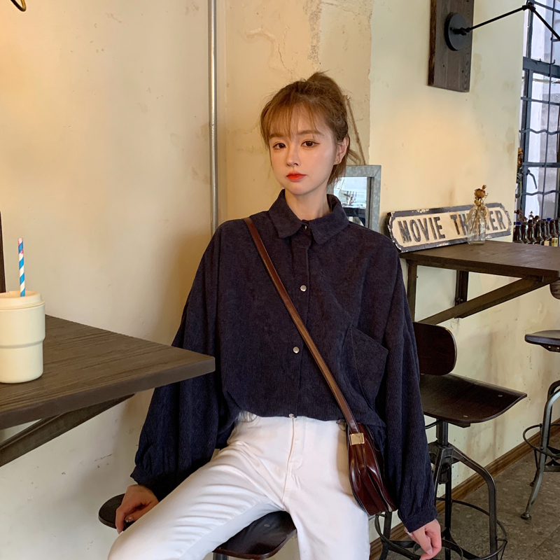 燈芯絨襯衫女春寬鬆韓版ins復古長袖襯衫設計感小眾港味chic外套