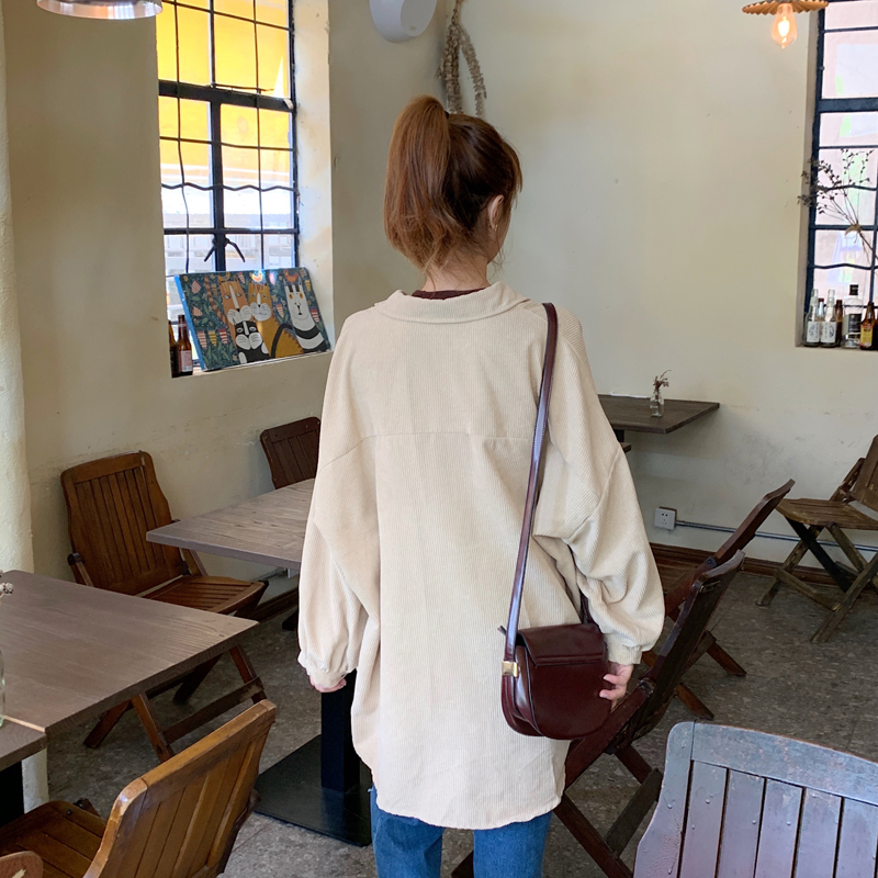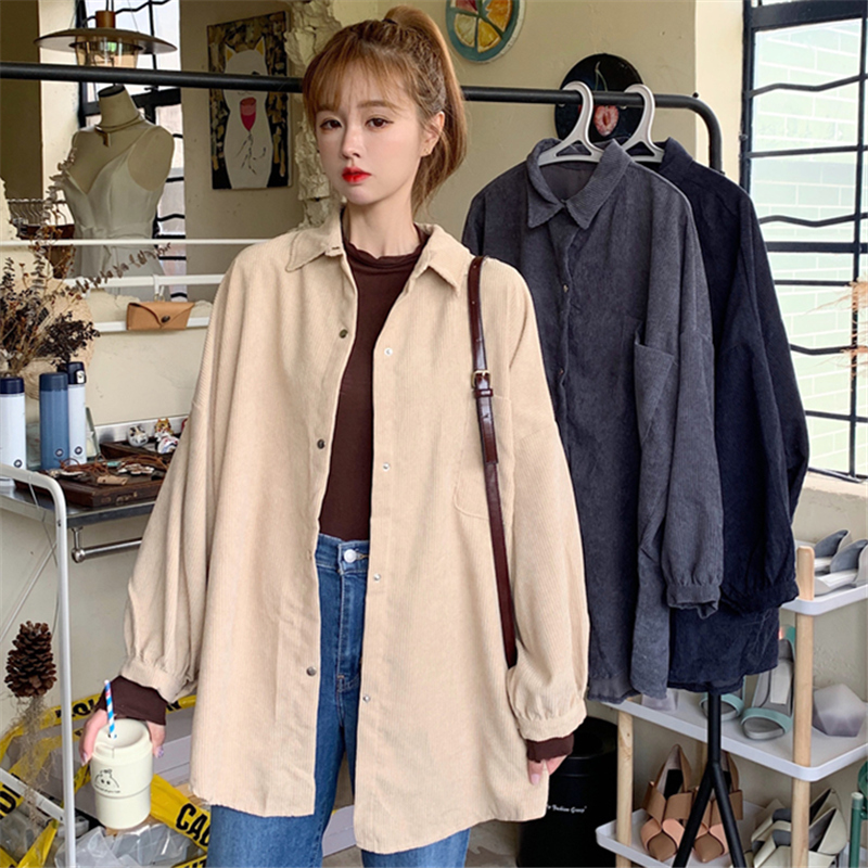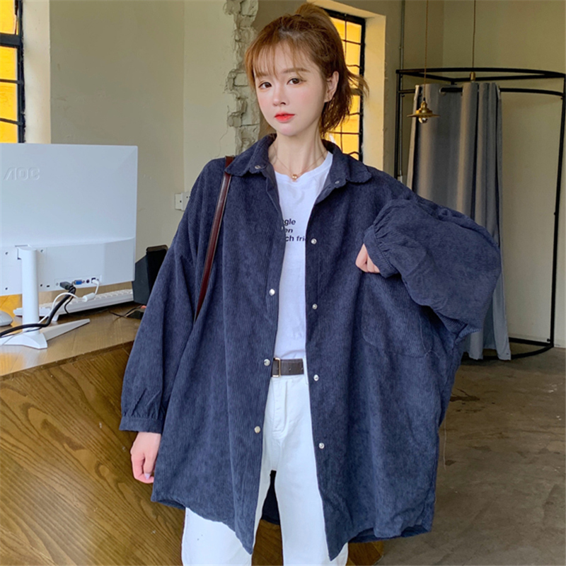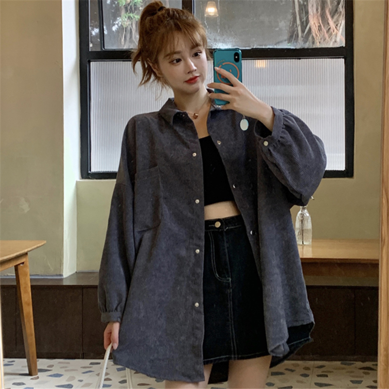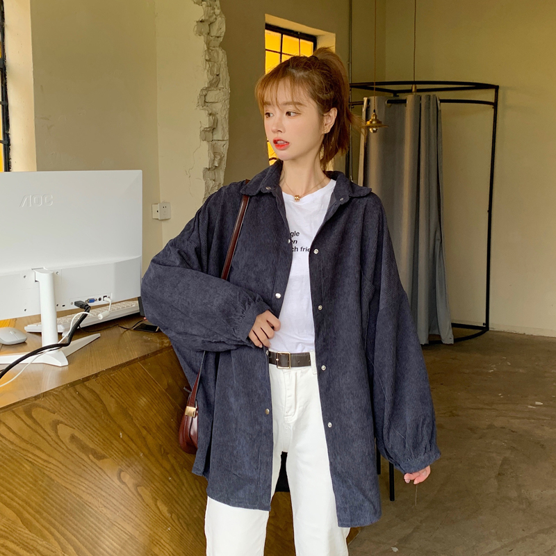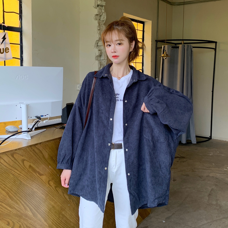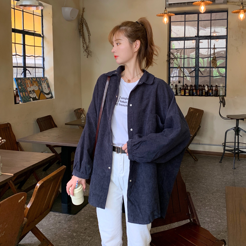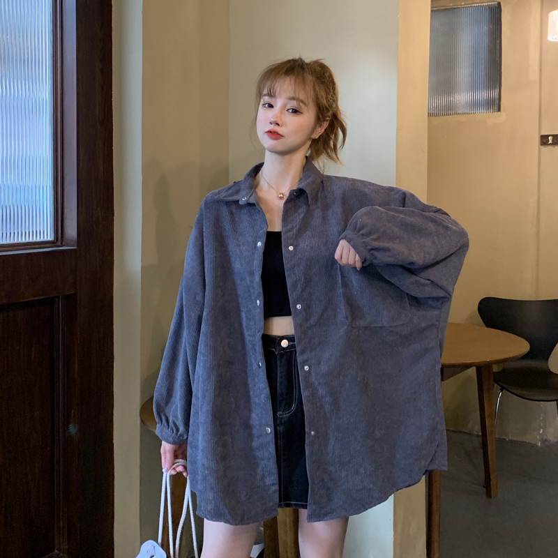 燈芯絨襯衫女春寬鬆韓版ins復古長袖襯衫設計感小眾港味chic外套