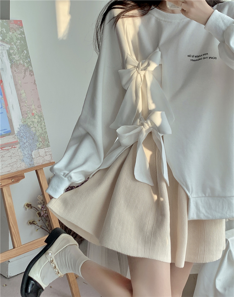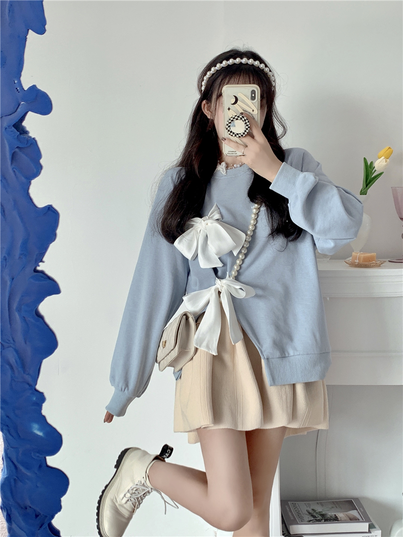 顏色分類 藍色運動衫,白色厚棉T,杏色半身裙