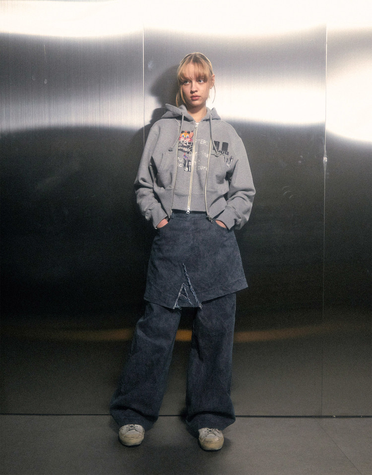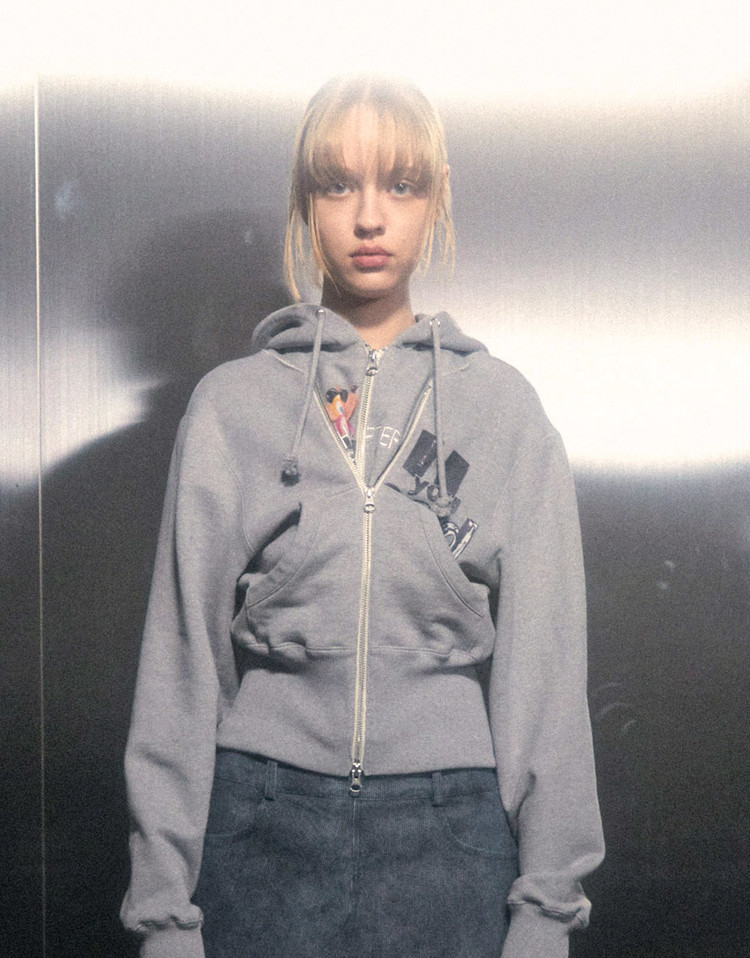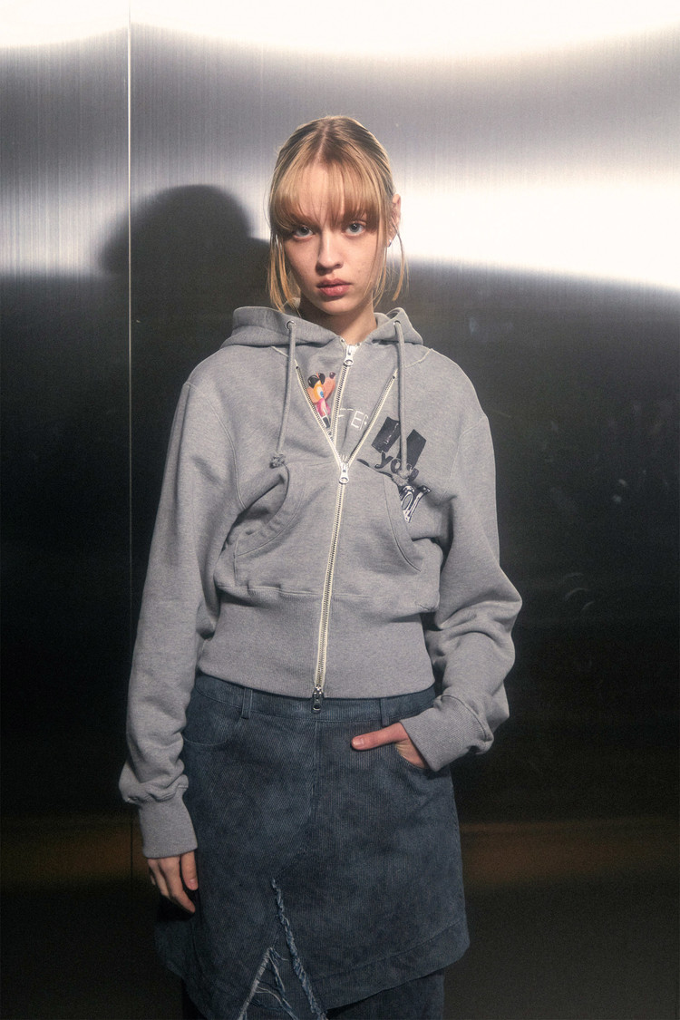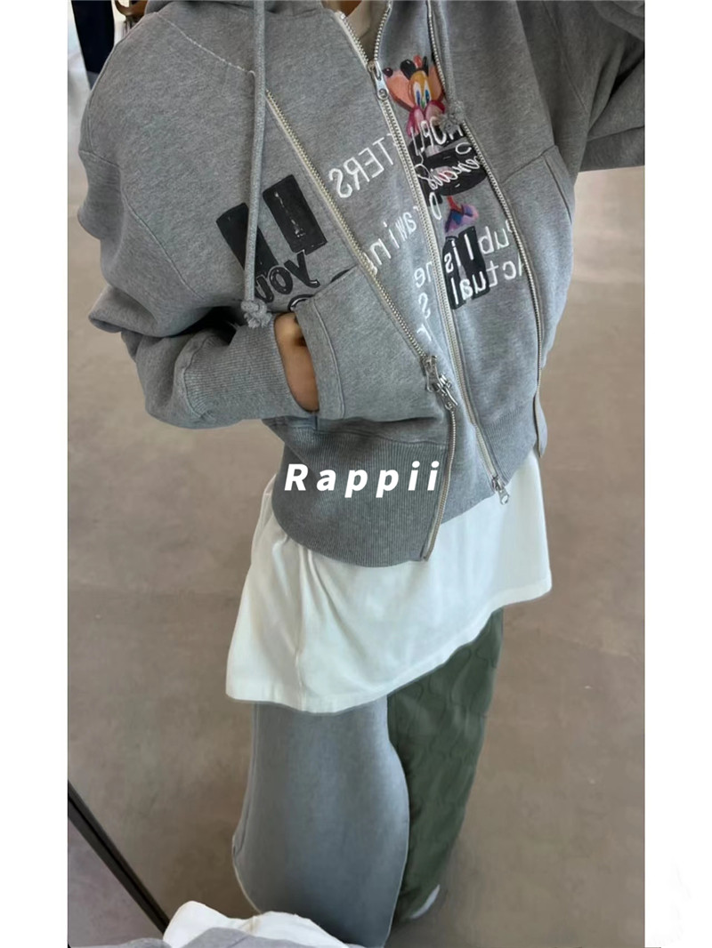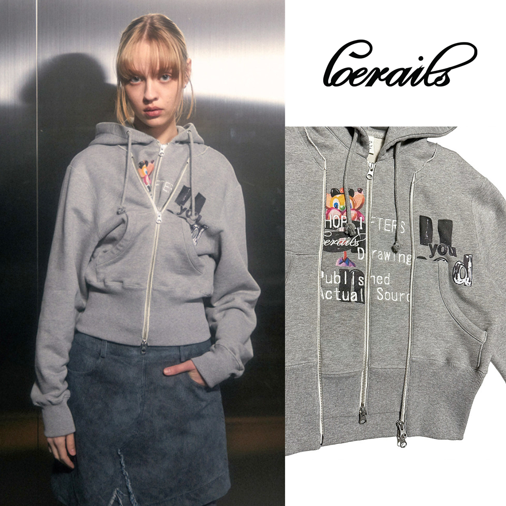 現貨博主推薦~loerails韓國設計師品牌 小眾卡通兩穿短款連帽運動衫