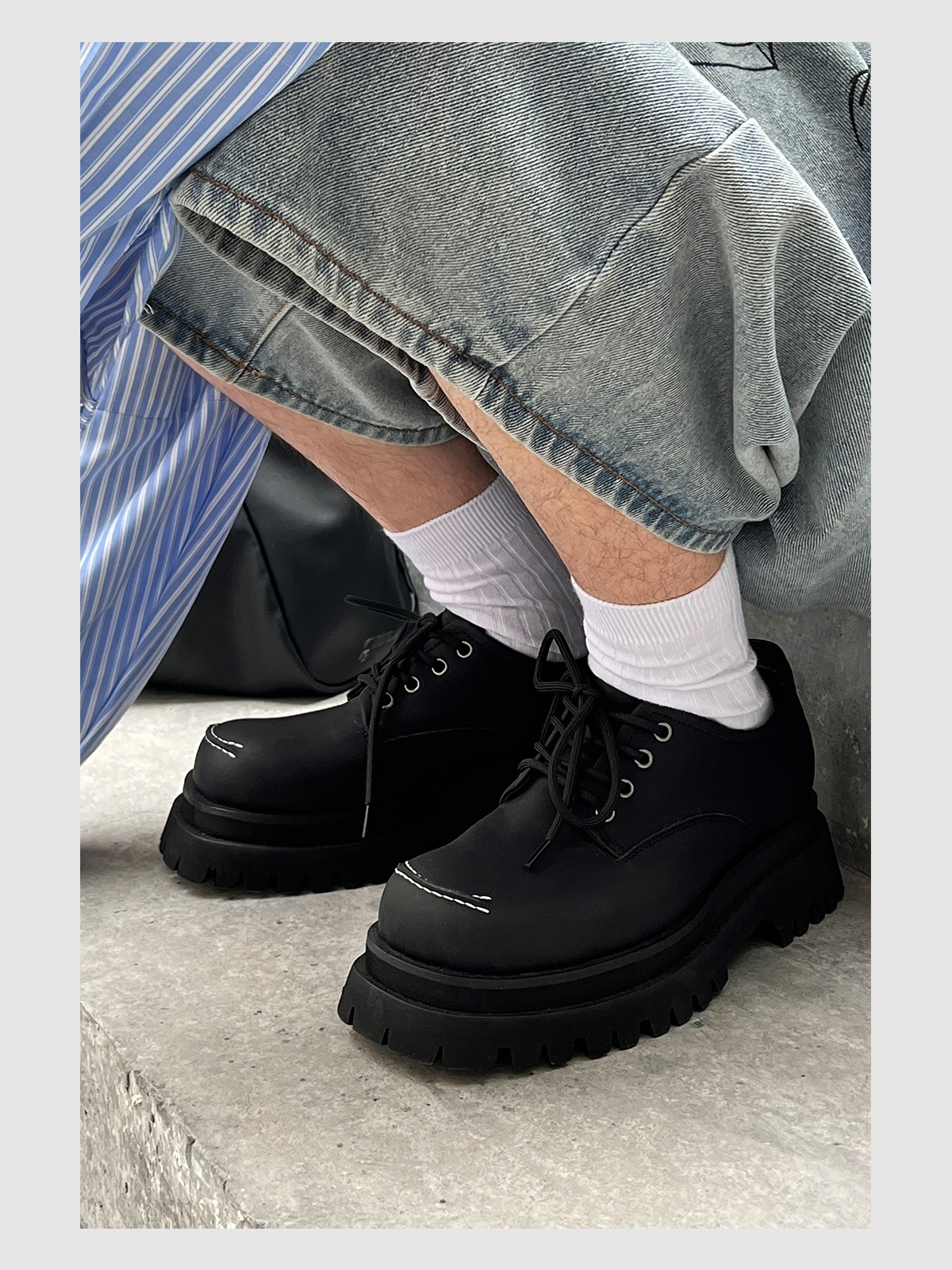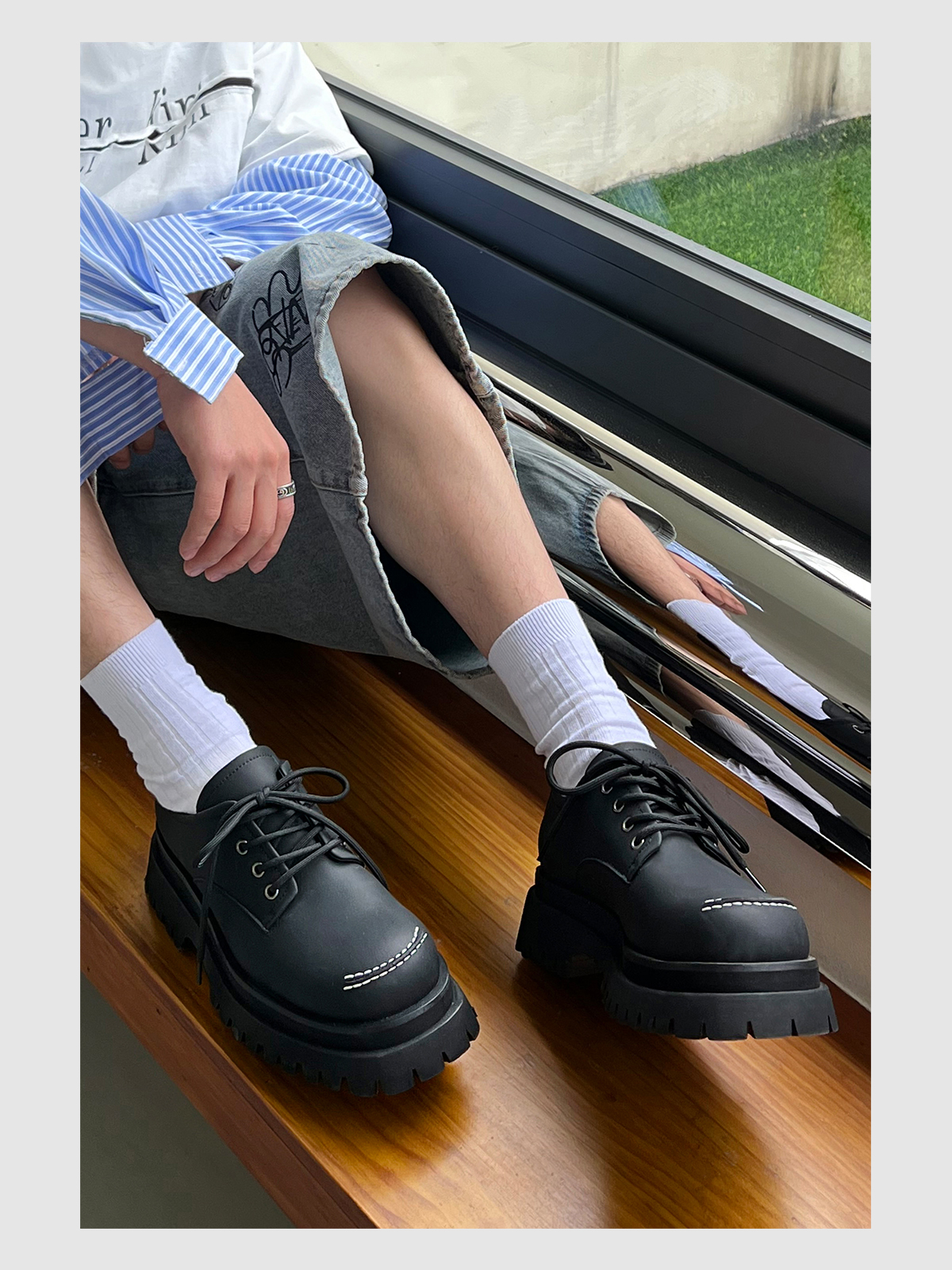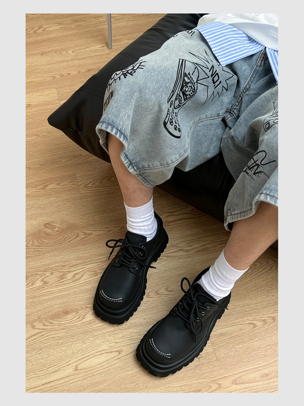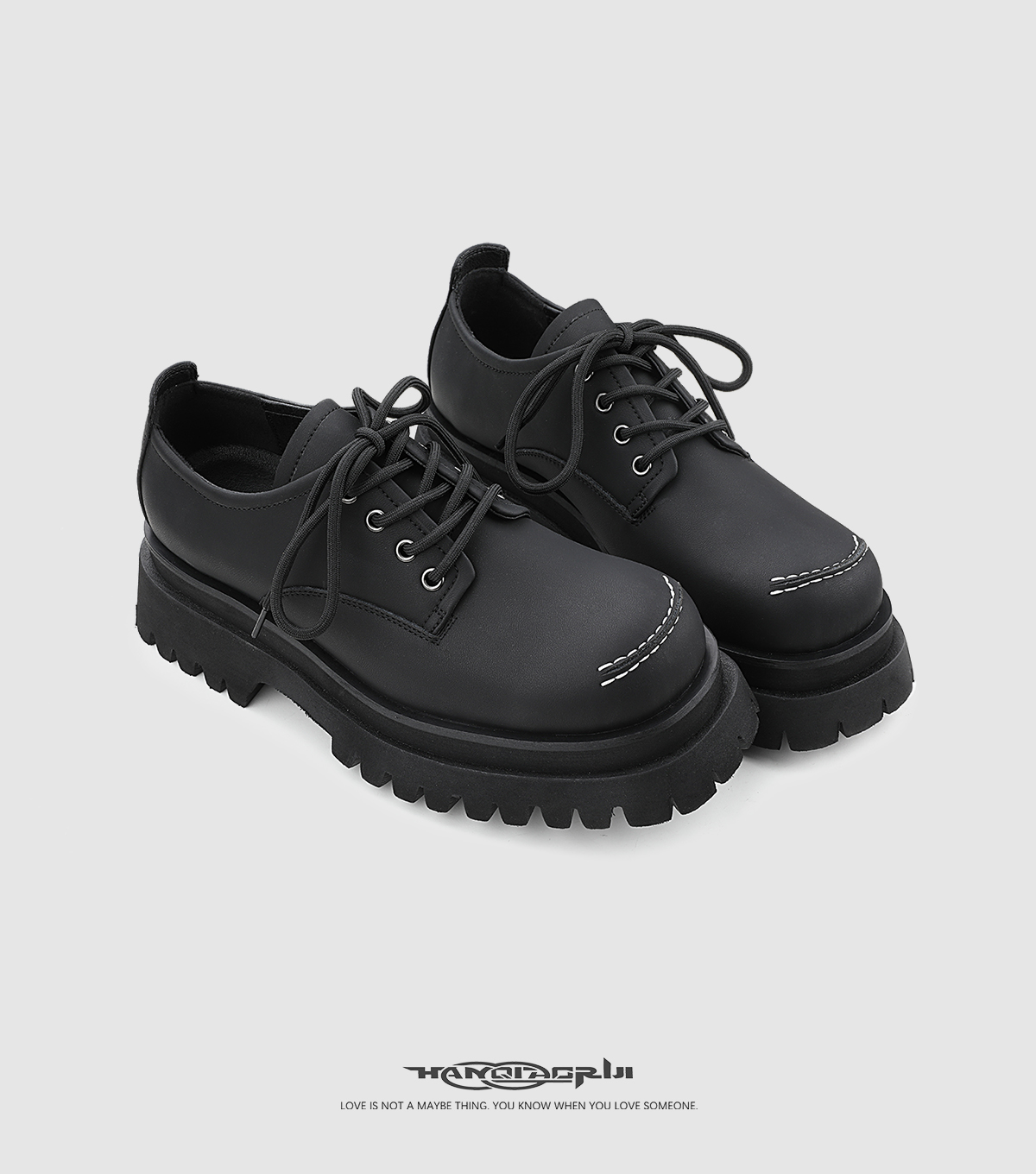 韓橋日記[楽系列]原創“開口笑”設計大頭德比鞋男女厚底休閒皮鞋