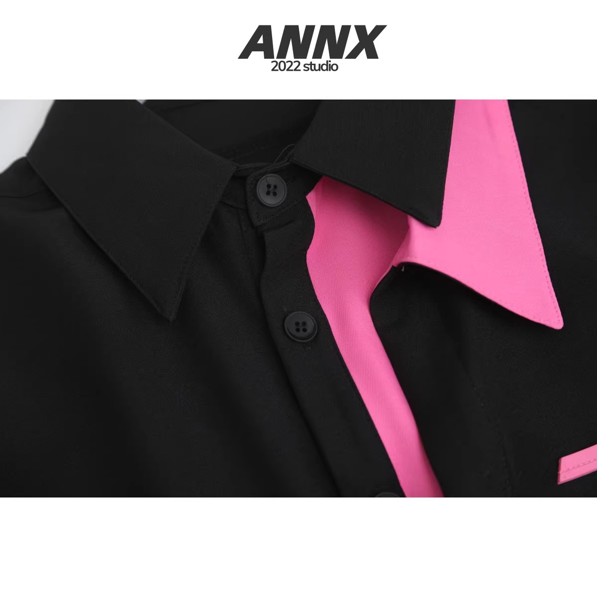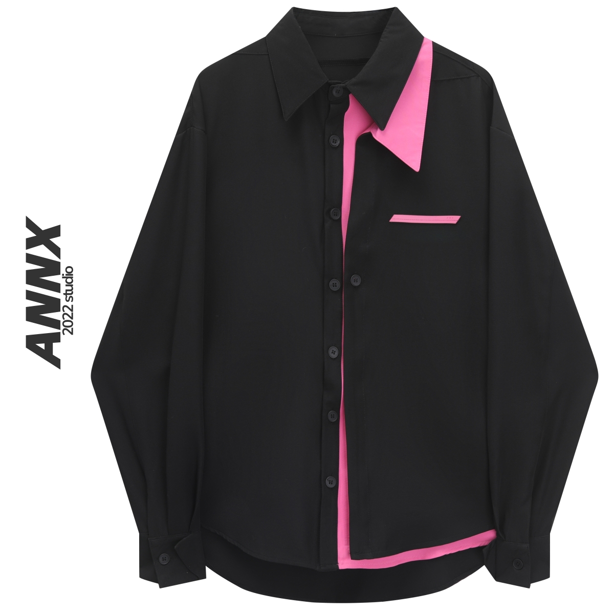 ANNX2023法式分層拼接撞色長袖襯衫女設計感小眾上衣潮流街拍