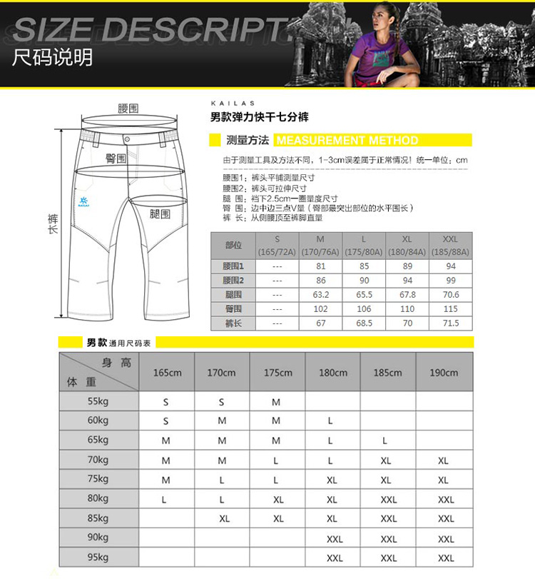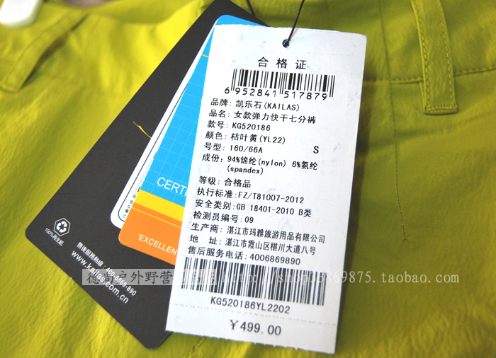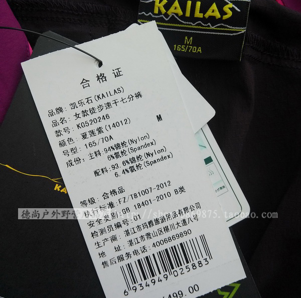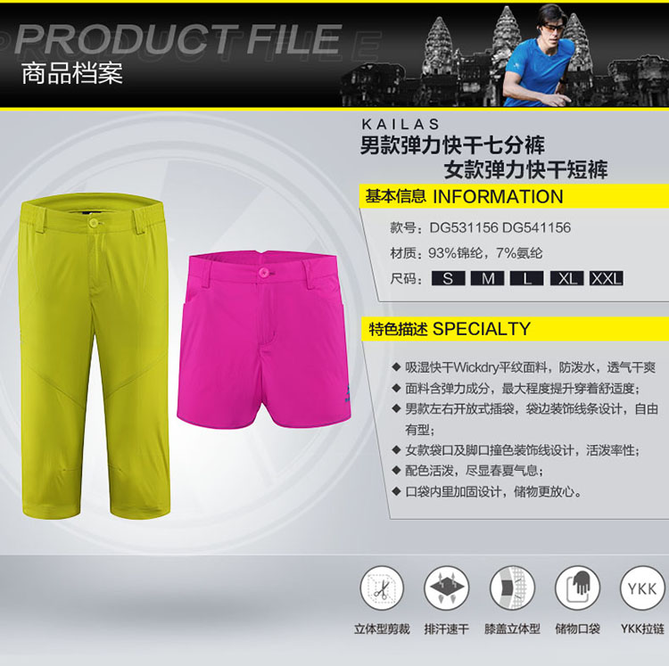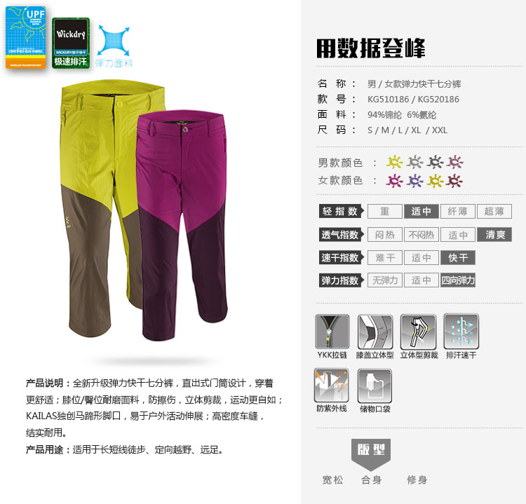 凯乐石 徒步速干七分裤 男KG510246女KG520246