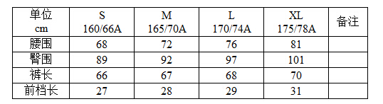 S号(160/66A)、M号(165/70A)、L号(170/74A)
