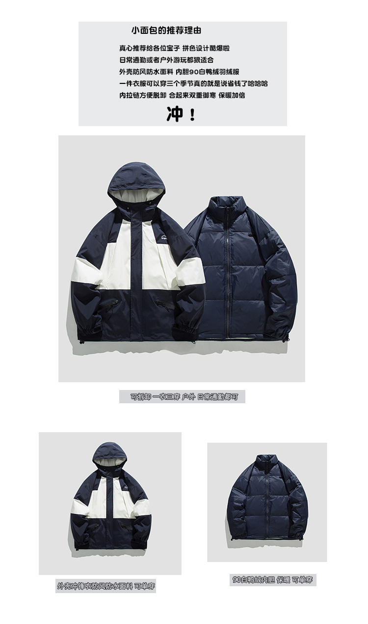 冬季戶外防風防水三合一白鴨絨羽絨服男女可拆卸衝鋒衣保暖外套