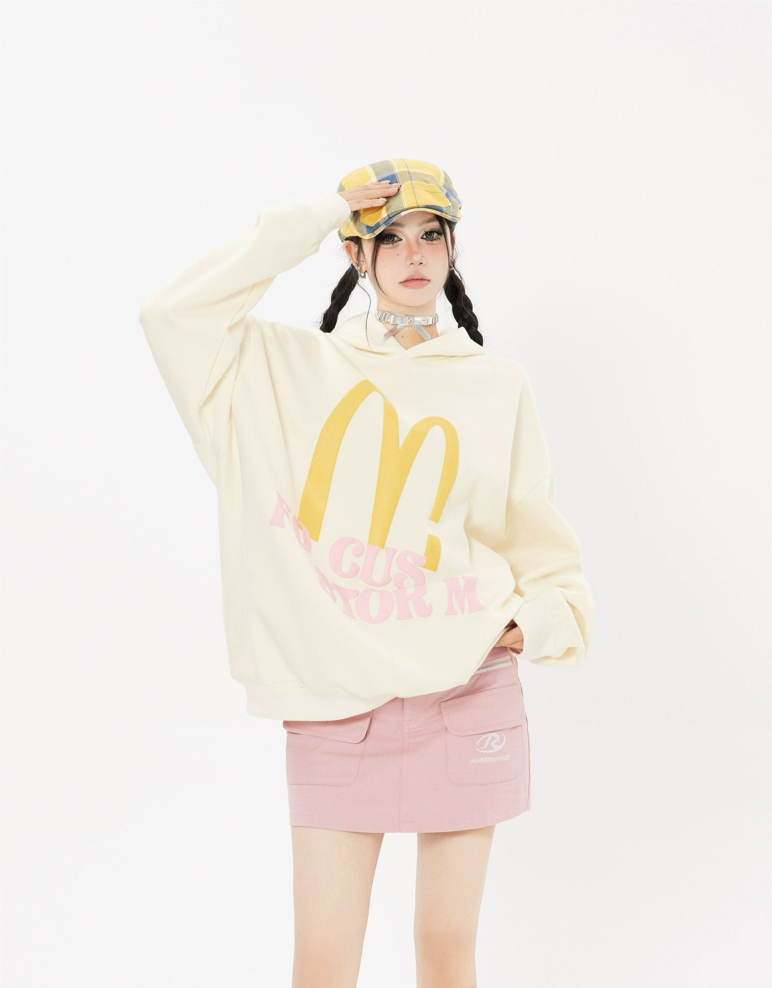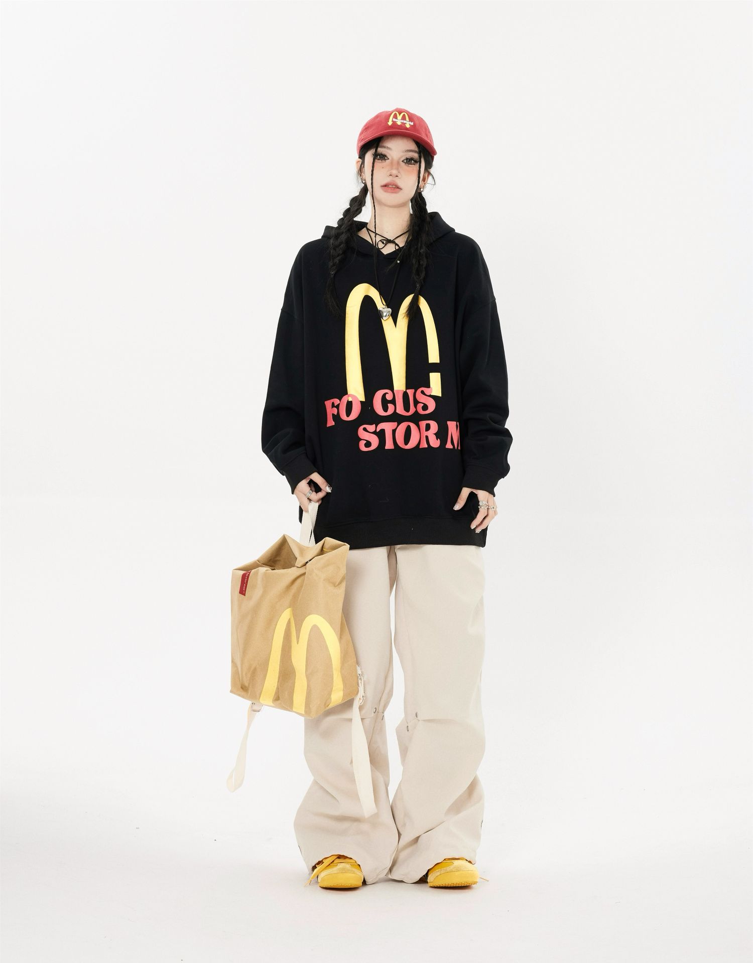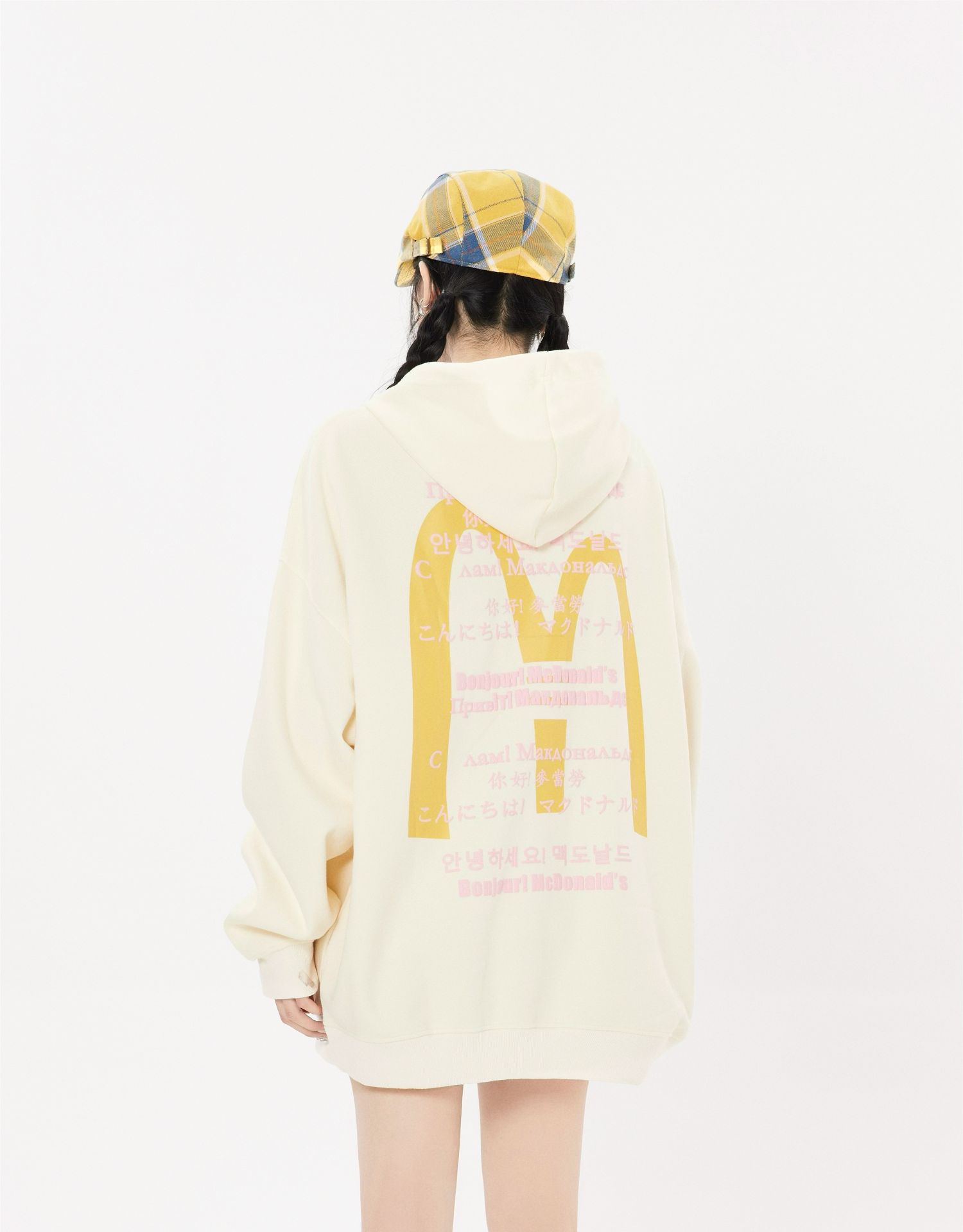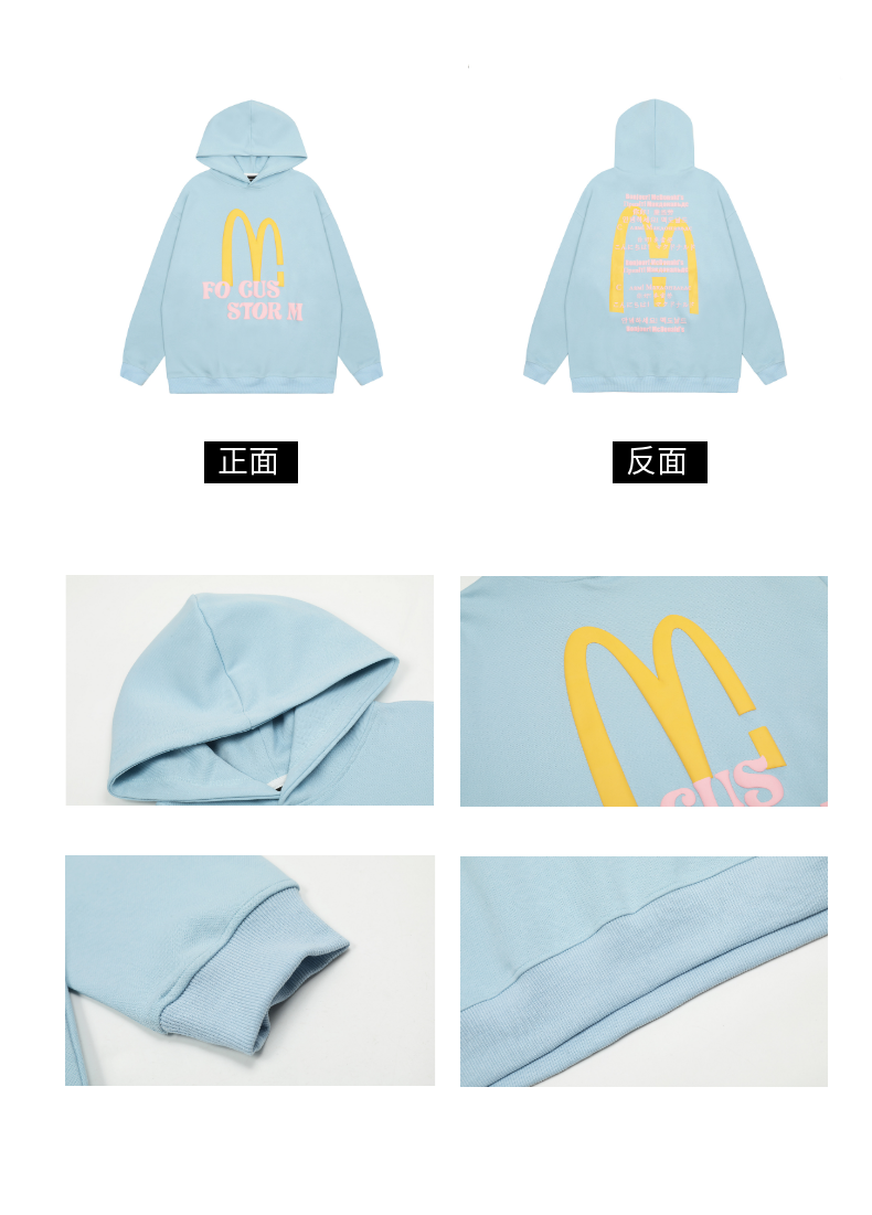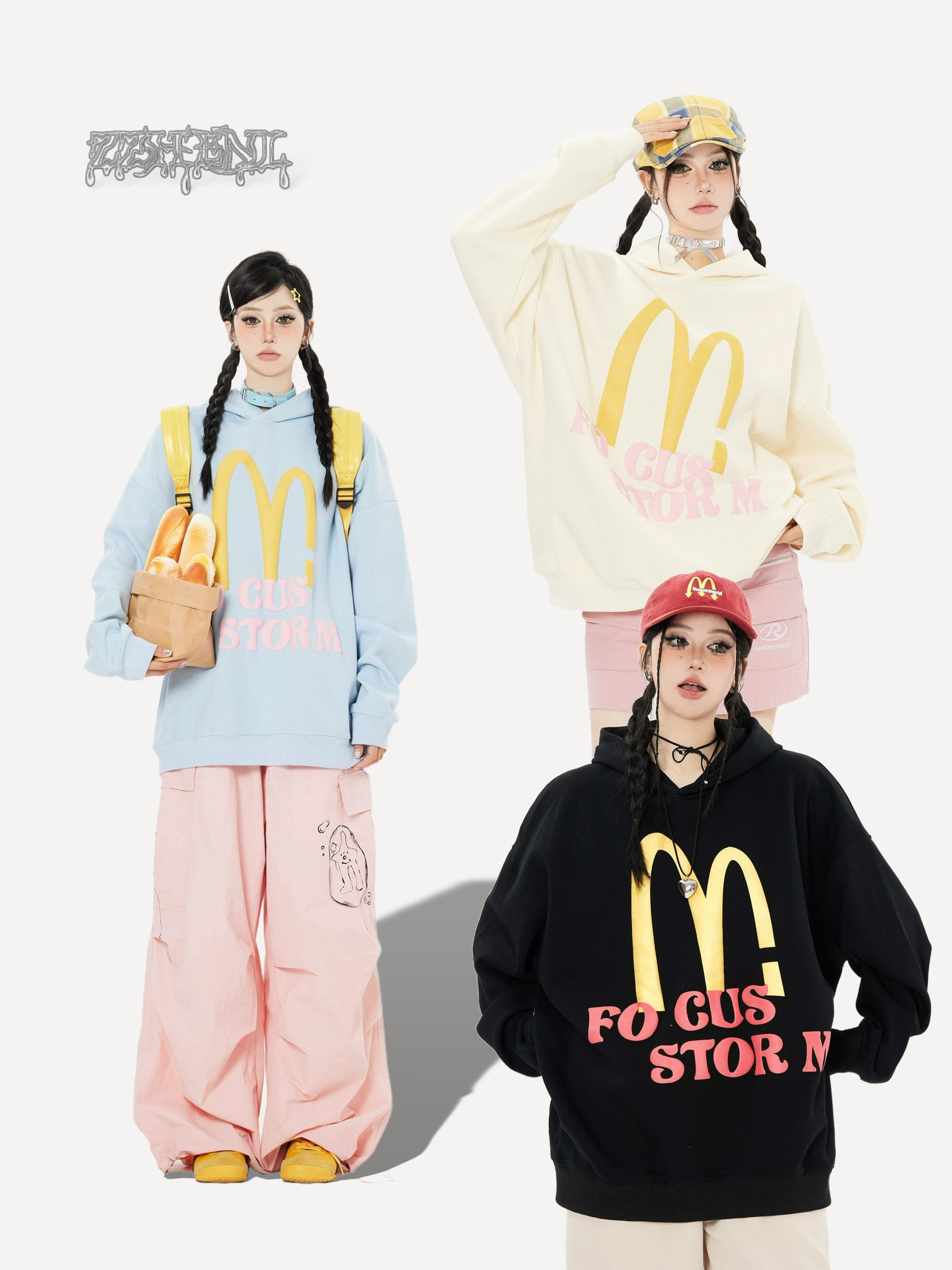 珍珍很懶 原創麥當勞M字母印花連帽運動衫男女春秋美式重磅寬鬆外套