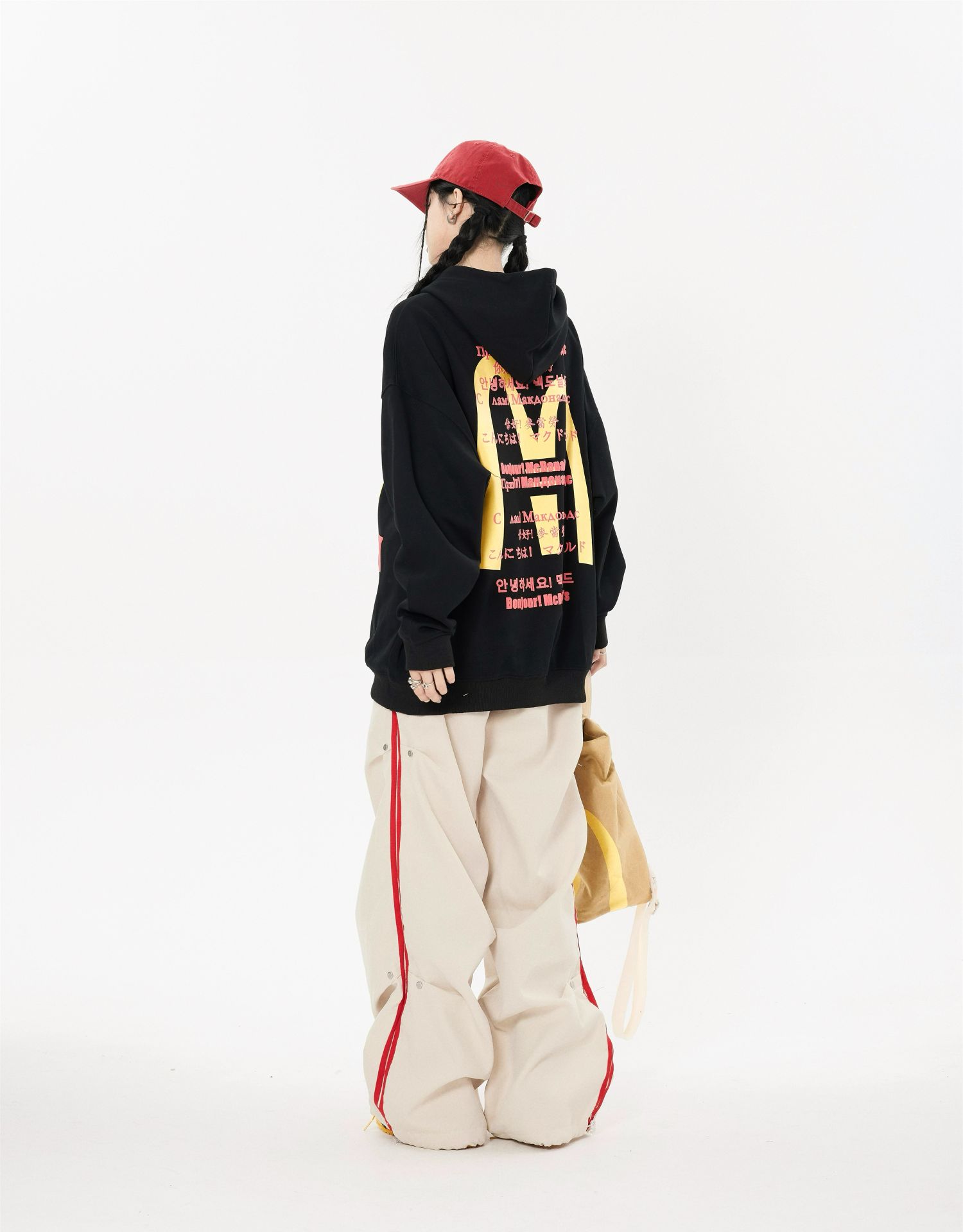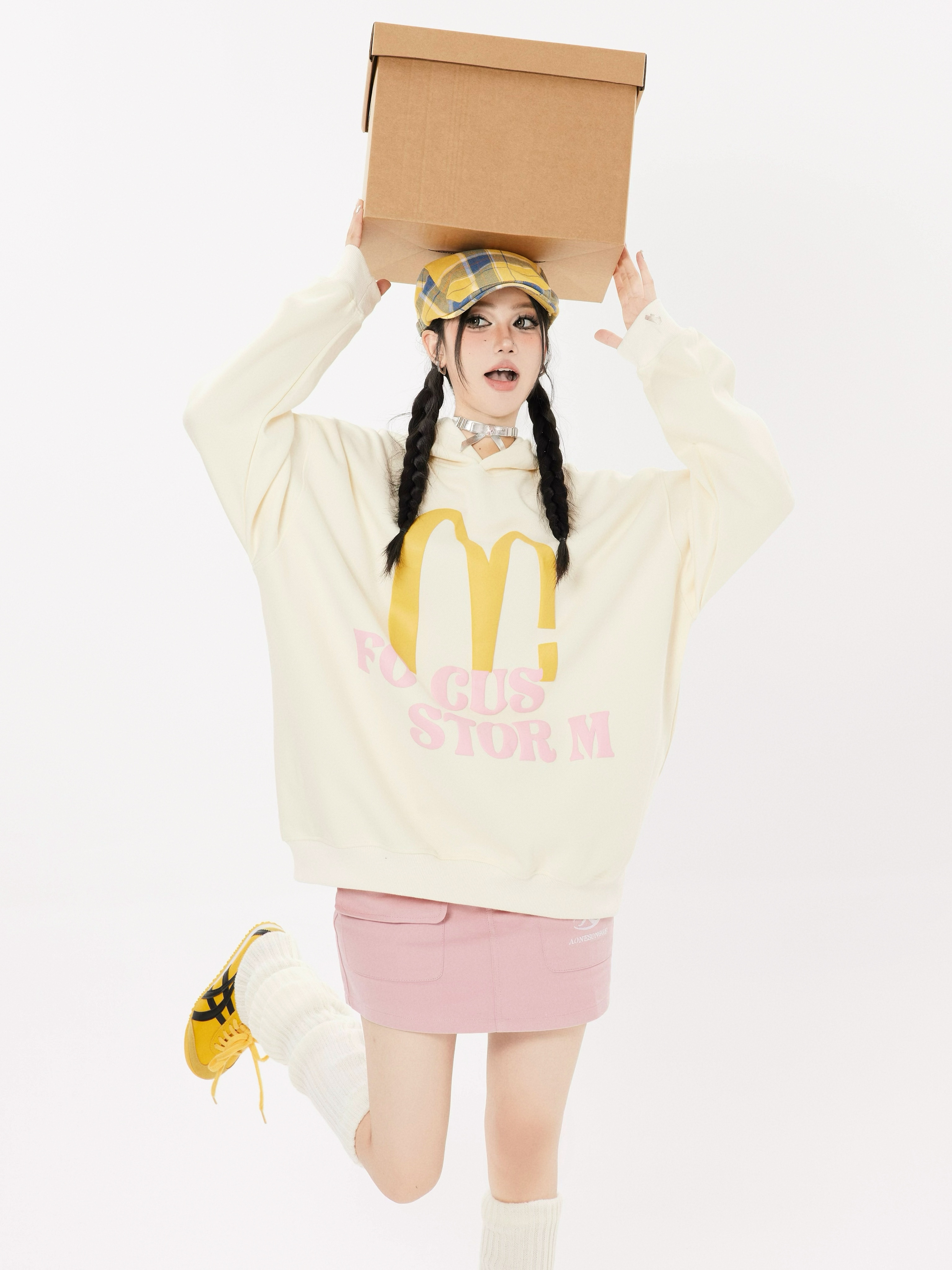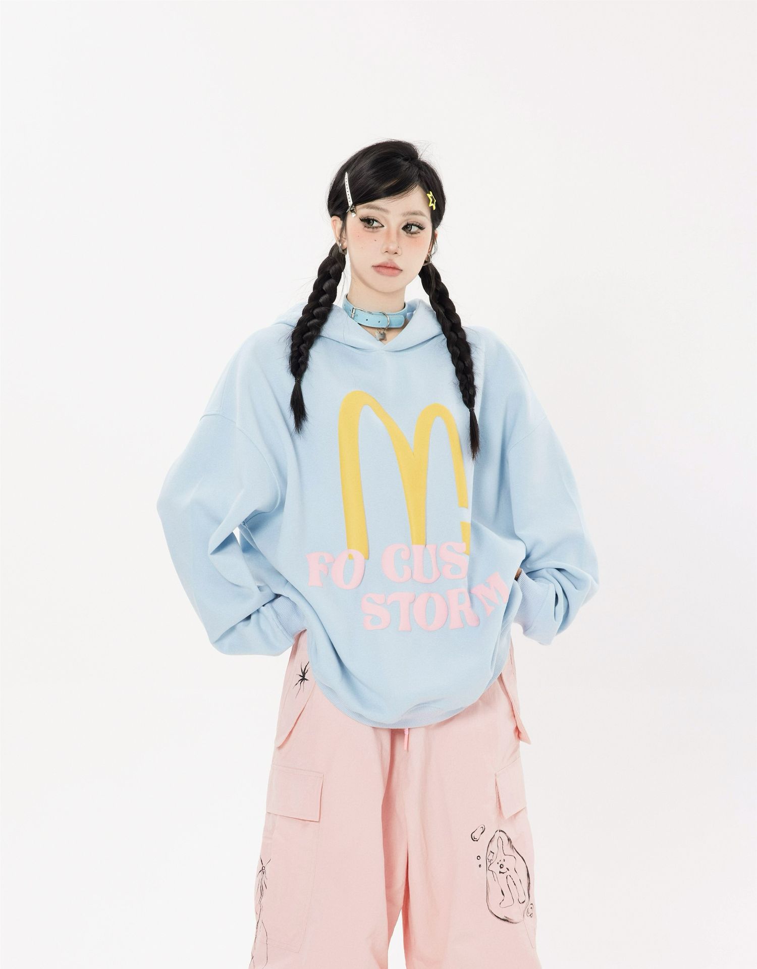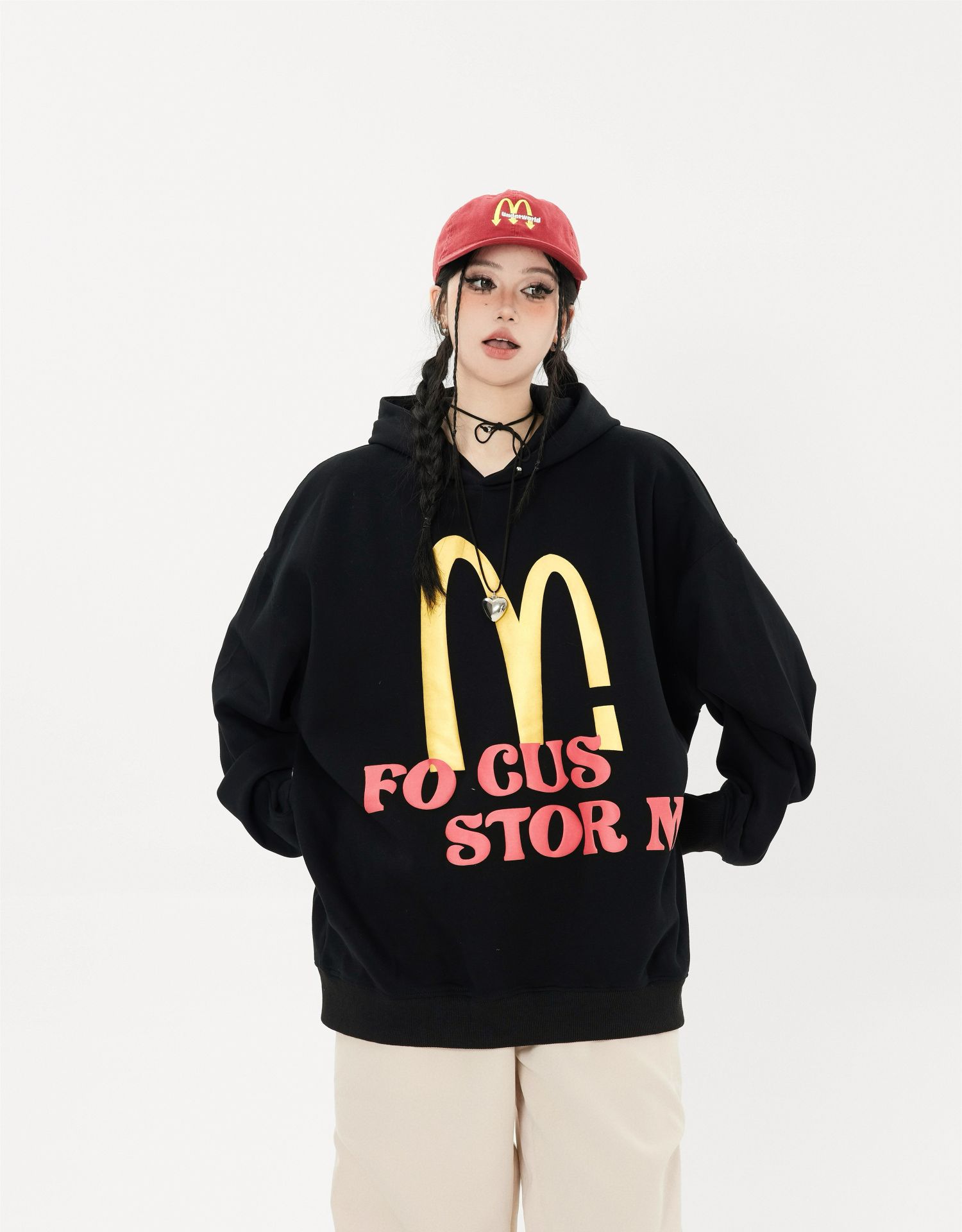 珍珍很懶 原創麥當勞M字母印花連帽運動衫男女春秋美式重磅寬鬆外套