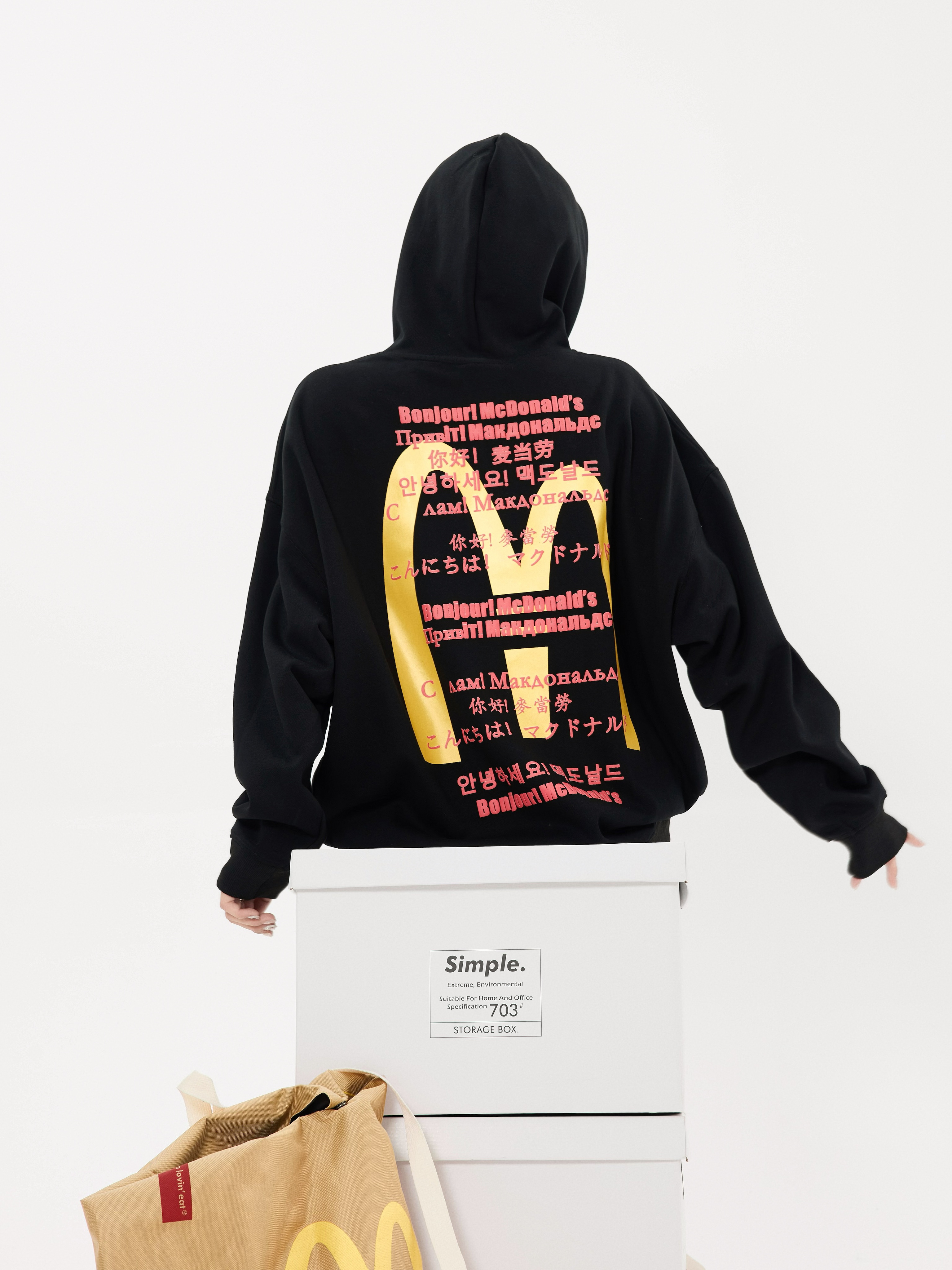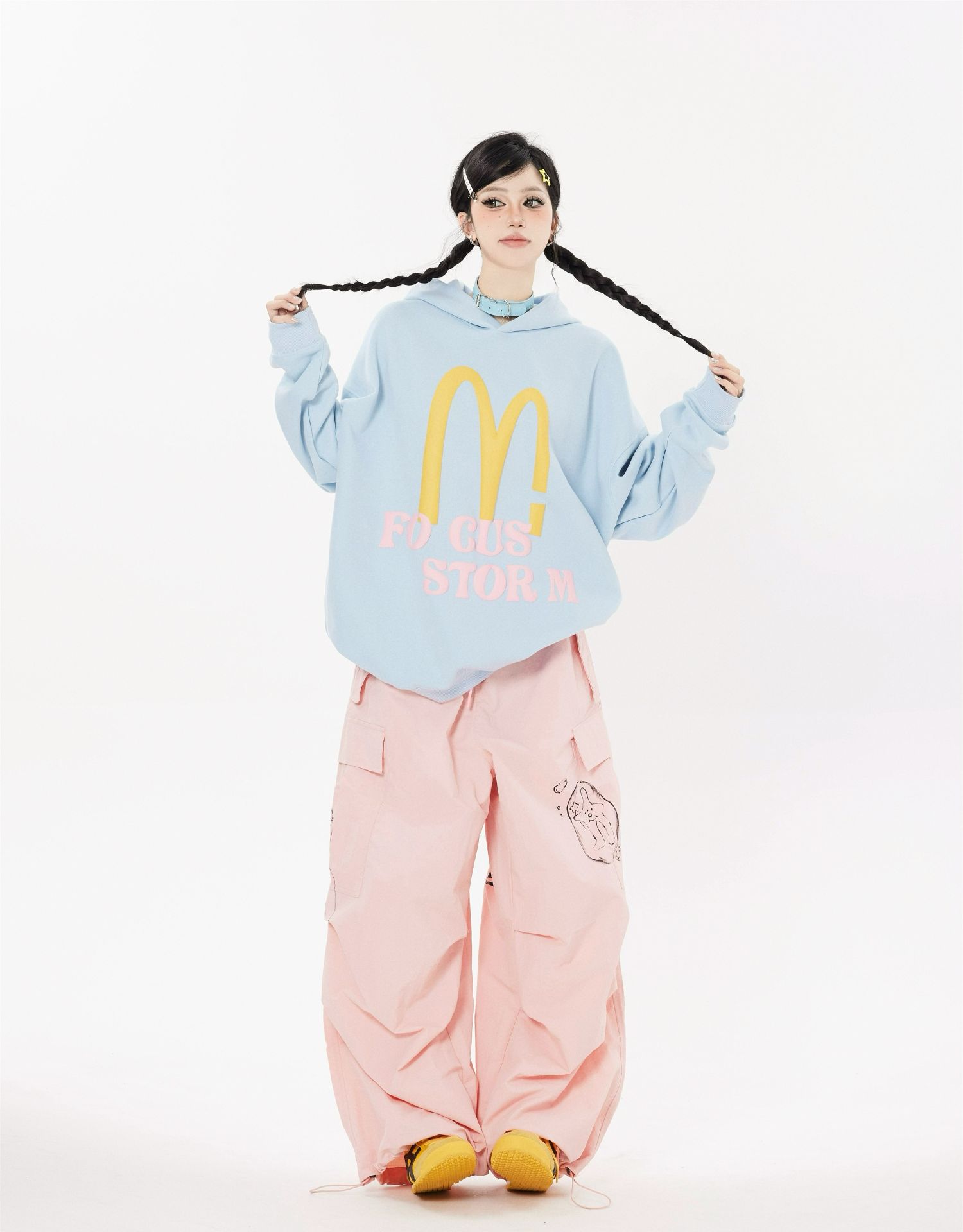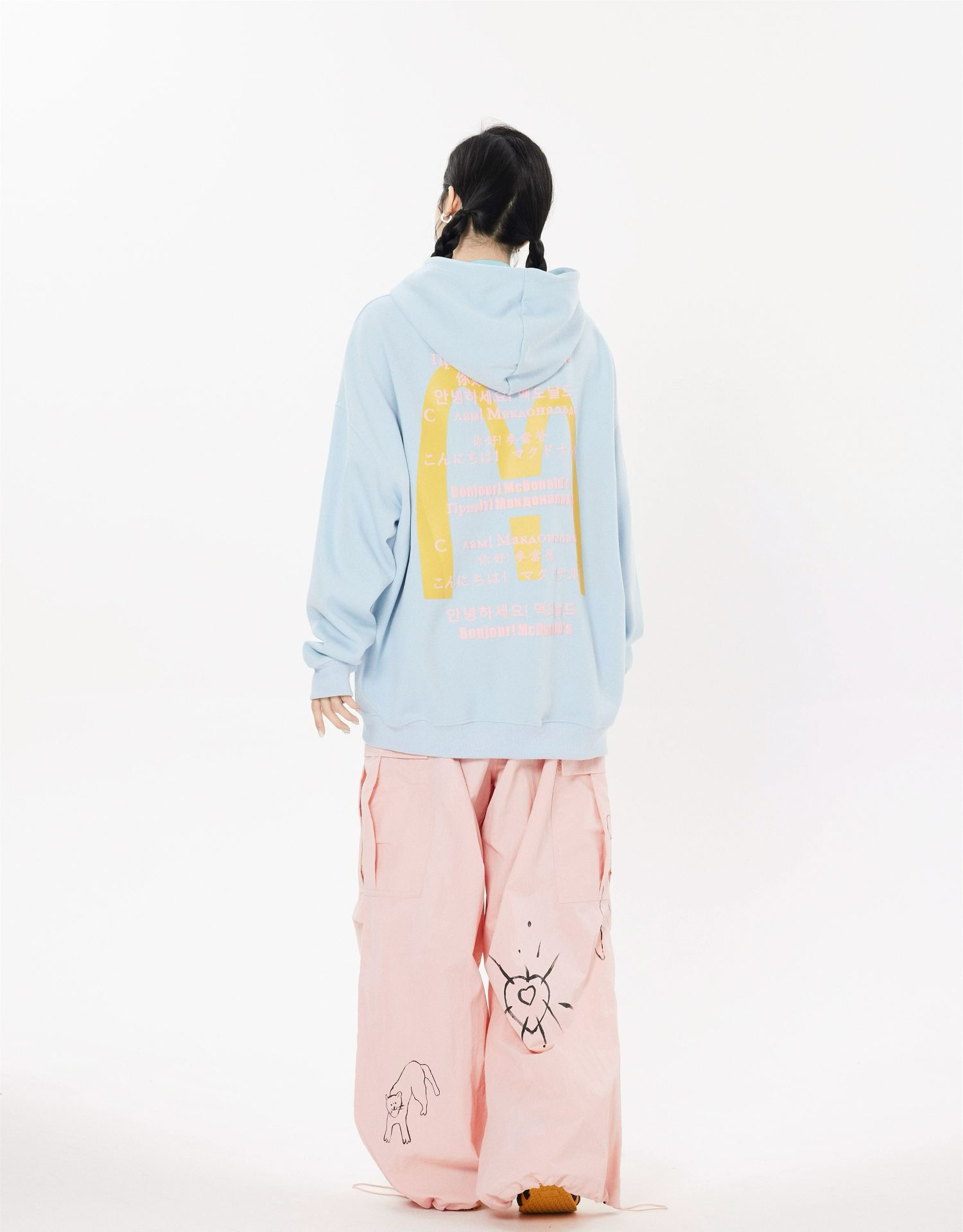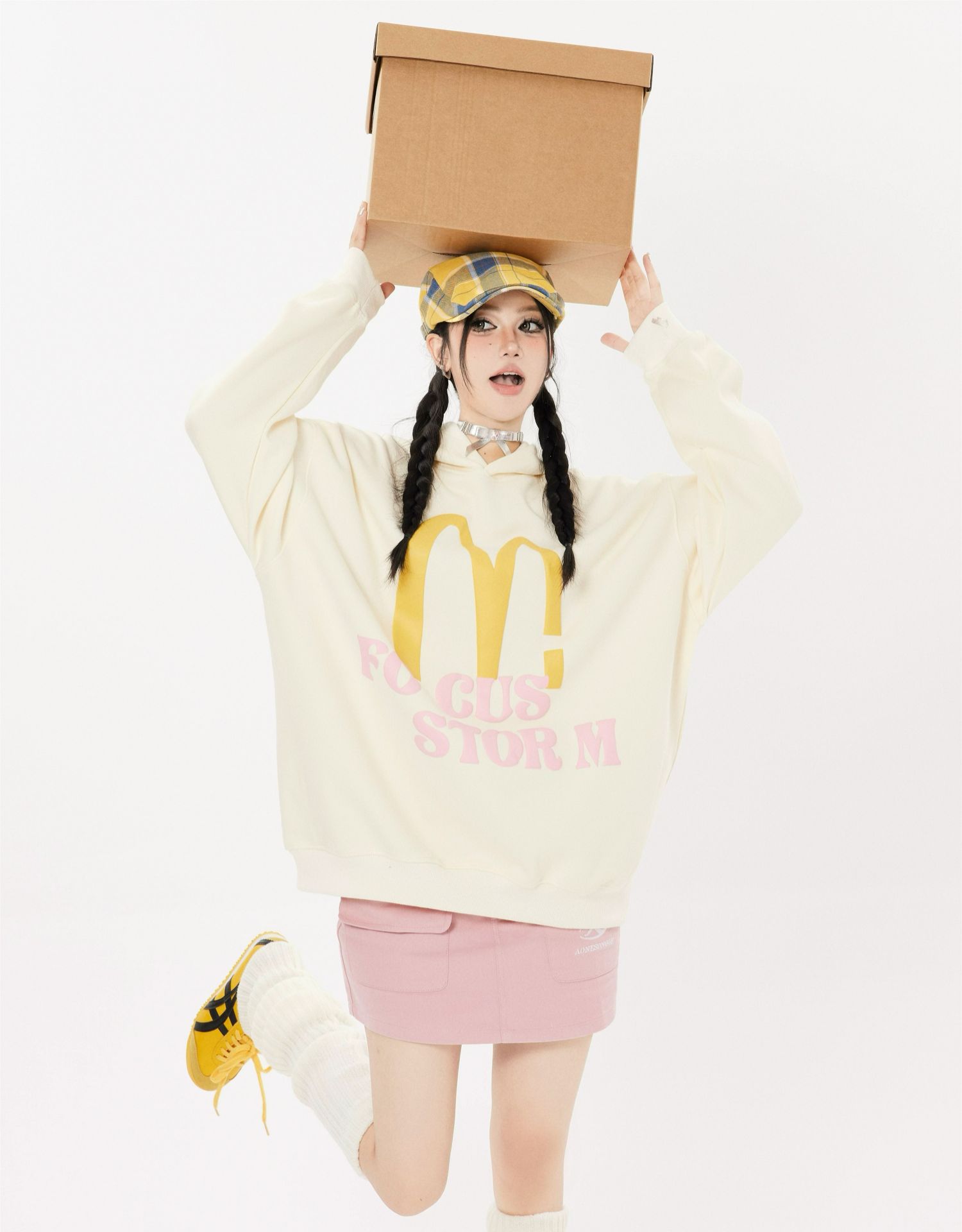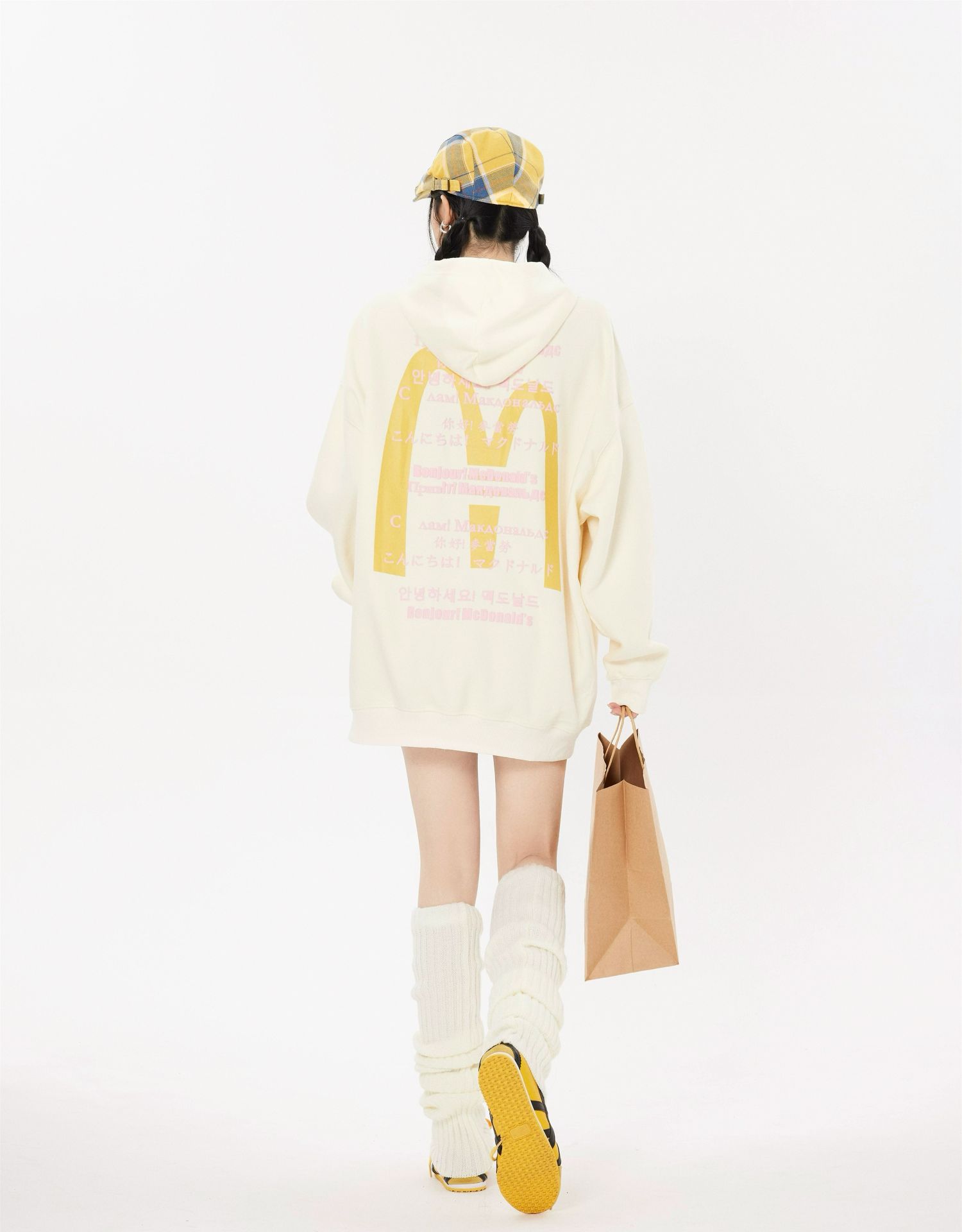 珍珍很懶 原創麥當勞M字母印花連帽運動衫男女春秋美式重磅寬鬆外套